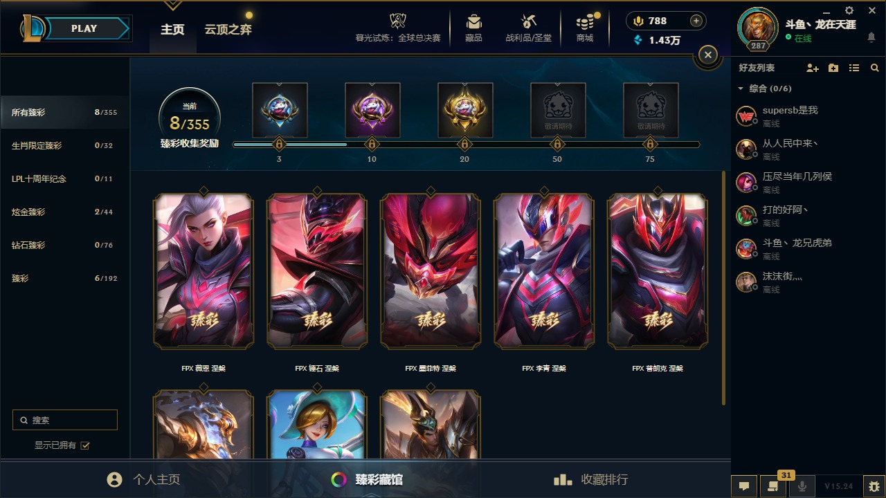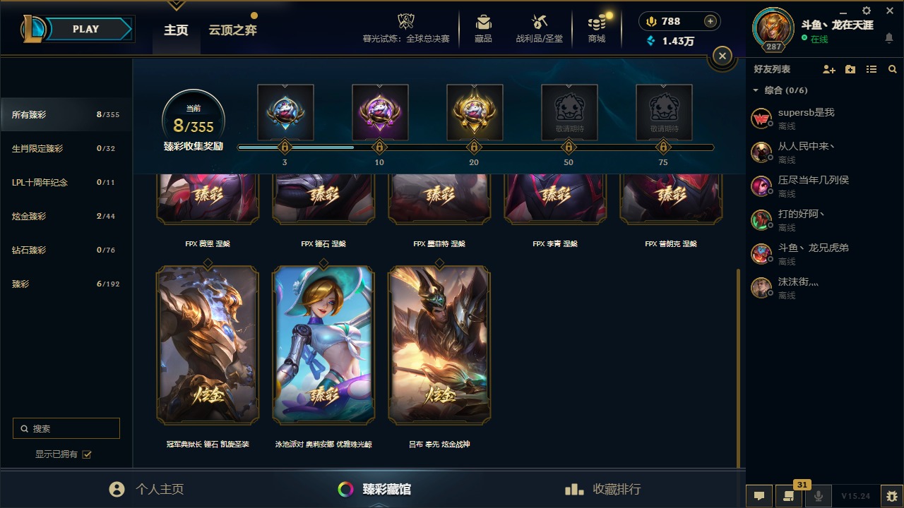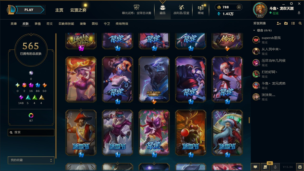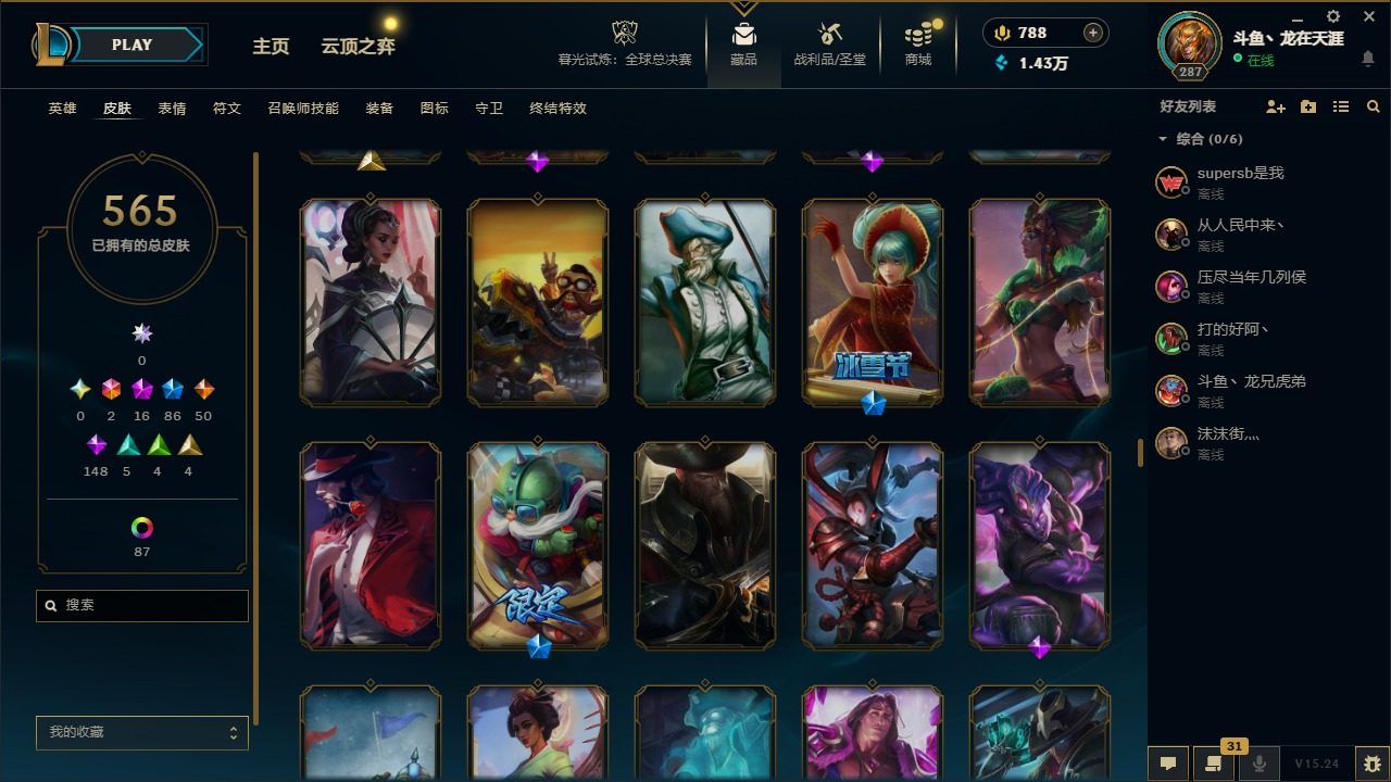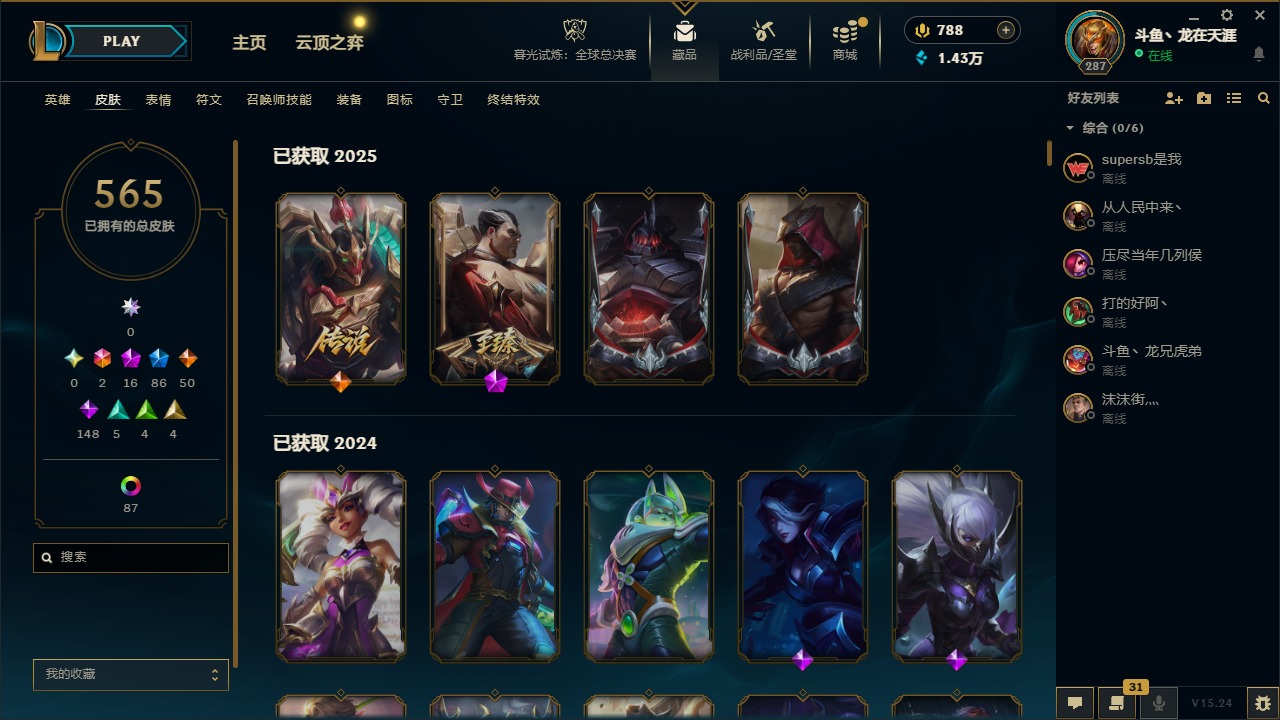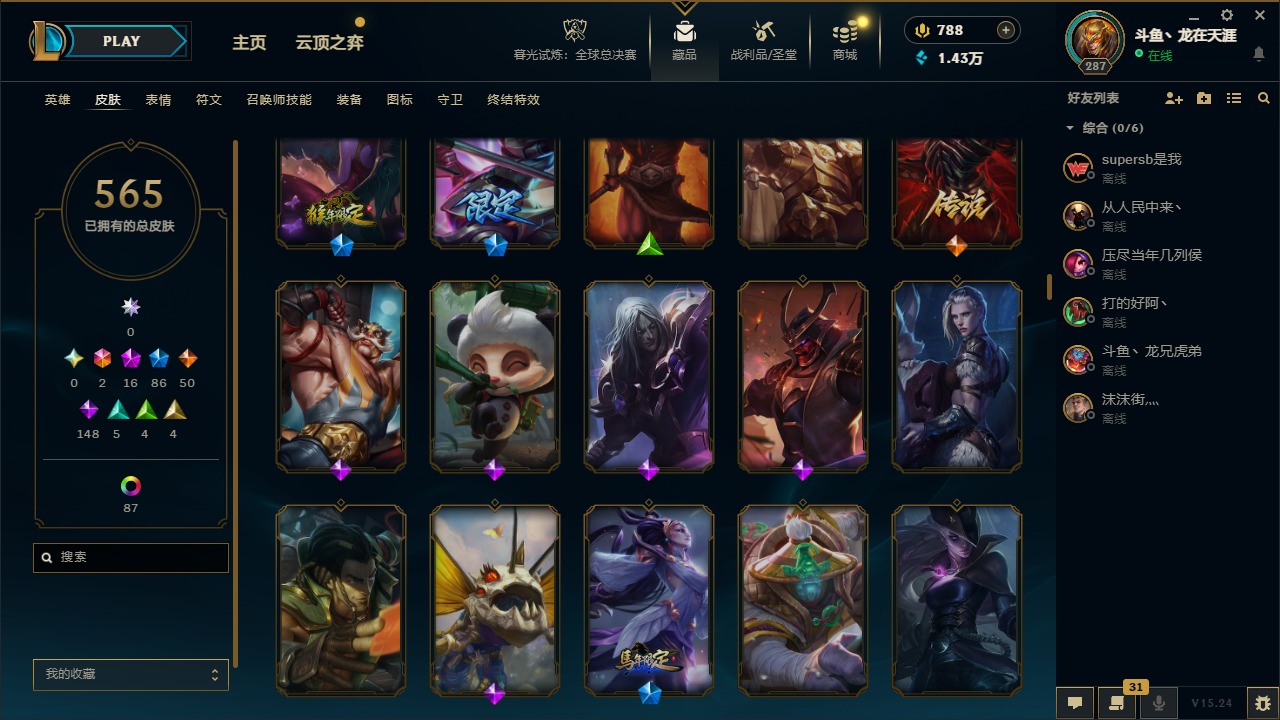 2终极 16神话 86限定 50传说 148史诗 565皮肤 106炫彩 172英雄 可二次 可修改实名 【至臻】至臻 王国机神玄武 盖伦至臻 黑夜使者 李青至臻 腥红之月 亚托克斯至臻 魔女 婕拉至臻 玉剑传说 武剑仙至臻 未来战士 卢锡安至臻 凯旋将军 德莱厄斯至臻 绒毛菲兹