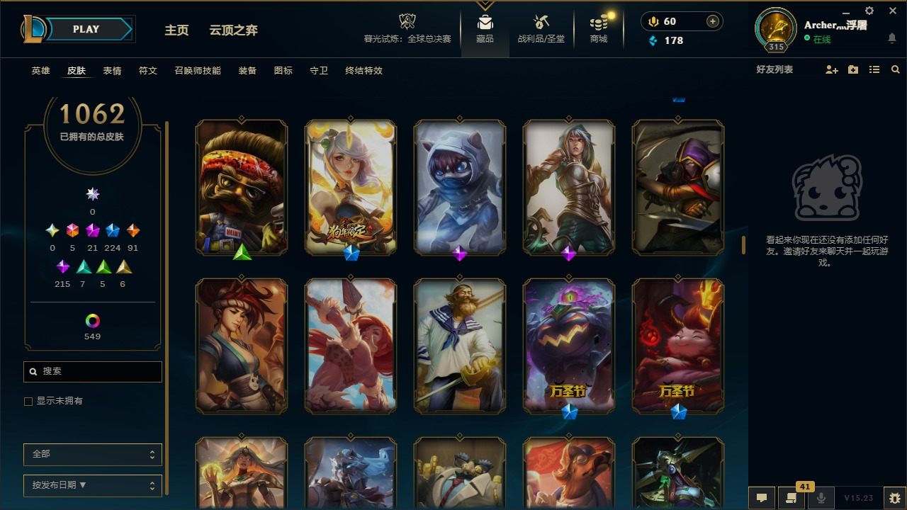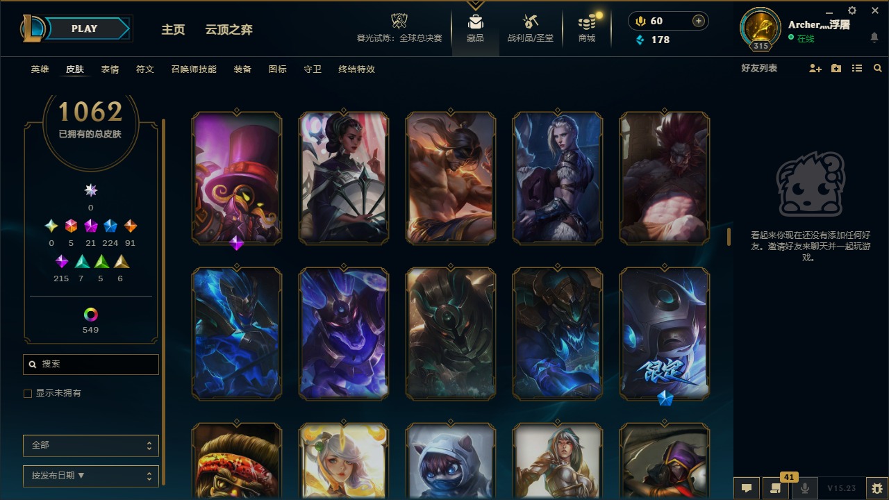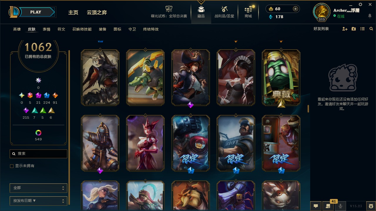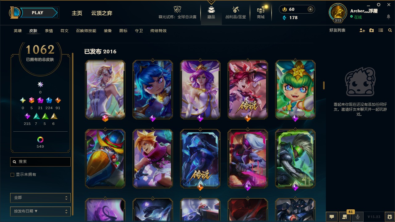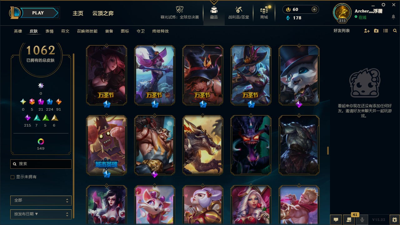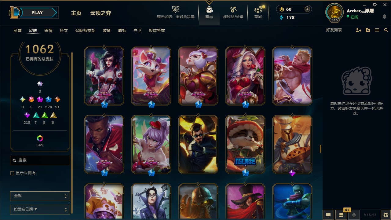 165英雄-1062皮肤-[]5终极 21神话 224限定 91传说 215史诗 1062皮肤 611炫彩 165英雄 可二次 可修改实名 【至臻】:至臻 k/da 阿卡丽至臻 绒毛菲兹至臻 k/da 阿狸至臻 玉剑传说 武剑仙至臻 王国机神玄武 盖伦至臻 奥术师 佐伊至臻 烈焰美人 薇恩至臻