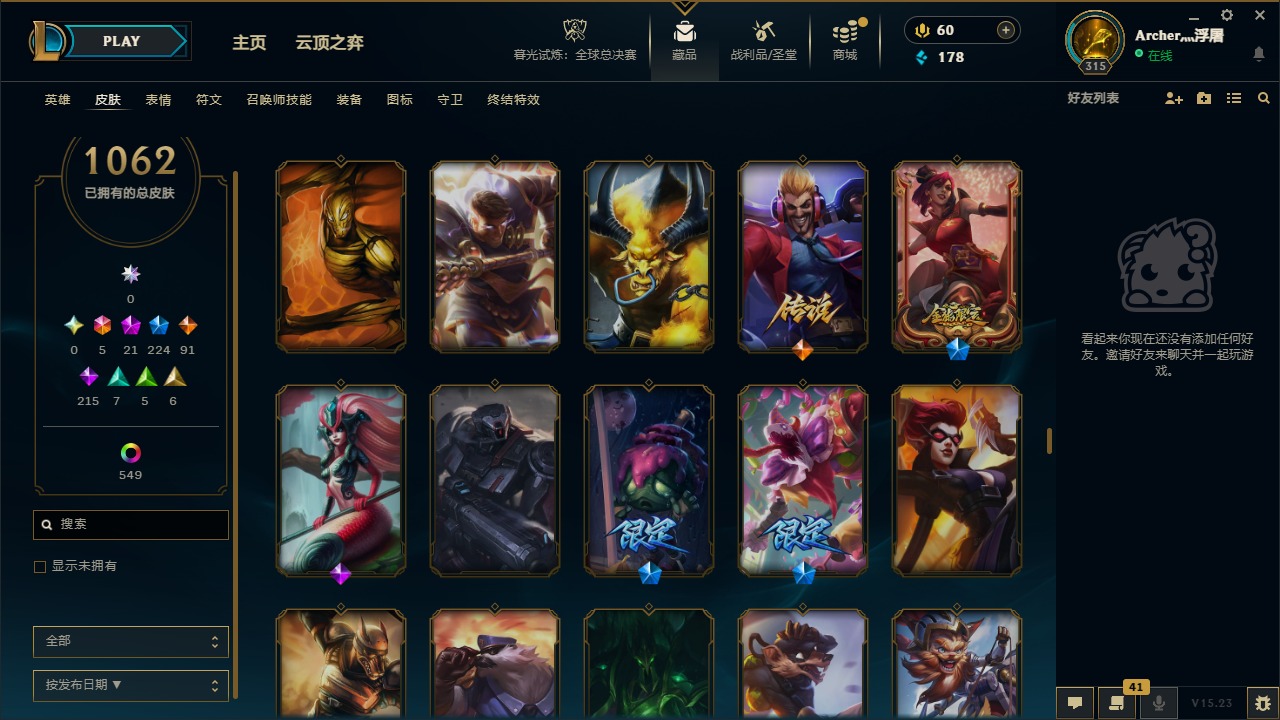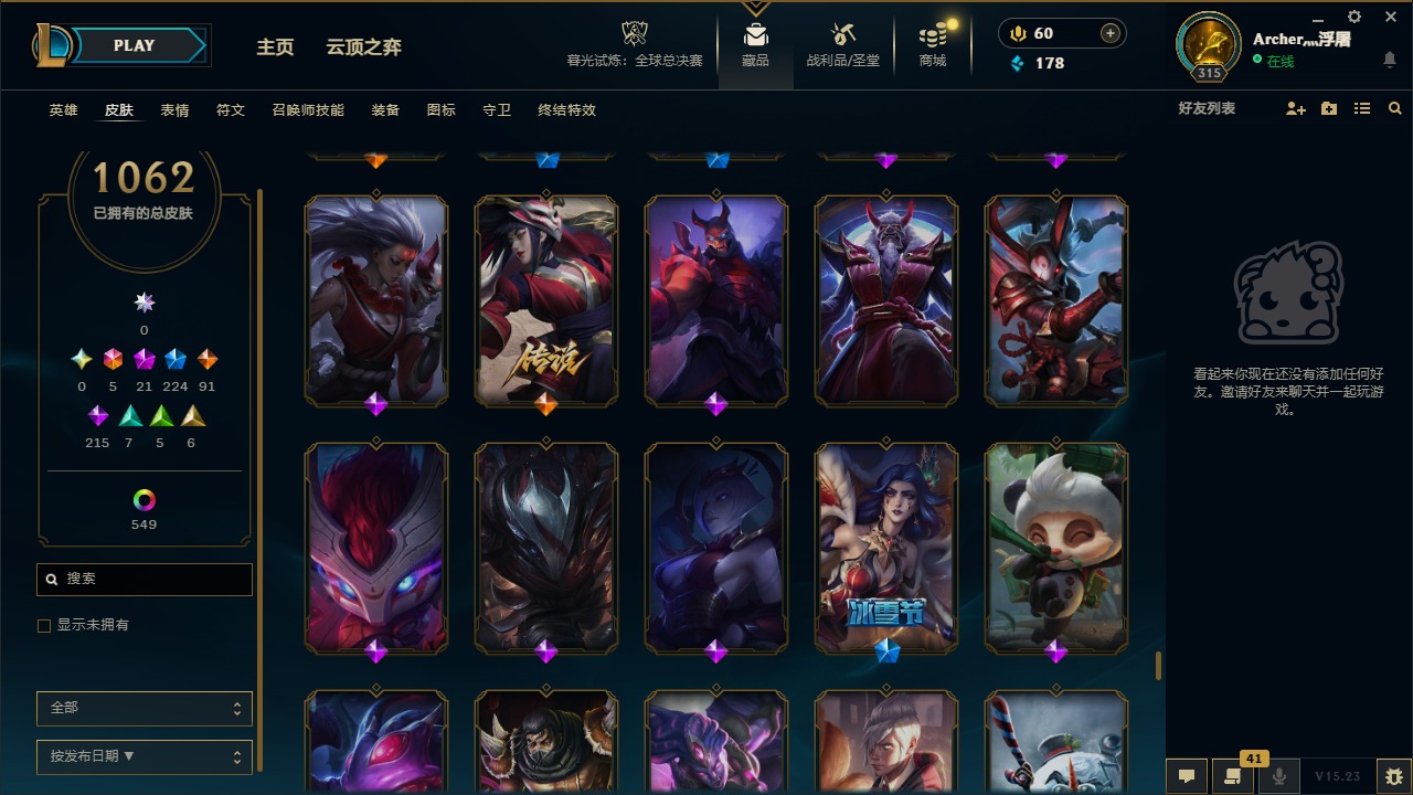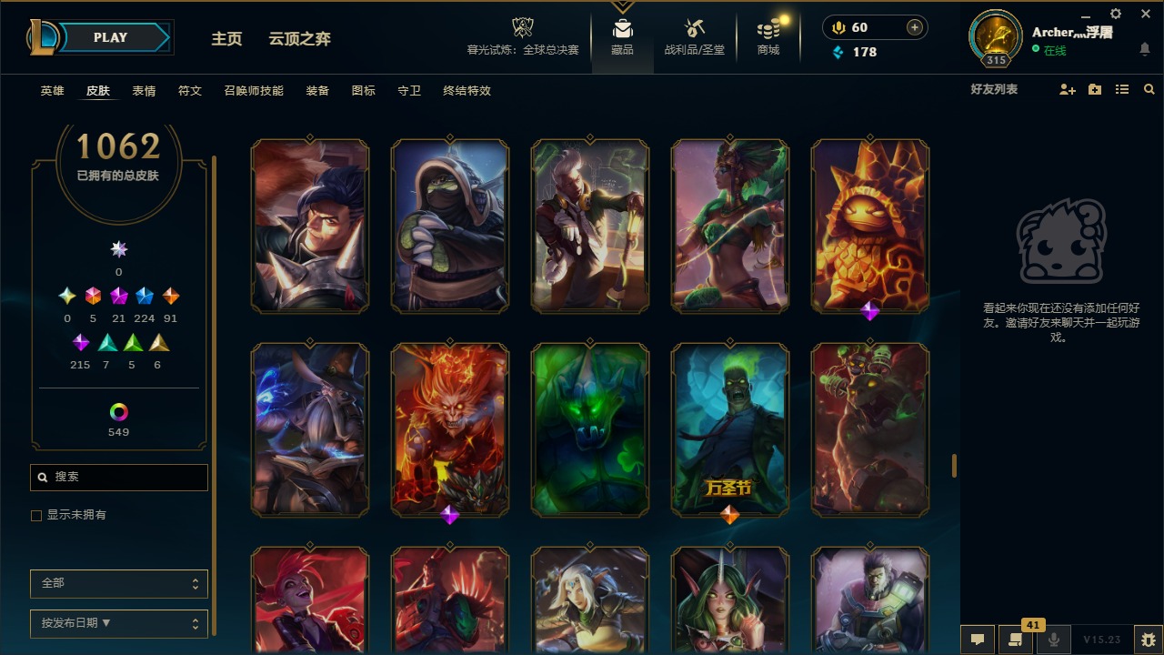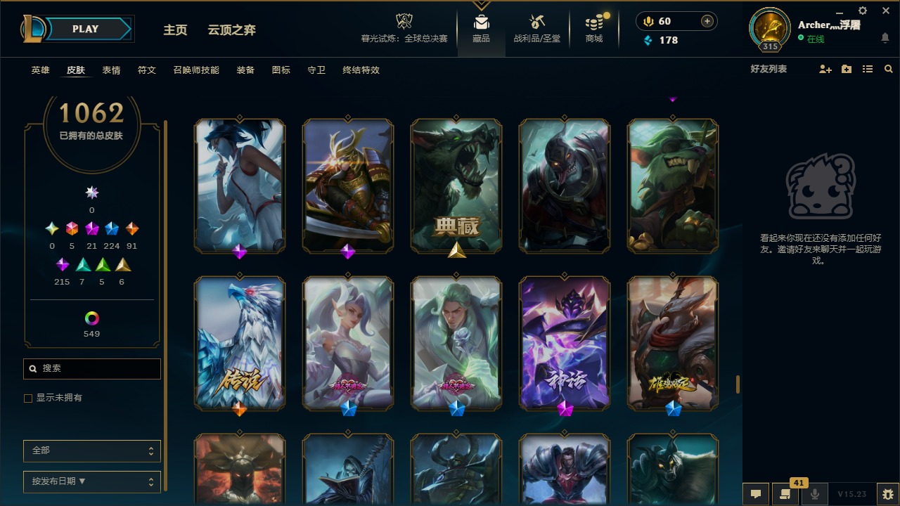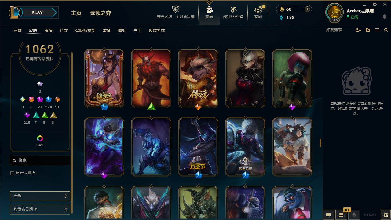 165英雄-1062皮肤-[]5终极 21神话 224限定 91传说 215史诗 1062皮肤 611炫彩 165英雄 可二次 可修改实名 【至臻】:至臻 k/da 阿卡丽至臻 绒毛菲兹至臻 k/da 阿狸至臻 玉剑传说 武剑仙至臻 王国机神玄武 盖伦至臻 奥术师 佐伊至臻 烈焰美人 薇恩至臻