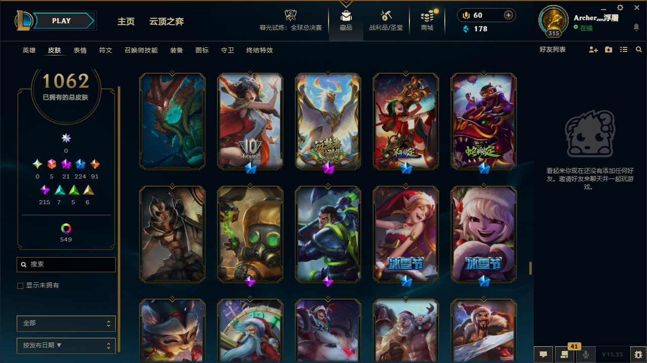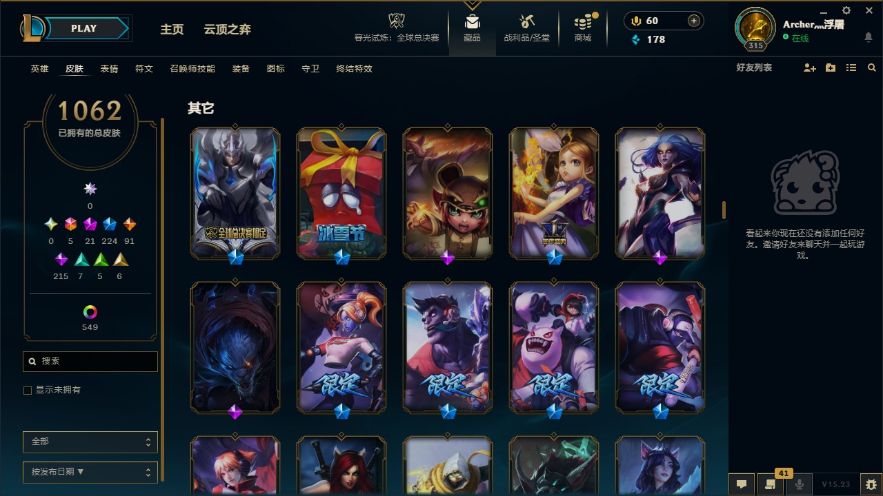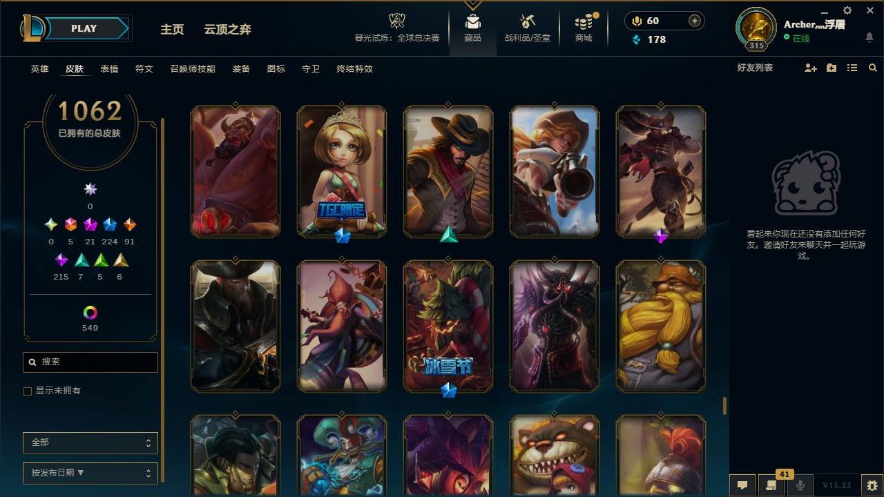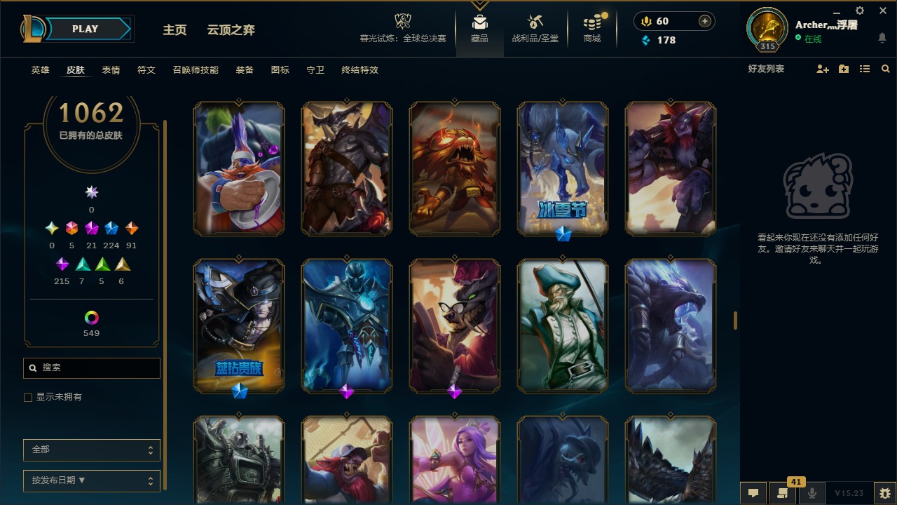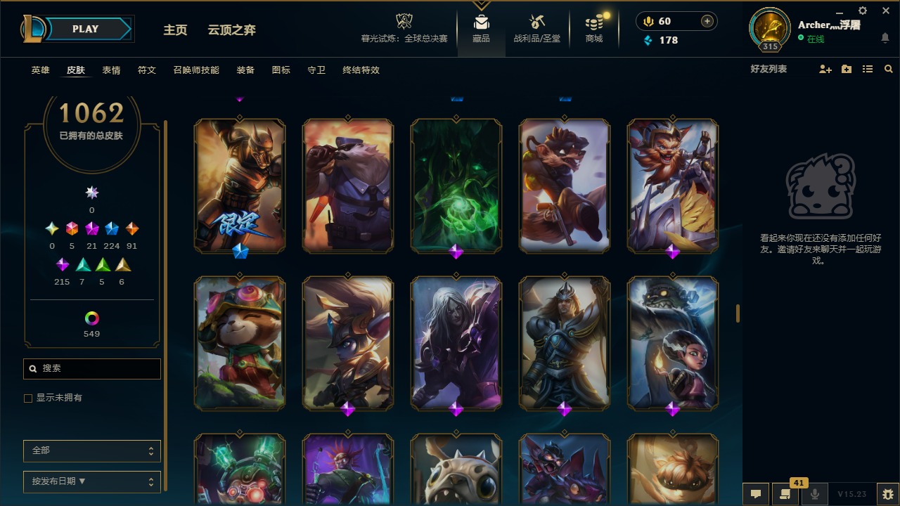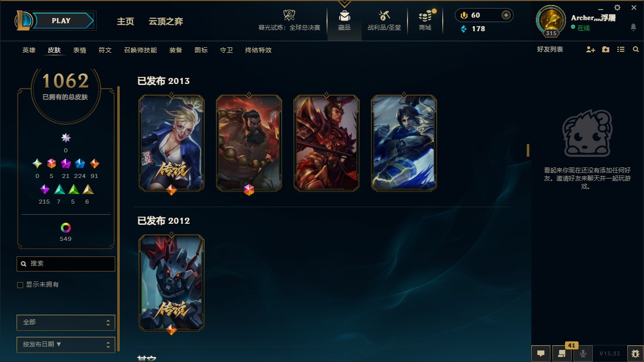 165英雄-1062皮肤-[]5终极 21神话 224限定 91传说 215史诗 1062皮肤 611炫彩 165英雄 可二次 可修改实名 【至臻】:至臻 k/da 阿卡丽至臻 绒毛菲兹至臻 k/da 阿狸至臻 玉剑传说 武剑仙至臻 王国机神玄武 盖伦至臻 奥术师 佐伊至臻 烈焰美人 薇恩至臻
