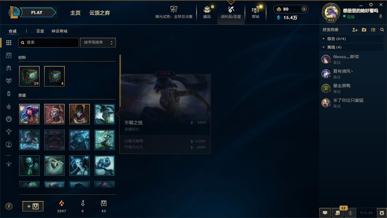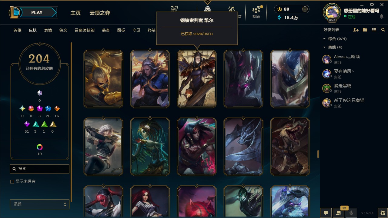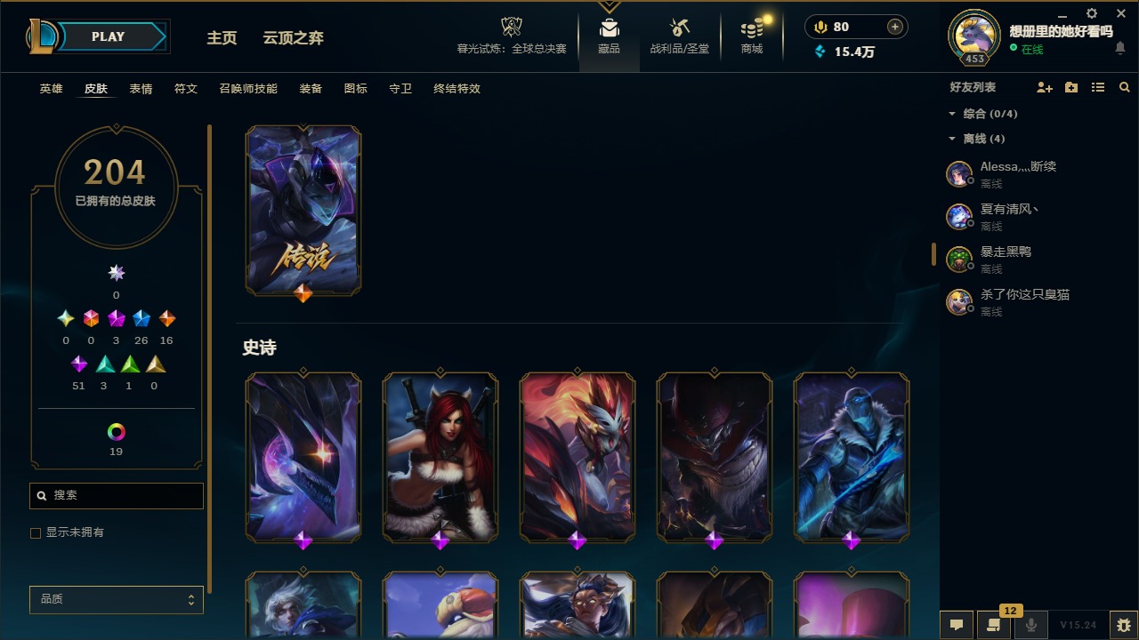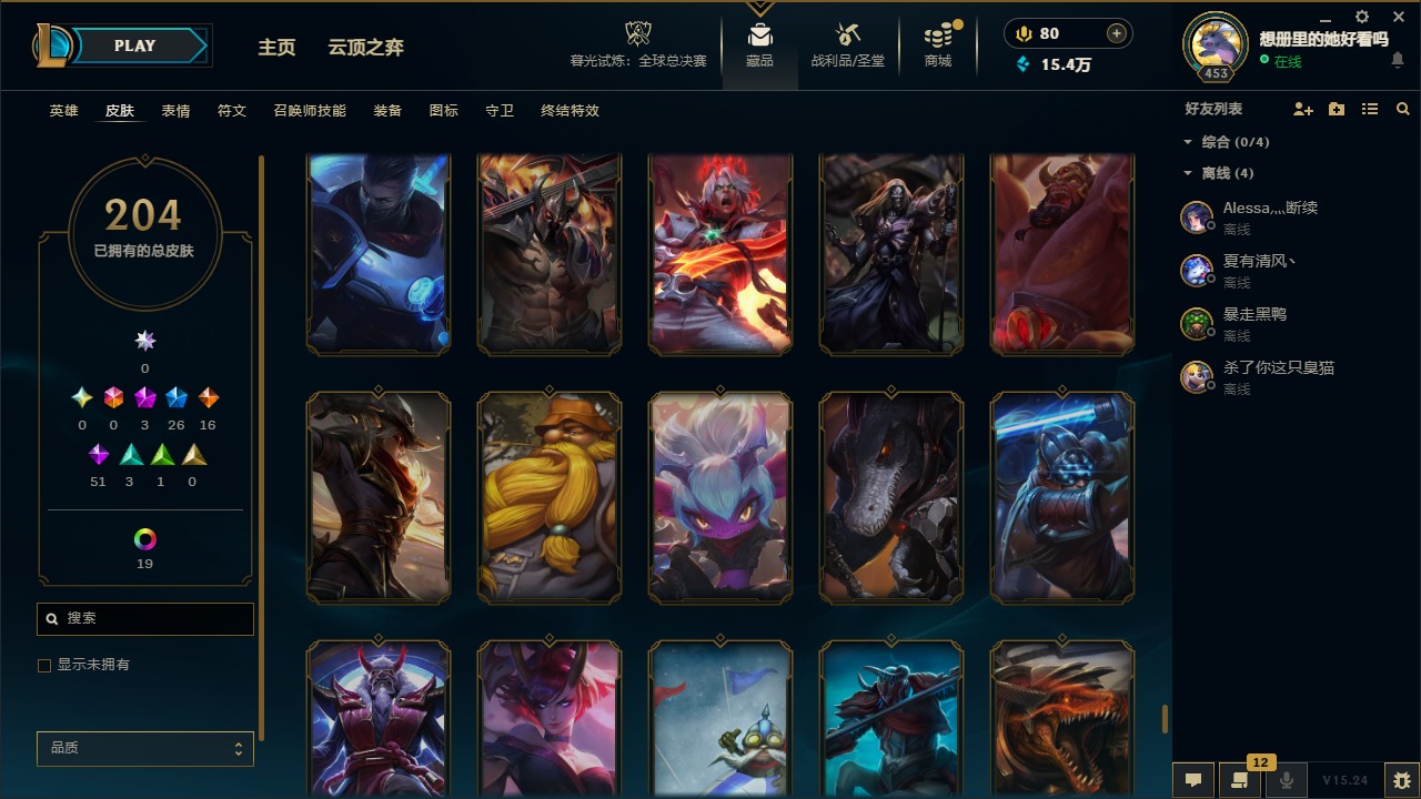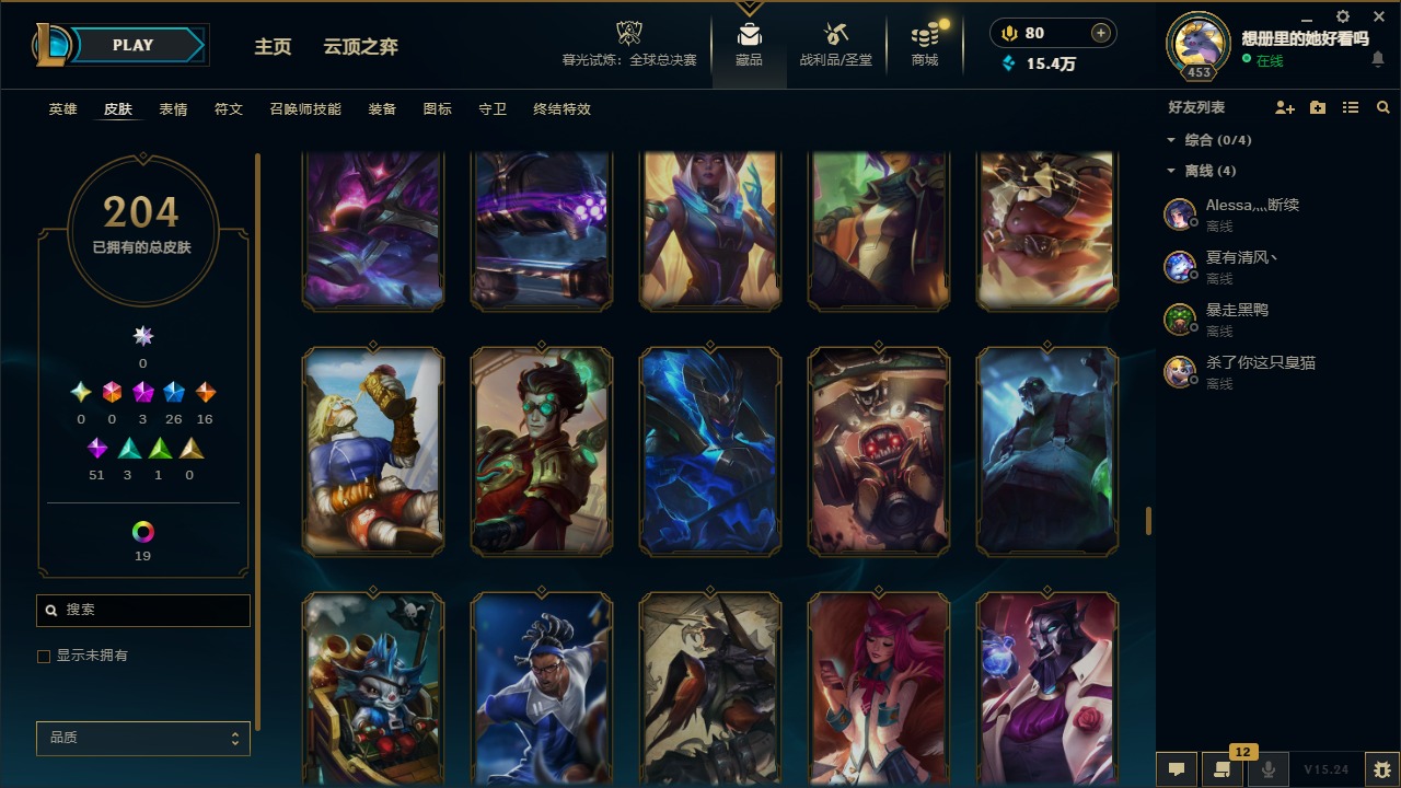 [14653324]3神话 26限定 16传说 51史诗 204皮肤 24炫彩 172英雄 可二次 可修改实名 【赛季限定皮】:胜利女神-菲奥娜胜利之运 崔斯特胜利女神 娑娜胜利巨口 克格莫胜利之王 泰达米尔胜利之剑 亚托克斯胜利呛神 卢锡安胜利机器人 布里茨 【冠军限定系列】:s1fnc 迦娜s2 暗杀星 蒙多s5 skt t1 滑板鞋 【冰雪节限定】:胡桃夹子 萨科魄罗骑士 瑟庄妮圣诞驯鹿 克格莫幸福女神 乐芙兰 【泳池派对】:泳池派对 吉格斯泳池派对 雷克顿 【年限】:天龙之子 斯莫德虎痴之拳 蔚北辰之威 内瑟斯 【周年】:4周年 锐雯10周年 安妮 【其他限定/神话皮】:十五周年纪念 希维尔暗裔英雄 盖伦源代码 乐芙兰防暴天使 凯尔暗影 沃里克都铎王朝 图奇冠军之隐 劫警用试作体k-9 内瑟斯