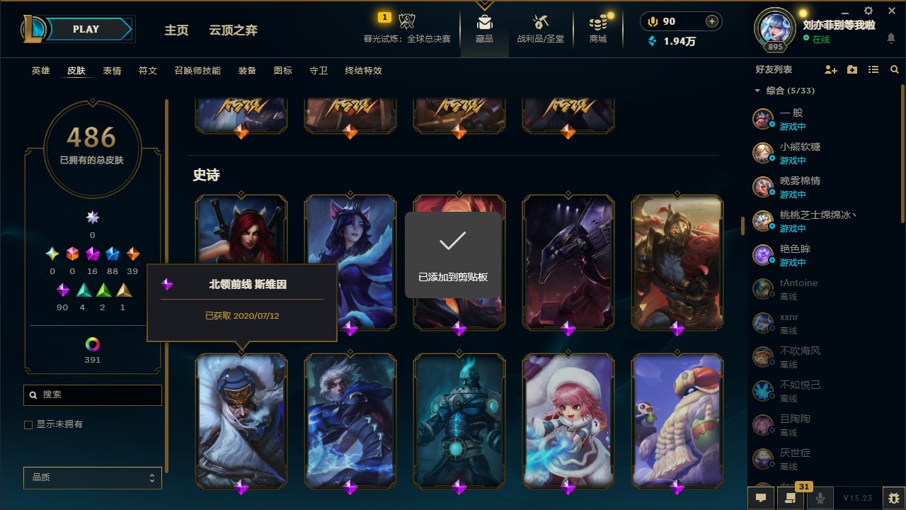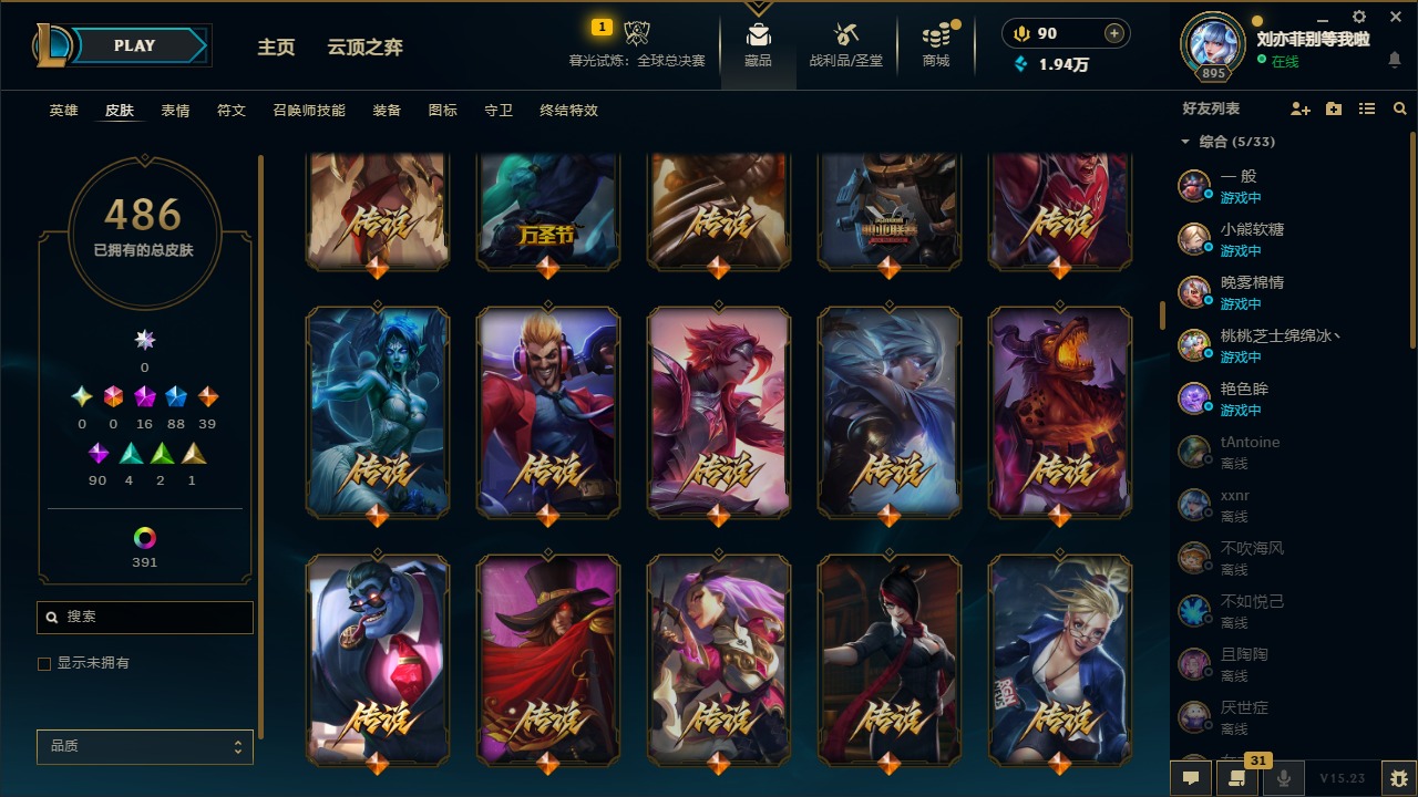 172英雄-486皮肤-[]16神话 88限定 39传说 90史诗 486皮肤 428炫彩 172英雄 可二次 可修改实名 【至臻】:至臻 天龙之子 伊泽瑞尔至臻 drx 亚托克斯至臻 双城之战2 指挥官 凯特琳至臻 k/da 卡莎至臻 玉剑传说 武剑仙至臻 西部魔影 泰隆至臻 海珀利安小队