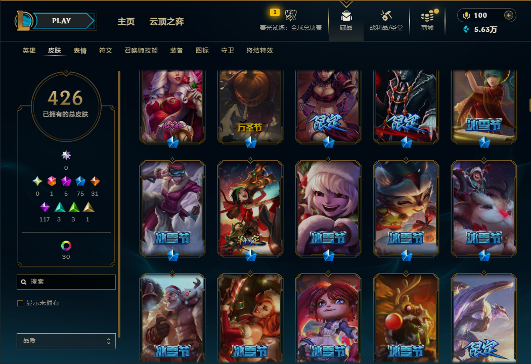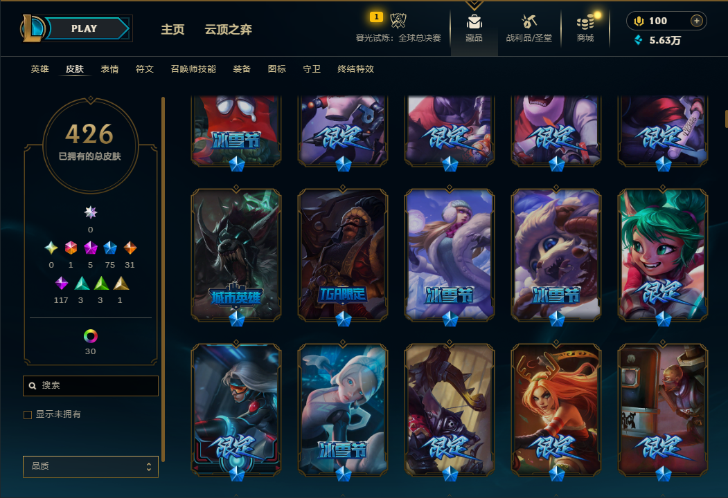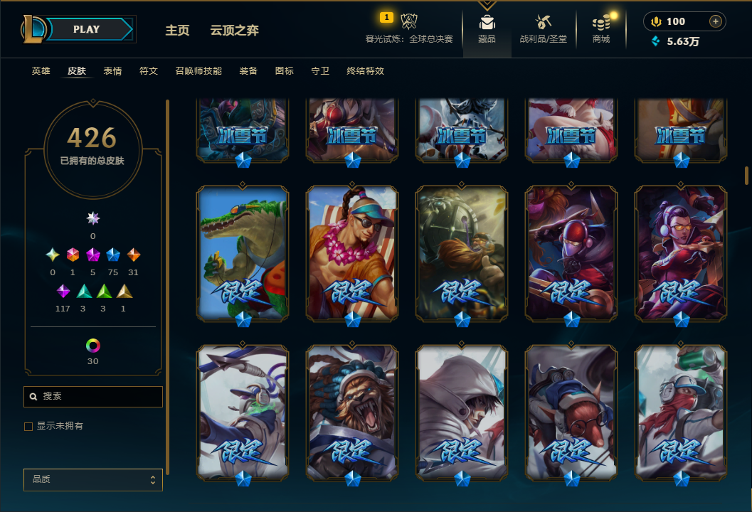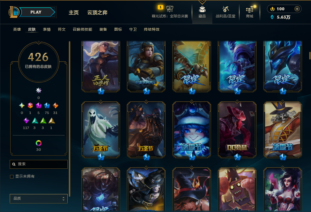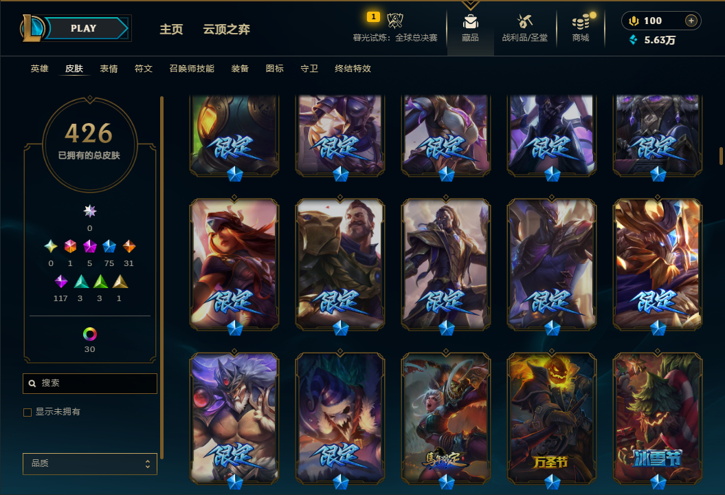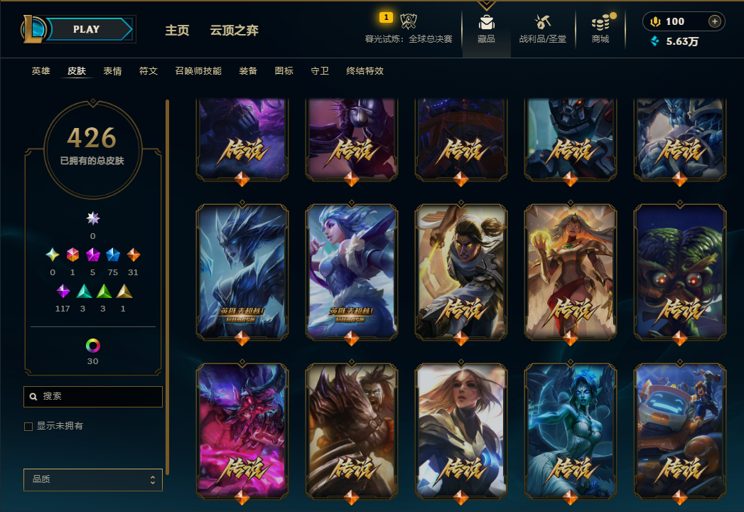 wl521 【黑色玫瑰343级 426皮肤 全英雄】171英雄-426皮肤-30炫彩-段位:未定