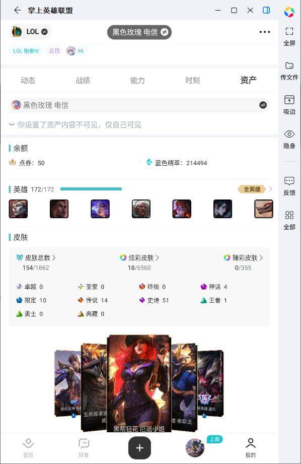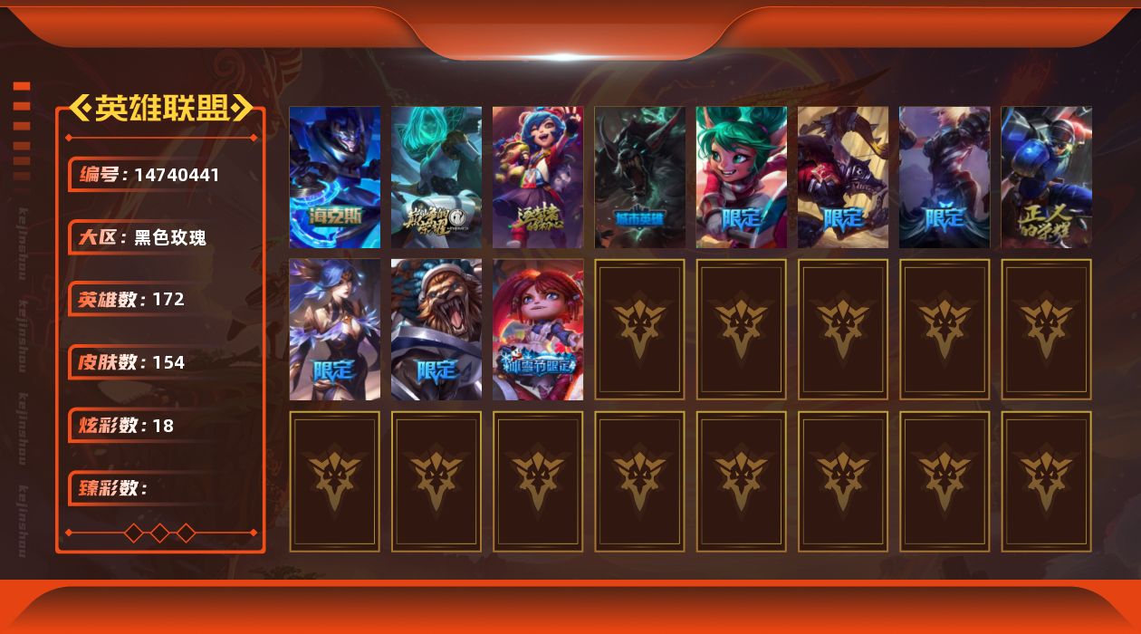 [14740441]可二次【店主推荐捡漏号!可直接换绑】铂金段位-172英雄-154皮肤-18炫彩-0终极-4神话-10限定-14传说-51史诗 【海克斯皮肤】:海克斯科技嘉文四世 【冰雪限定】:圣诞玩偶波比 【神话皮肤】:十周年纪念安妮,源代码乐芙兰,神凰行者瑞羽圣凰艾尼维亚,海克斯科技嘉文四世 【限定皮肤】:冠军之刃锐雯2016,ssw雷恩加尔,暗裔英雄盖伦,胜利女神娑娜,胜利女神菲奥娜,暗影沃里克,波比的巧克力工坊,都铎王朝图奇,防暴天使凯尔 【传说皮肤】:地狱之门卫士加里奥,大天使长米迦勒凯尔,太空律动律动队长提莫,合金巨兽努努和威朗普,绅士科加斯,黯晶凤凰艾尼维亚,电玩女神娑娜,女主播迦娜,女警狙击凯特琳,腥红之月鬼武姬阿卡丽,星之守护者拉克丝,黯黑魔龙希瓦娜,金牌主播德莱文,星之守护者金克丝 【史诗皮肤】:科学怪熊的新娘安妮,腥红之月崔斯特,摄魂男爵弗拉基米尔,地狱火阿利斯塔,战争机器赛恩,狼外婆沃里克,黑帮狂花厄运小姐,国王泰达米尔,百夫长贾克斯,刀锋女王莫甘娜,小小骑士阿木木,全金属狂潮拉莫斯,飞越疯人院萨科,战争血统蒙多,掠星魔刃卡萨丁,恐惧新星普朗克,穿着正装的恶魔维迦,抵抗军天使凯特琳,海贼魅影卡特琳娜,暗星奥莉安娜,斗战胜佛孙悟空,至高之拳李青,深海妖姬卡西奥佩娅,法老王朝内瑟斯,军神战甲波比,血色之锤波比,冰川勇者伊泽瑞尔,实习护士阿卡丽,源计划山蕾欧娜,兔女郎锐雯,侏罗纪化石克格莫,odst地狱伞兵拉克丝,暗影妖狐阿狸,虚空海灵菲兹,银河魔装机神菲兹,夜鸦菲奥娜,奥术大师吉格斯,源代码丽桑卓,暗黑女武神黛安娜,血羽凤凰奎因,仲裁圣女辛德拉,亚特兰蒂斯辛德拉,灰烬领主奥瑞利安索尔,战地机甲维克兹,源代码卡蜜尔,屠龙勇士布隆,银河魔装机神千珏,五星大厨塔姆,冲击之刃劫,腥红之月锤石,虚空使者俄洛伊 【王者皮肤】:战地之王加里奥 【其他皮肤1】:银河魔装机神安妮,黑暗骑士奥拉夫,牛扒狂战奥拉夫,探戈灵魂崔斯特,赌侠崔斯特,未来战士崔斯特,弗拉基米尔侯爵,学生会长弗拉基米尔,波江星神弗拉基米尔,宗师级法师训练师瑞兹,瑞兹白须,原野伐木工赛恩,森林女神索拉卡,睡衣守护者索拉卡,黑暗骑士沃里克,攻城巨兽努努和威朗普,勇敢的心艾希,嘻哈精神基兰,遗迹守护者基兰,机械污染辛吉德,科学狂人辛吉德,黑暗女王伊芙琳,探戈灵魂伊芙琳,幽灵幻影卡尔萨斯,尼斯巨兽科加斯,情绪摇滚