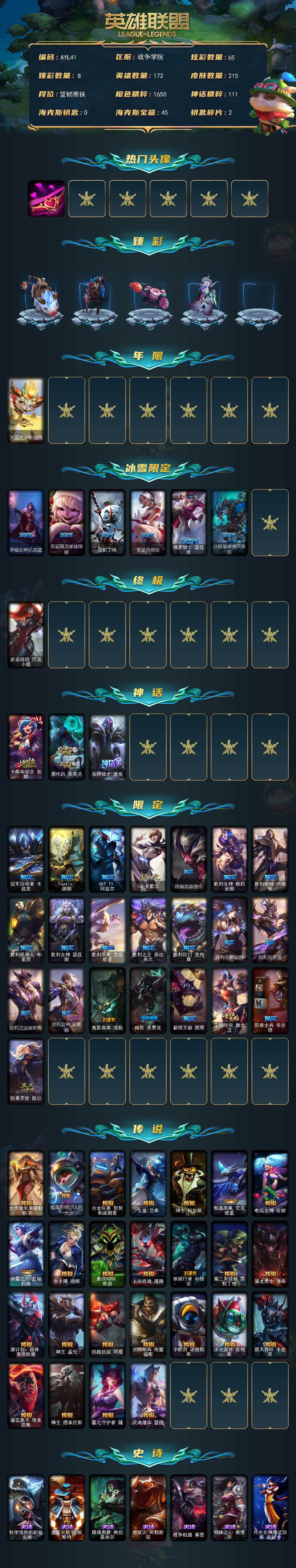 [14740452]【店主推荐捡漏号!可直接换绑】未定级段位-172英雄-215皮肤-65炫彩-1终极-3神话-29限定-25传说-51史诗 【热门头像】:爱情之歌头像 【臻彩皮肤】:无畏骑士瑟庄妮赤子初心,冠军之刃锐雯2016凯旋圣装,玉剑传说无劫胭脂,可爱可爱粉红红布里茨,魔女阿卡丽虚荣,净雪之月莫甘娜冬虹,这货不是银狐库奇,水晶玫瑰迦娜甜蜜花蕾 【年限皮肤】:天龙之子斯莫德 【冰雪限定】:幸福女神乐芙兰,圣诞精灵崔丝塔娜,雪默丁格,雪装奈德丽,魄罗骑士瑟庄妮,北极星使者沃里克 【终极皮肤】:武装战姬厄运小姐 【神话皮肤】:十周年纪念安妮,源代码乐芙兰,灰烬骑士派克 【限定皮肤】:冠军掠夺者卡兹克,fnatic迦娜,sktt1阿兹尔,ig卡蜜尔,暗裔英雄盖伦,胜利女神奥莉安娜,胜利呛神卢锡安,胜利机器人布里茨,胜利女神瑟庄妮,胜利凤凰艾尼维亚,胜利之王泰达米尔,胜利巨口克格莫,胜利女神娑娜,胜利剑圣易,胜利之运崔斯特,胜利女神菲奥娜,鬼影森森茂凯,暗影沃里克,都铎王朝图奇,玉剑传说舞龙卫,防暴士兵辛吉德,防暴天使凯尔 【传说皮肤】:大天使长米迦勒凯尔,提莫约德尔人的一大步,合金巨兽努努和威朗普,女皇艾希,绅士科加斯,黯晶凤凰艾尼维亚,电玩女神娑娜,冰霜之刃艾瑞莉娅,女主播迦娜,最终boss维迦,上古战魂魔腾,地狱行者孙悟空,第三类接触黑默丁格,屠龙勇士潘森,源计划超体莫德凯撒,神王盖伦,焰尾妖狐阿狸,光明哨兵格雷福斯,宇航员诺提勒斯,泳池派对吉格斯,霸天异形卡兹克,灌篮高手德莱厄斯,神王德莱厄斯,星之守护者霞,灵魂莲华瑟提 【史诗皮肤】:科学怪熊的新娘安妮,皇家火呛手崔斯特,摄魂男爵弗拉基米尔,地狱火阿利斯塔,战争机器赛恩,钢铁之心希维尔,月光女神阿忒弥斯索拉卡,女船长厄运小姐,炼金狂士辛吉德,死神卡尔萨斯,小小骑士阿木木,贵族血统萨科,掠星魔刃卡萨丁,夜刃艾瑞莉娅,特种部队普朗克,恐惧新星普朗克,穿着正装的恶魔维迦,北领前线斯维因,抵抗军天使凯特琳,海贼魅影卡特琳娜,符文战神雷克顿,暗星嘉文四世,腥红之月伊莉丝,至高之拳李青,地下拳王李青,战地机甲斯卡纳,艳后奈德丽,军神战甲波比,飞车暴走族古拉加斯,死亡领主莫德凯撒,孤高游侠盖伦,帝王斑蝶克格莫,深海怪鱼克格莫,腥红之月鬼武者慎,战国大名慎,odst地狱伞兵拉克丝,黑帮教父格雷福斯,虚空海灵菲兹,银河魔装机神菲兹,铁血猎人雷恩