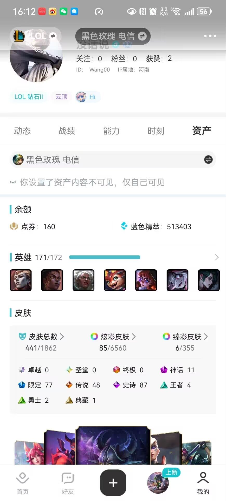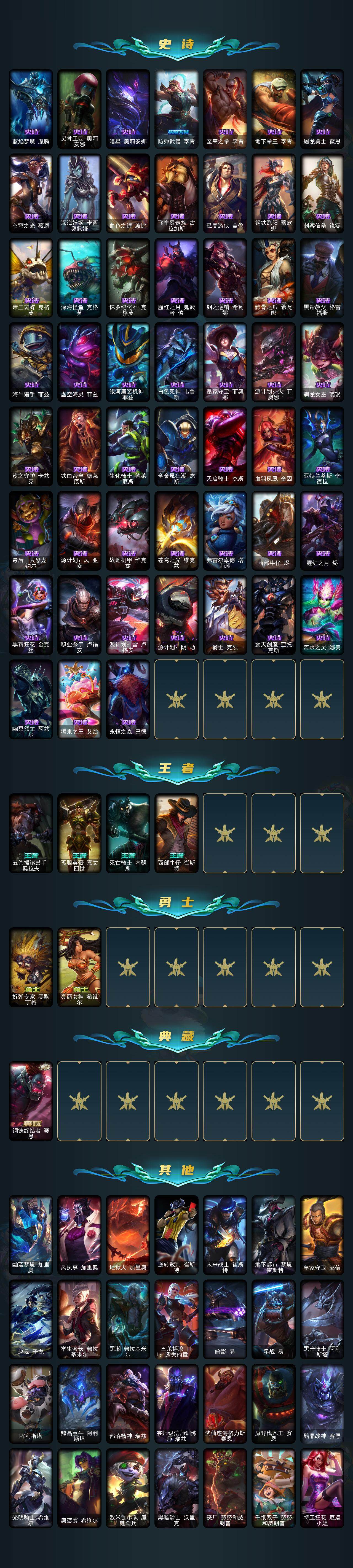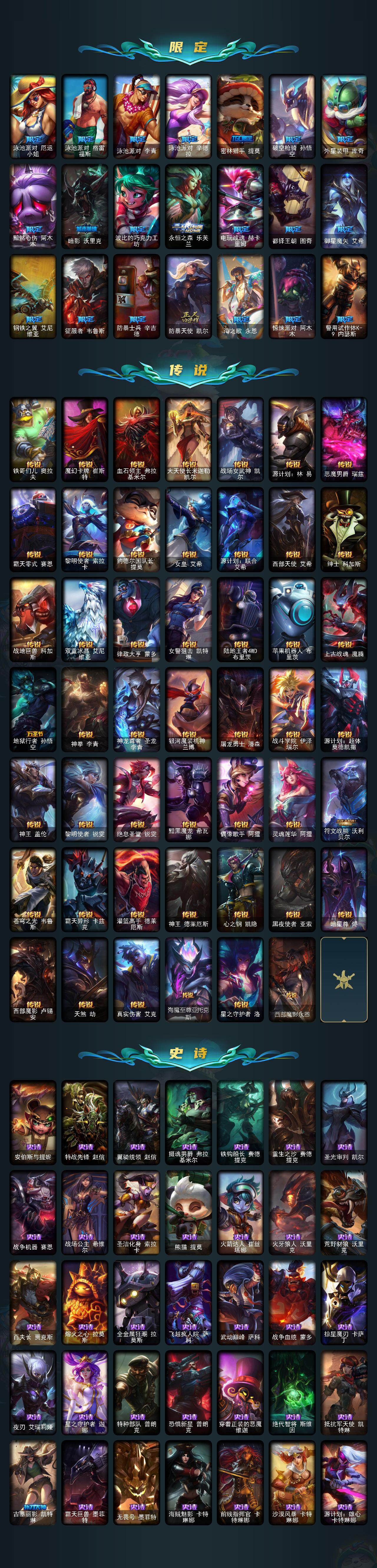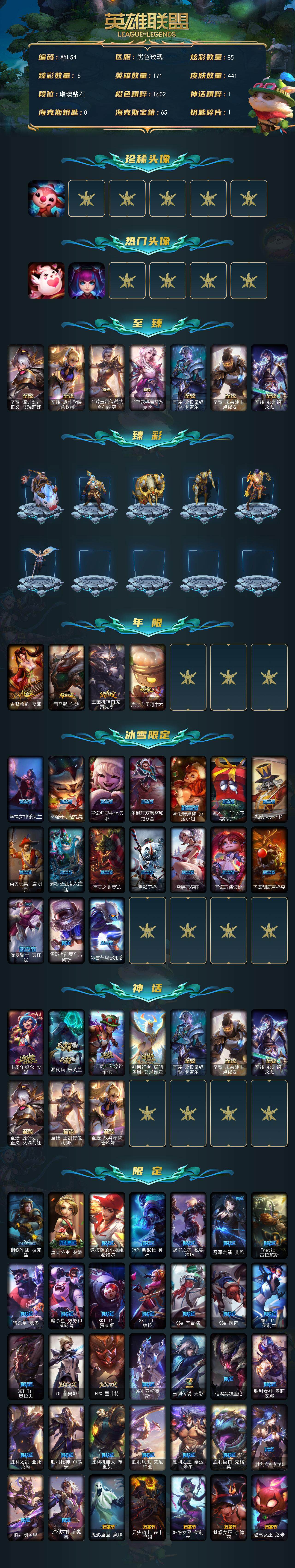 171英雄-441皮肤-钻石段位-171英雄-441皮肤-85炫彩-0终极-11神话-77限定-48传说-87史诗 【珍稀头像】:至爱的鹿头像 【热门头像】:爱情鸽头像,银河魔装机神安妮头像 【至臻皮肤】:至臻源计划正义艾瑞莉娅,至臻战斗学院蕾欧娜,至臻玉剑传说武剑仙锐雯,至臻灵魂莲华拉克丝,至臻北极星钢影卡蜜尔,至臻未来