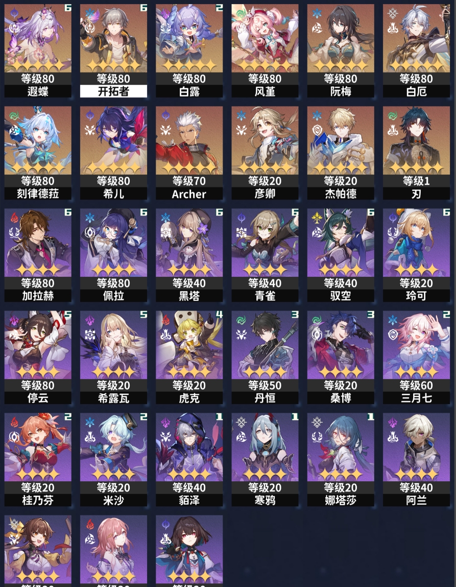 [12513888]m23296 61瑕蝶 风堇 刻律 70级男主25黄梦华0星琼88星轨专票0星轨通票011个五星角色:满命遐蝶2命白露风堇阮梅白厄刻律德菈希儿archer彦卿杰帕德刃服饰:冬去煦至6个五星光锥:精1黎明恰如此燃烧精1理想燃烧的地狱精1如泥酣眠精1以世界之名精1愿虹光永驻天空精1让告别更美一些【邮箱未实名出售】