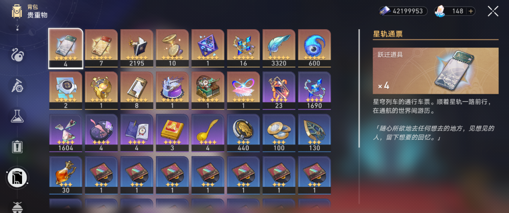 [13873847]m23878,70级女主52黄梦华0星琼148星轨专票7星轨通票424个五星角色:3命彦卿3命姬子1命知更鸟1命克拉拉1命丹恒饮月遐蝶长夜月风堇流萤忘归人阮梅黄泉飞霄缇宝花火星期日罗刹真理医生布洛妮娅丹恒腾荒白厄杰帕德符玄archer服饰:冬去煦至11个五星光锥:精5记一位星神的陨落精5星海巡航精1黎明恰如此燃烧精1比阳光更明亮的精1无可取代的东西精1如泥酣眠精1记忆永不落幕精1让告别更美一些精1银河铁道之夜精1记忆的质料精1银河铁道之夜