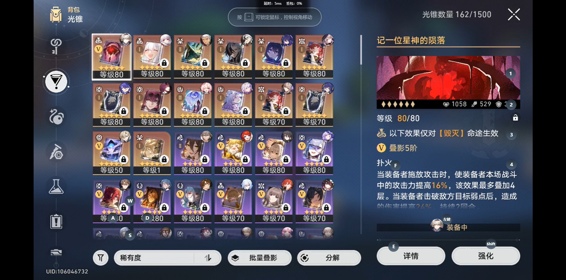 [14555054]【总黄数】:42 【5命金色角色】:5命姬子 【2命金色角色】:2命遐蝶2命彦卿2命布洛妮娅2命克拉拉 【1命金色角色】:1命风堇1命白露1命瓦尔特1命阮•梅 【0命金色角色】:0命希儿0命椒丘0命星期日0命大黑塔0命缇宝0命流萤0命archer0命海瑟音0命波提欧0命景元0命卡芙卡0命刃0命符玄0命镜流0命真理医生0命黑天鹅0命花火0命黄泉0命砂金 【精5武器】:精5记忆的质料精5记一位星神的陨落 【精3武器】:精3记忆永不落幕 【精2武器】:精2星海巡航 【精1武器】:精1驶向第二次生命精1让告别,更美一些精1于夜色中精1如泥酣眠精1无可取代的东西精1银河铁道之夜精1只需等待精1行于流逝的岸