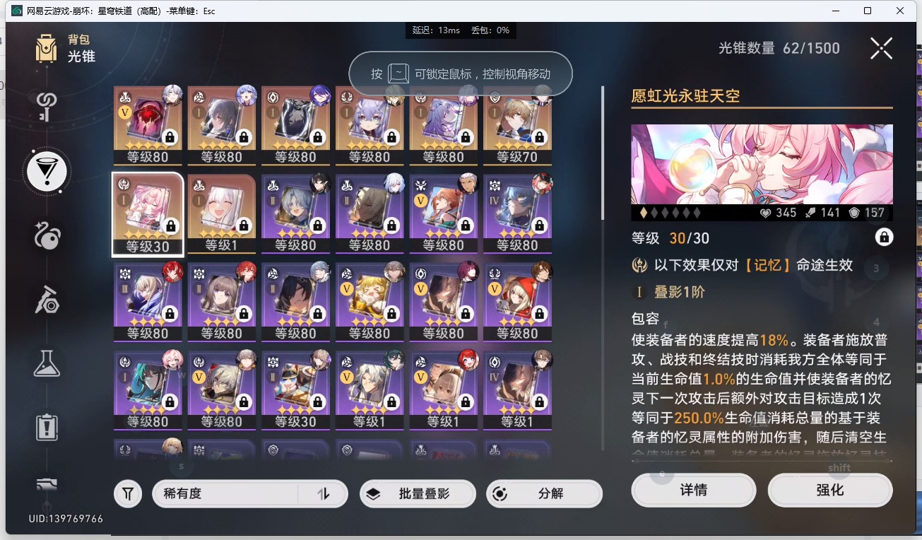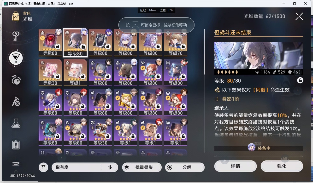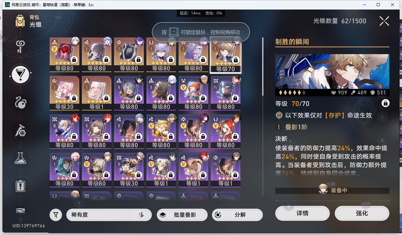 [14555125]【总黄数】:35 【3命金色角色】:3命瓦尔特 【1命金色角色】:1命布洛妮娅1命克拉拉1命阮•梅 【0命金色角色】:0命乱破0命星期日0命缇宝0命遐蝶0命风堇0命白厄0命archer0命长夜月0命丹恒·腾荒0命卡芙卡0命彦卿0命白露0命姬子0命杰帕德0命罗刹0命丹恒•饮月0命知更鸟0命镜流0命银枝0命真理医生0命黄泉 【精5武器】:精5记一位星神的陨落 【精1武器】:精1让告别,更美一些精1愿虹光永驻天空精1时节不居精1制胜的瞬间精1但战斗还未结束精1无可取代的东西精1行于流逝的岸