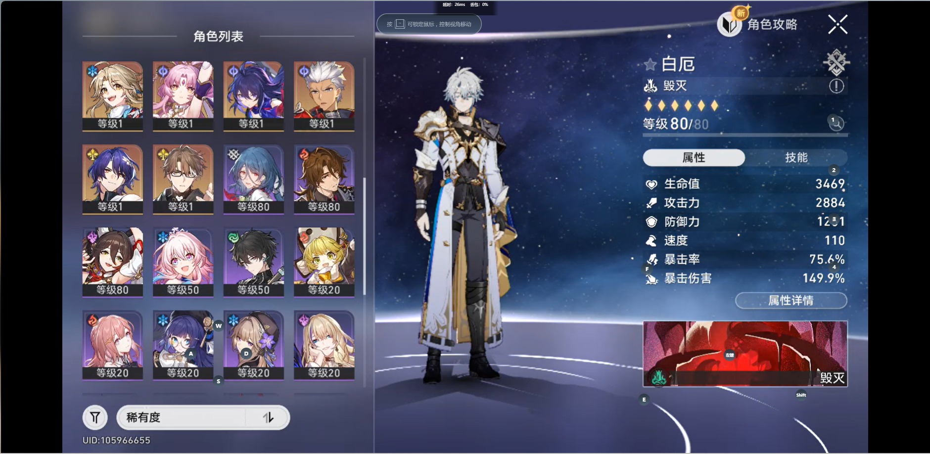 [14555452]【总黄数】:35 【2命金色角色】:2命白厄2命布洛妮娅 【1命金色角色】:1命姬子1命瓦尔特1命克拉拉1命阮•梅 【0命金色角色】:0命希儿0命星期日0命忘归人0命遐蝶0命流萤0命风堇0命archer0命刻律德菈0命丹恒·腾荒0命景元0命彦卿0命知更鸟0命符玄0命真理医生0命砂金 【精5武器】:精5记忆永不落幕精5记忆的质料精5记一位星神的陨落 【精2武器】:精2孤独的疗愈精2星海巡航 【精1武器】:精1拂晓之前精1回到大地的飞行精1让告别,更美一些精1愿虹光永驻天空精1理想燃烧的地狱精1制胜的瞬间