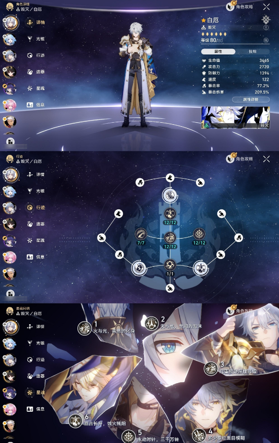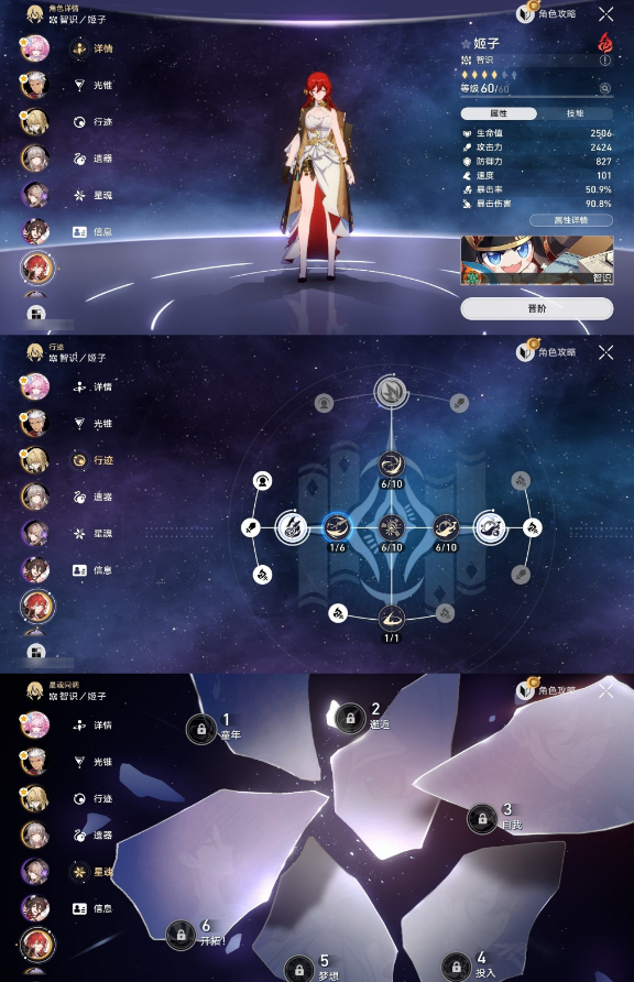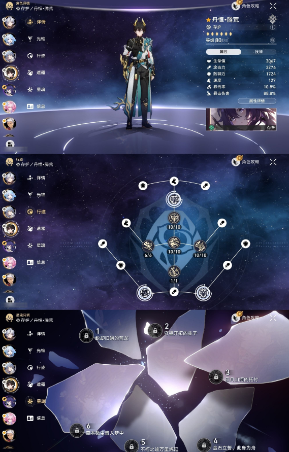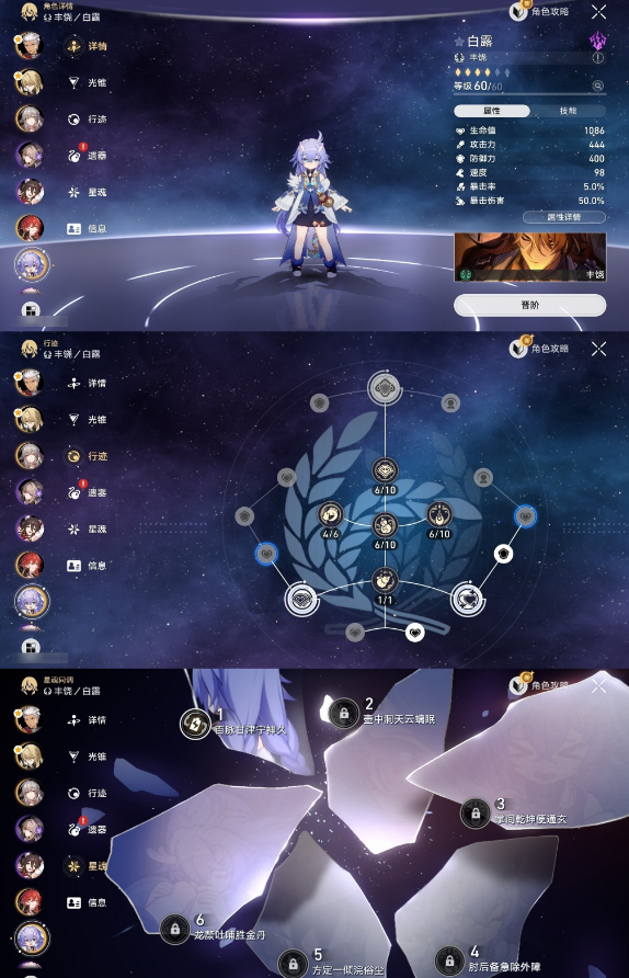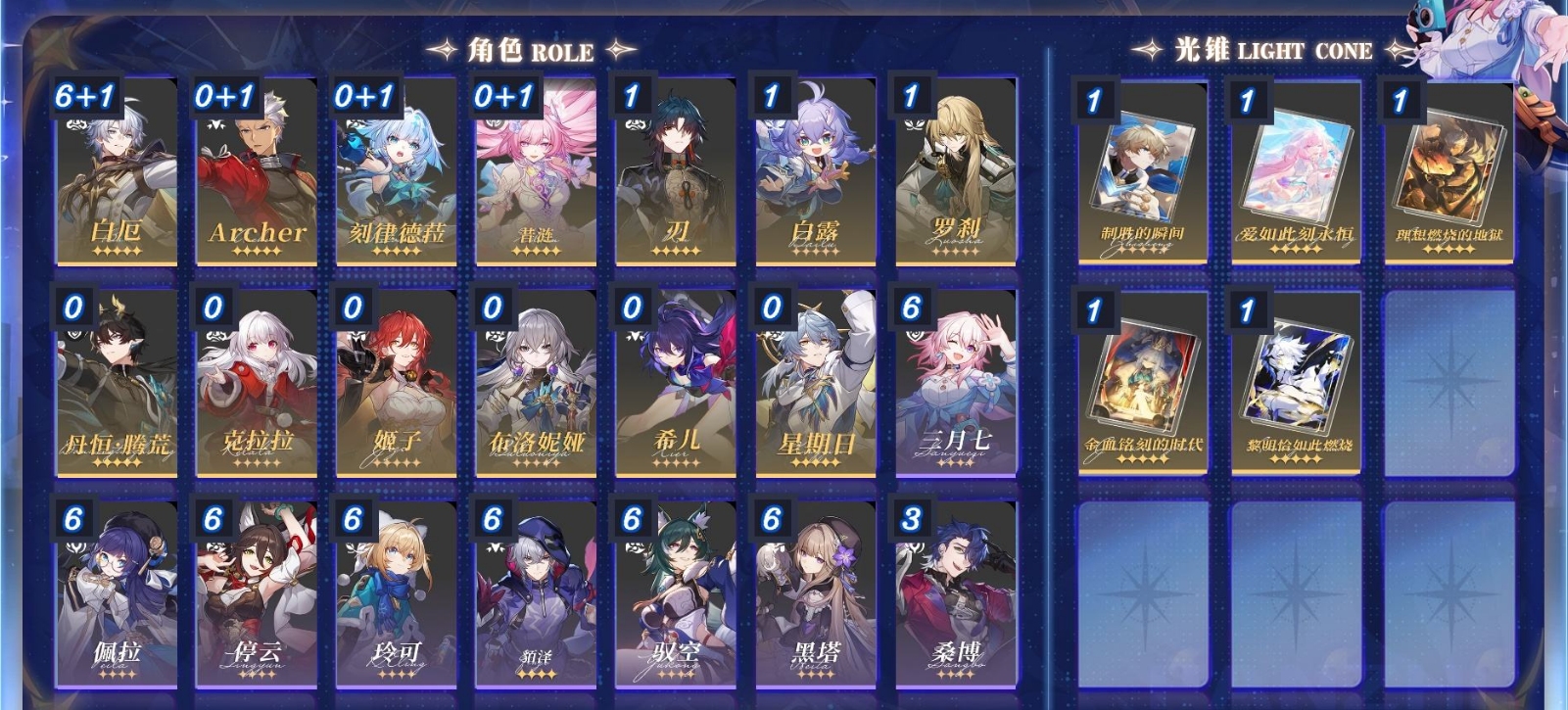 [14324217]m24138,70级女主27黄梦华0星琼163星轨专票0星轨通票013个五星角色:满命白厄1命罗刹1命白露1命刃刻律德菈星期日丹恒腾荒昔涟archer姬子布洛妮娅克拉拉希儿5个五星光锥:精1黎明恰如此燃烧精1理想燃烧的地狱精1金血铭刻的时代精1爱如此刻永恒精1制胜的瞬间