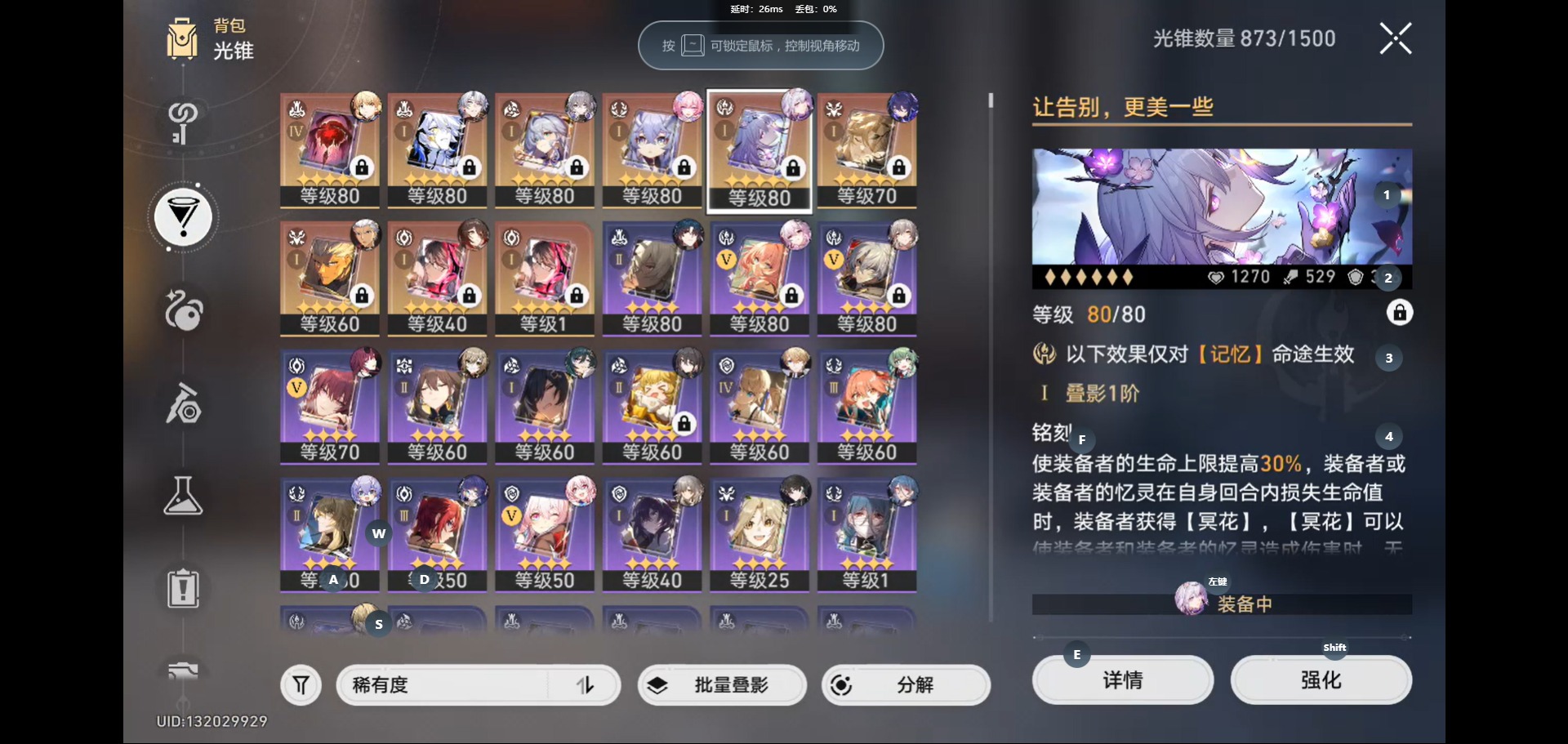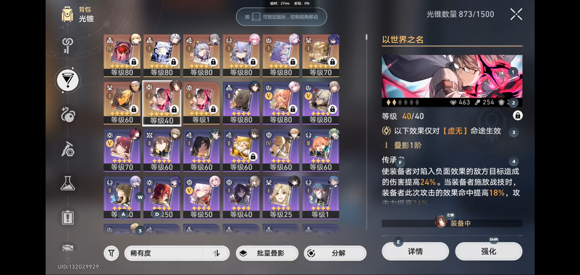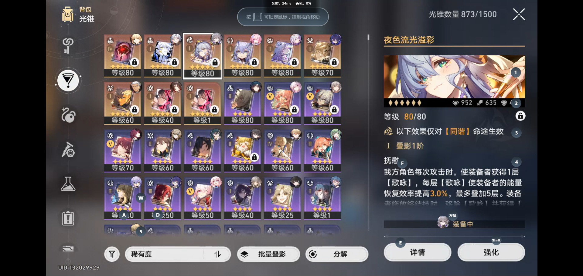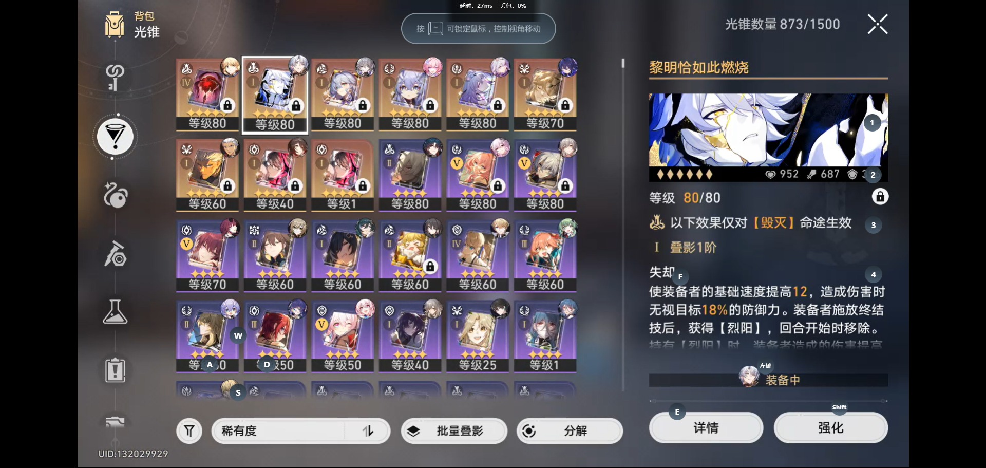 [14593382]【总黄数】:33 【4命金色角色】:4命白露 【1命金色角色】:1命遐蝶1命卡芙卡1命布洛妮娅1命克拉拉1命丹恒•饮月 【0命金色角色】:0命希儿0命忘归人0命白厄0命saber0命archer0命长夜月0命丹恒·腾荒0命彦卿0命姬子0命瓦尔特0命杰帕德0命罗刹0命刃0命藿藿0命阮•梅0命真理医生0命昔涟 【精4武器】:精4记一位星神的陨落 【精1武器】:精1让告别,更美一些精1黎明恰如此燃烧精1理想燃烧的地狱精1夜色流光溢彩精1时节不居精1如泥酣眠精1以世界之名