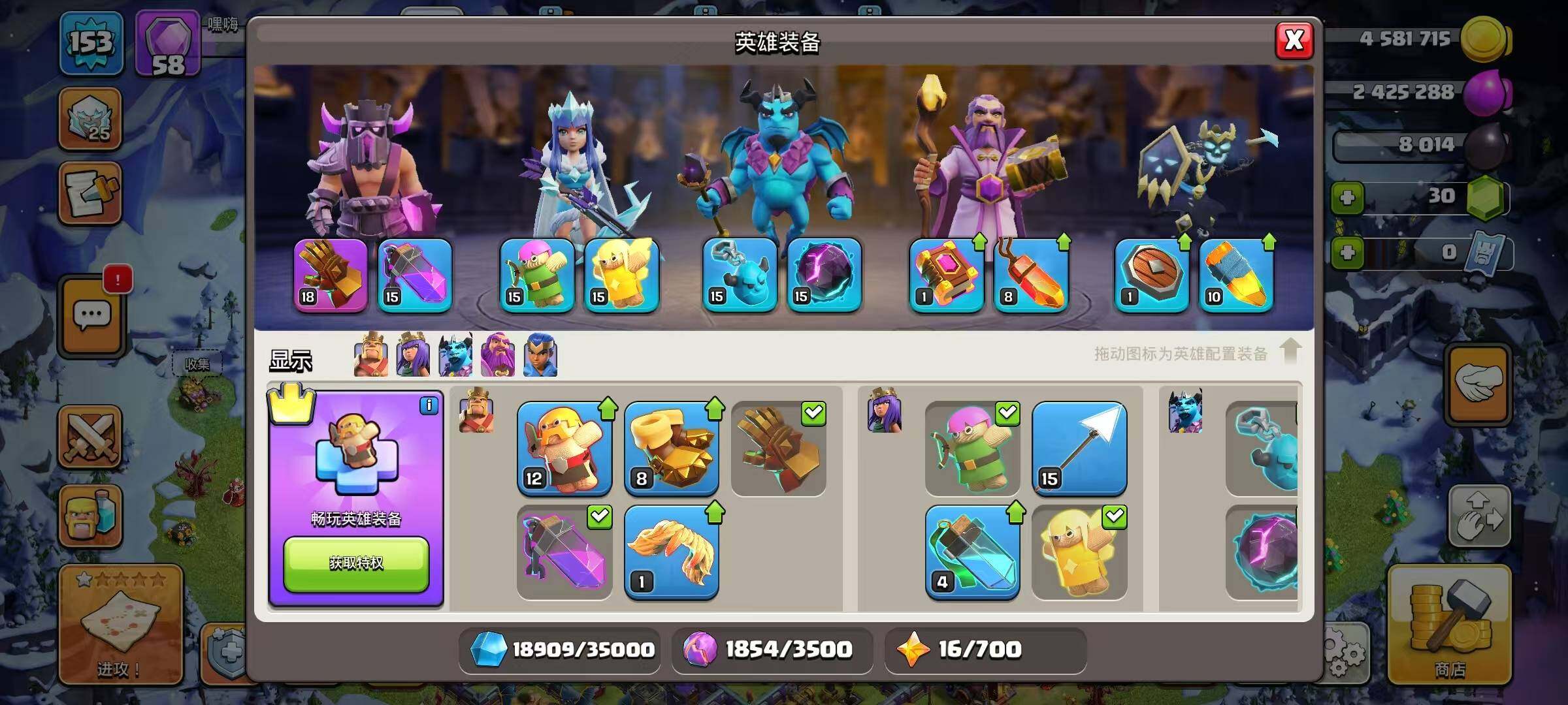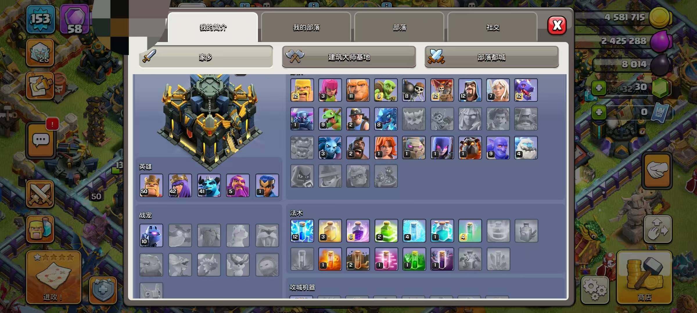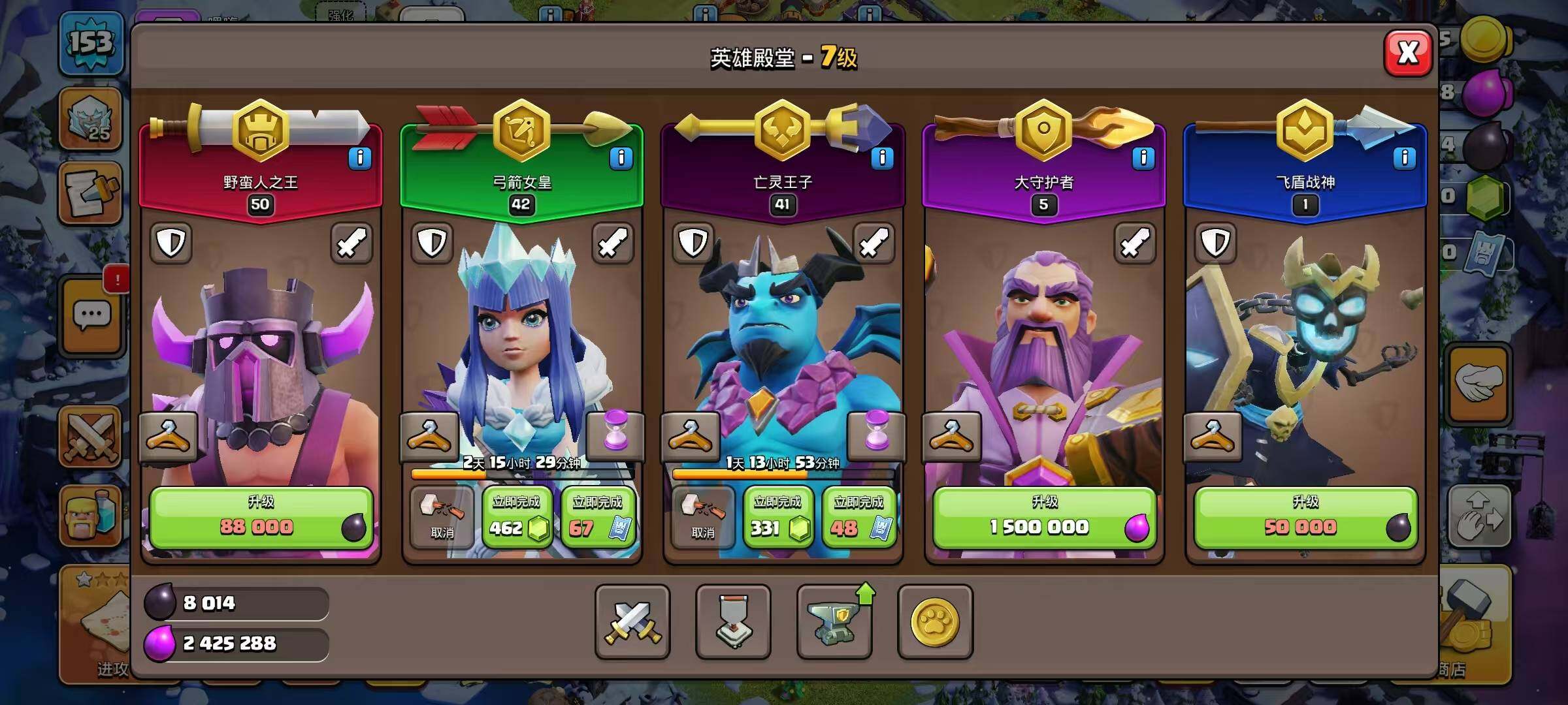 【bln530】等级153/6王皮/6场景/5农/英雄等级50-42-5-1/部落工坊/海上基地/冰天雪地/幽静丛林/像素世界/魔法世界/爆裂小队蛮王/魔法蛮王/像素蛮王/皮卡蛮王/冰雪女皇/幽灵战神