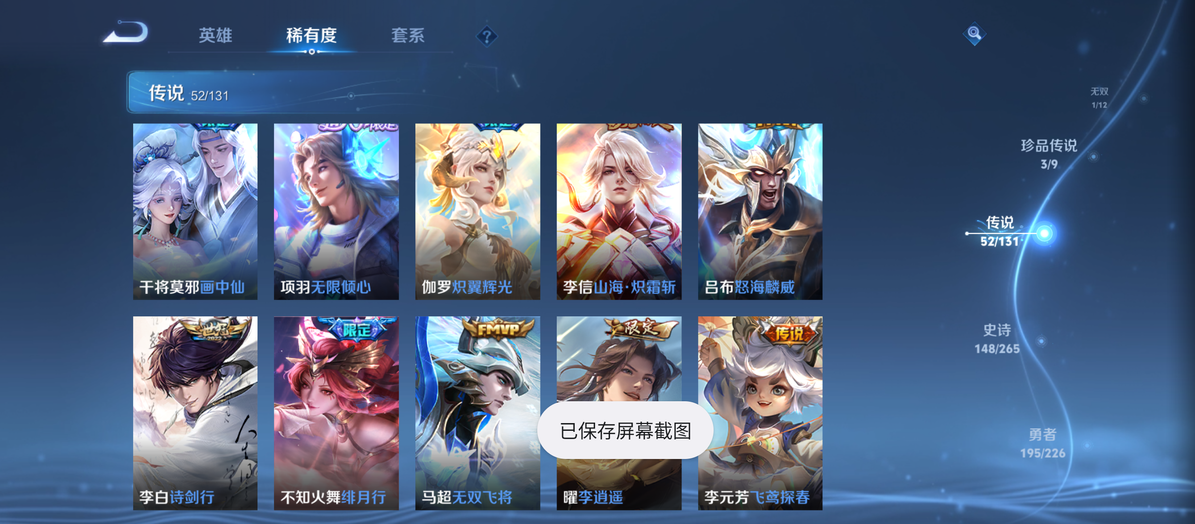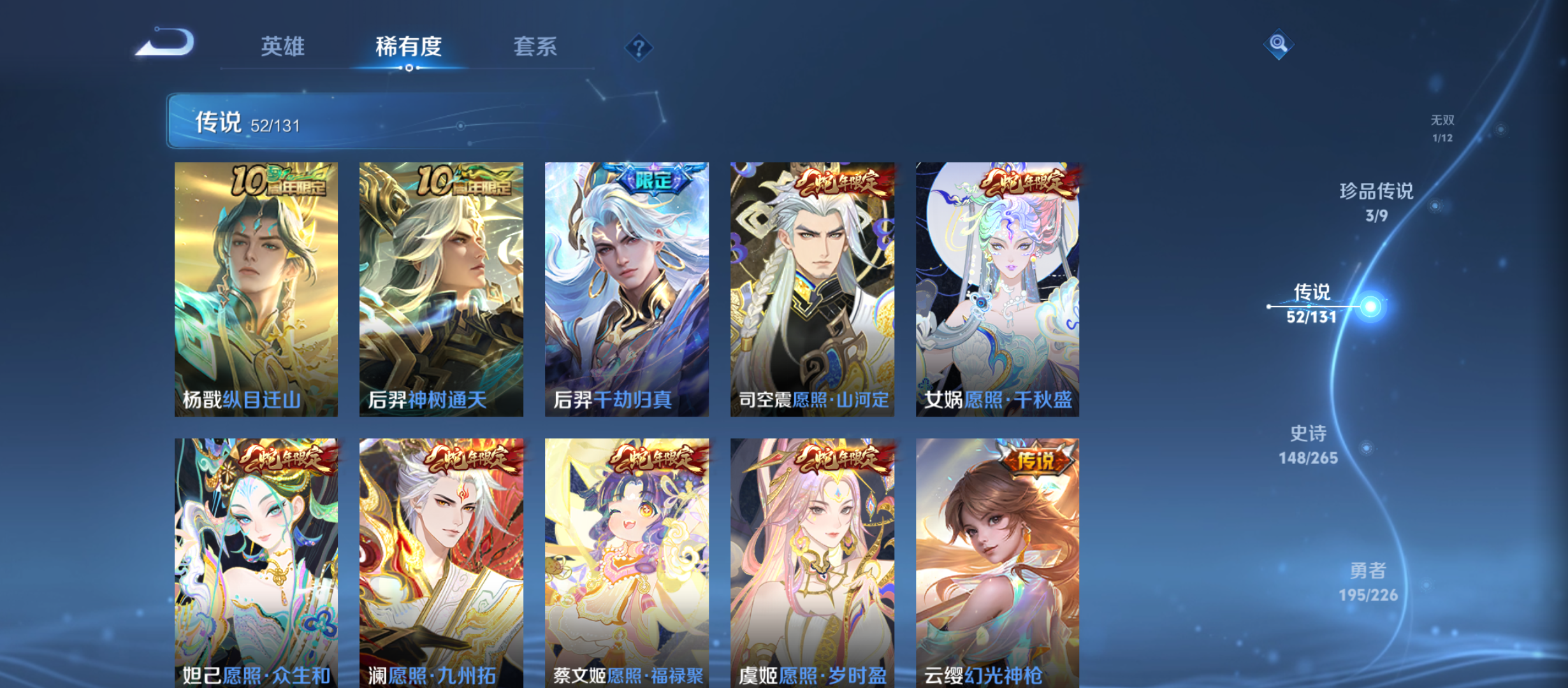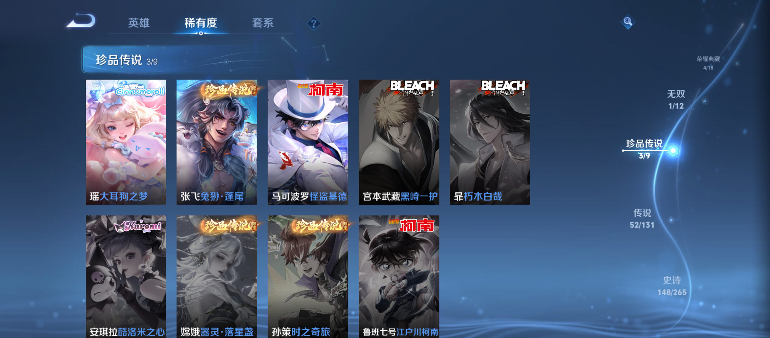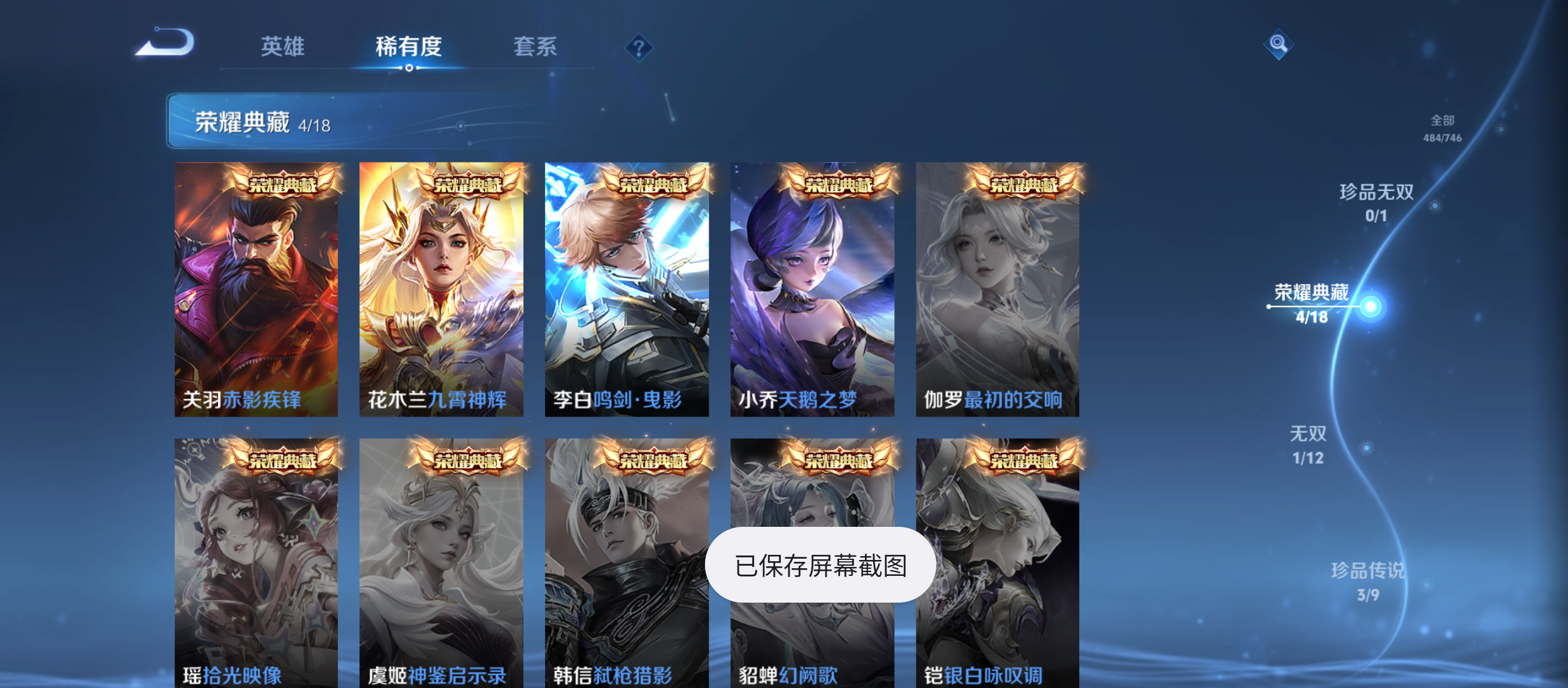 txwz20399 v10 484皮 4典藏(天鹅之梦,九霄神辉,赤影疾锋,鸣剑·曳影)1无双 ( 碎月剑心)3珍品(大耳狗之梦,兔狲·蓬尾,怪盗基德)52传说 (纵目迁山,霜北刀,飞鸢探春,神树通天,觅芳踪,超时空战士,冠军飞将,祈雪灵祝,千劫归真,幻光神呛,愿照·福禄聚,愿照·岁时盈,愿照·众生和,愿照·千秋盛,愿照·山河定,愿照·九州拓,鸣野蒿,妄想实况,画中仙,牧神诗旅,逐花归海,炽翼辉光,怒海麟威,地狱火,金乌负日,李 ,乘龙·铭钟鼎,乘龙·淬吴钩,乘龙·问璇玑,炽阳神光,地狱之眼,黄金白羊座,无双飞将,仲夏夜之梦,无限倾心,末日机甲,启明星使,山海·炽霜斩,诗剑行,黄金射手座,猫影幻舞,绯月行,武圣,一念神魔,时雨天司,零号·赤焰,白虎志,云鹰飞将,时之恋人,久胜战神,黄金狮子座,凤求凰)148史诗(至尊宝)