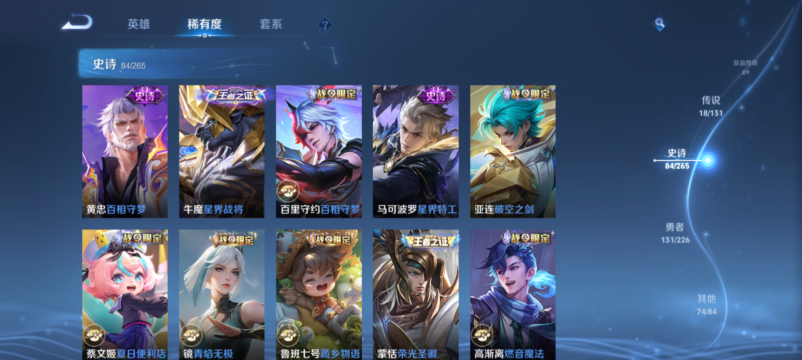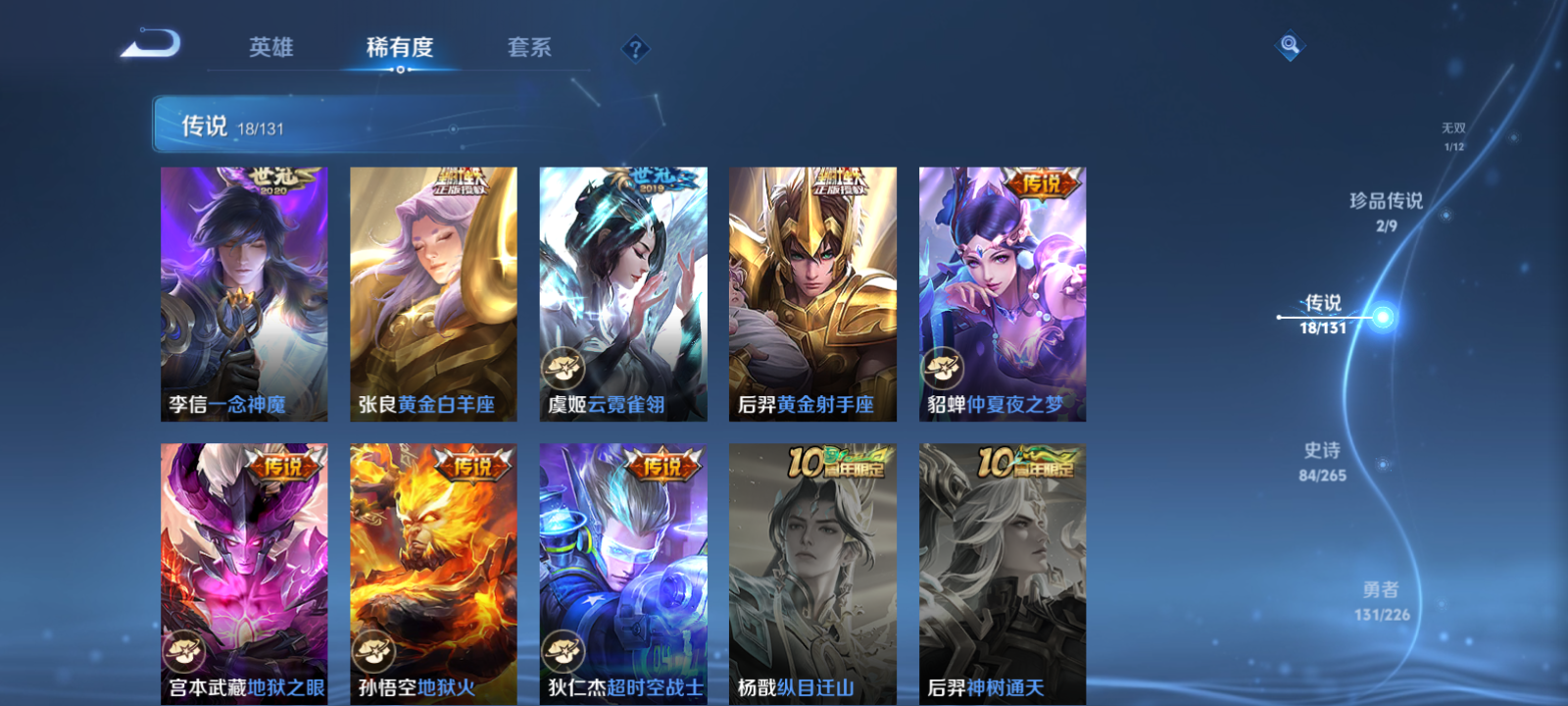 【王者荣耀】【lywz19646】珍品无双0 典藏1 无双1 珍品传说2 传说18 史诗84 英雄127 皮肤311 贵族0级 荣耀典藏:弑呛猎影__无双皮肤:碎月剑心__珍品传说:江户川柯南|怪盗基德__传说皮肤:鸣野蒿|炽阳神光|启明星使|地狱之眼|地狱火|仲夏夜之梦|云霓雀翎|狄仁杰-超时空战士|黄金射手座|黄金白羊座|一念神魔|云鹰飞将|游龙清影|乞巧织情|淬星耀世|诗剑行|小乔-音你心动|山海·炽霜斩__稀有限定:至尊宝|蔷薇恋人|神威|孙行者|李小龙|梁祝|狮舞东方|拒霜思|百解令|冰霜恋舞曲|大漠名商|地狱燃心|繁星吟游|古海寻踪|海滩派对|海盐诗旅|皇家上将|辉光之辰|剑破天穹|江河有灵|金庭之子|蓝屏警告|黎明之约|迷踪丽影|魔术师|匿光启智者|女武神|千军破阵|擒涛扼浪|青焰无极|驱傩正仪|燃音魔法|荣光圣徽|沙漠行僧|探海日志|醍醐杖|天穹祈灯|万华元夜|无心|五谷丰年|纤云弄巧|演武夺筹|疑决卦|阴阳师|银河之约|御銮|原初追逐者|暗夜贵公子|暗隐猎兽者|缤纷独角兽|冰雪圆舞曲|乘风破浪|大乔-猫狗日记|德古拉伯爵|地狱岩魂|电玩·爆裂旋风|电玩小子|功夫厨神|鬼剑武藏|黄金分割率|箭羽风息|节奏热浪|金属风暴|乐园奇幻夜|李元芳-蔬乡物语|龙骑士|吕布-末日机甲|魅力维加斯|梦奇-顽趣|女仆咖啡|偶像歌手|青蛇|圣诞狂欢|圣诞恋歌|诗语江南|鲁班七号-蔬乡物语|水果甜心|水晶猎龙者|孙策-猫狗日记|晚萤|赵云-未来纪元|星夜王子|雪夜绮愿|鹰眼统帅|永昼|幽灵船长|月团寄思|逐浪之夏|紫霞仙子|百里守约-百相守梦|老夫子-百相守梦|星界特工|噬灭天穹|敬我三分|破空之剑|蔡文姬-夏日便利店|虞姬-夏日便利店|天穹之誓|修罗|曙光守护者|心灵战警|孙尚香-时之恋人|无限星赏官|舞动绿茵|特工魅影|心灵骇客|星界战将|谧流熔炉|原初探秘者|云中旅人|孙悟空-神迹守卫|流音漫舞|灵卜魔法|苍威无极|布丁狗之约|虚灵犬护|逆浪荇歌|黄忠-百相守梦|荣光之誓|鹤鸣心笺__优质皮肤:尼罗河女神|一千零一夜|创世神祝|年年有余|埃及法老|孤猎|木偶奇遇记|熊喵少女|午夜歌剧院|露花倒影|未来旅行|激情绿茵|海之征途|天启骑士|碧珀绯影|秩序猎龙将|锦衣卫|冰刃幻境|森|超能战警|英喵野望|维京掠夺者|海军大将|绯红之刃|踏雪寻梅|启蛰|战争骑士|伊势巫女|生化警戒|威尼斯狂欢|第七人偶|潮流仙人|芝加哥教父|街头旋风|绝影神呛|地府判官|幸存者|赤焰之缨|福禄兄弟|隐刃|前尘|特种部队|三太子|精灵王|范海辛|星航指挥官|龙域领主|爱与和平|占星师|花间舞|魇语军师|极冰防御线|花见巫女|东海龙王|蔷薇王座|灼热之刃|精准探案法|圣殿之光|帝国元帅|霓裳曲|加勒比小姐|阿摩司公爵|异域舞娘|精灵公主|修竹墨客|万圣前夜|怪诞之夜|长夏之忆|暗都幽影|功夫炙烤|暖冬絮语|聚星闪耀|潮玩探月行|瓷语鉴心|秘密基地|次元突破|鲨炮海盗猫|野性能量|虹云星官|守护之力|坚韧之力|幻乐之宴|功夫老勺|命运角斗场|幻想奇妙夜|海滩丽影|阿尔法小队|兔女郎|死亡骑士|黄金武士|少女阿狸|天使之翼|玩偶对对碰|宫本武藏-未来纪元|东方不败|红桃皇后|忍·炎影|爱心护理|街头霸王|教廷特使|金色潮汐|漠中幻影|时空谍影|破局者|王牌新星|乐园追猎者|紫罗兰之誓|黑桃队长|拳王|时尚教父|救世之瞳|白色死神|程咬金-星际陆战队|白执事|大发明家|哥特玫瑰|西施-雪境奇遇|星梦巡礼|灵卦秘语|景韶洛都|缤纷绘卷|掌控之力|雾都夜雨|逐霄战戟|铁骨偃魂|纽约教父|龙腾万里|乱世虎臣|敏锐之力|西施-归虚梦演|孙悟空-西部大镖客|牛魔-西部大镖客|鲁班大师-归虚梦演|热血海滩|龙舞盛年|汉昭烈帝|乓乓大师|五福同心|盾山-圆桌骑士|猎兽之王|蒙犽-归虚梦演|万事如意|曜-归虚梦演|唤灵魔甲|太乙真人-圆桌骑士|沉稳之力|程咬金-群星魔术团|完美运算|化身博士|花好人间|熔金海岸|春野之旅|万象初新|苍林狼骑|蔚蓝守将|劲辣红锅|特工战影|炽热元素使|妄想特派|灵野札记|命运加冕|死霸装|无双福将|锦麟游梦|踏浪烽翎|云械蓝图|克喵__贵族等级:无贵族等级__王者段位:绝世王者【高质量皮肤号】311皮肤1典藏1无双2珍品传说18传说
