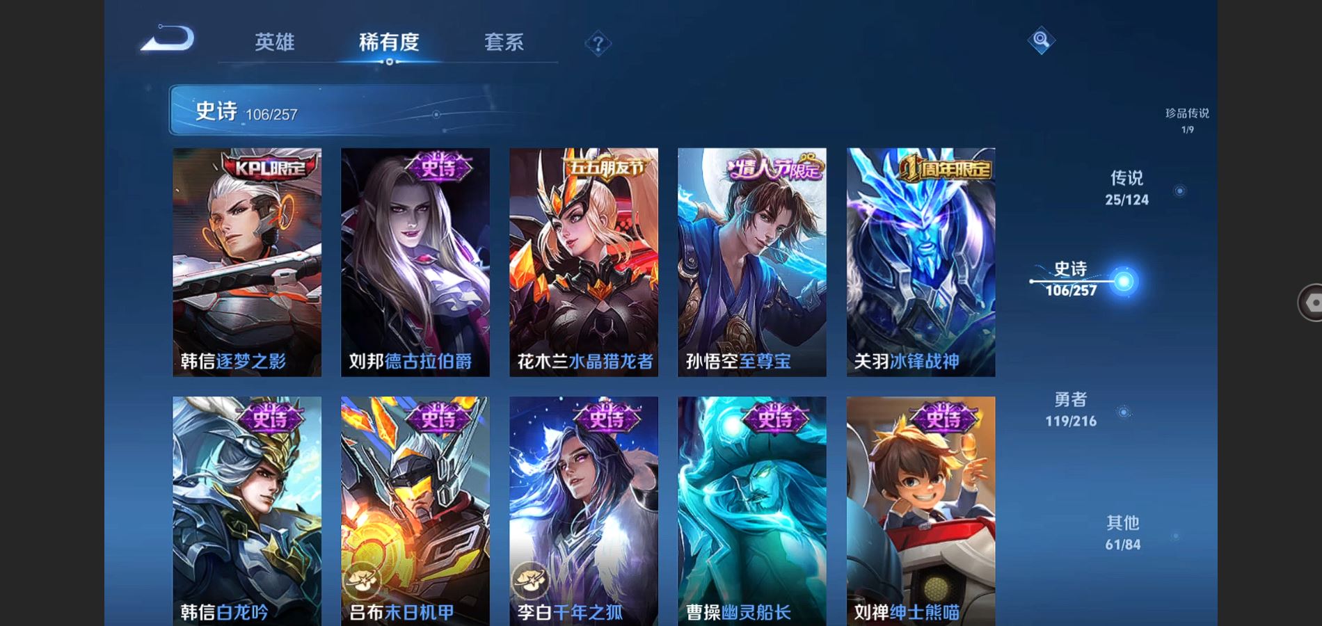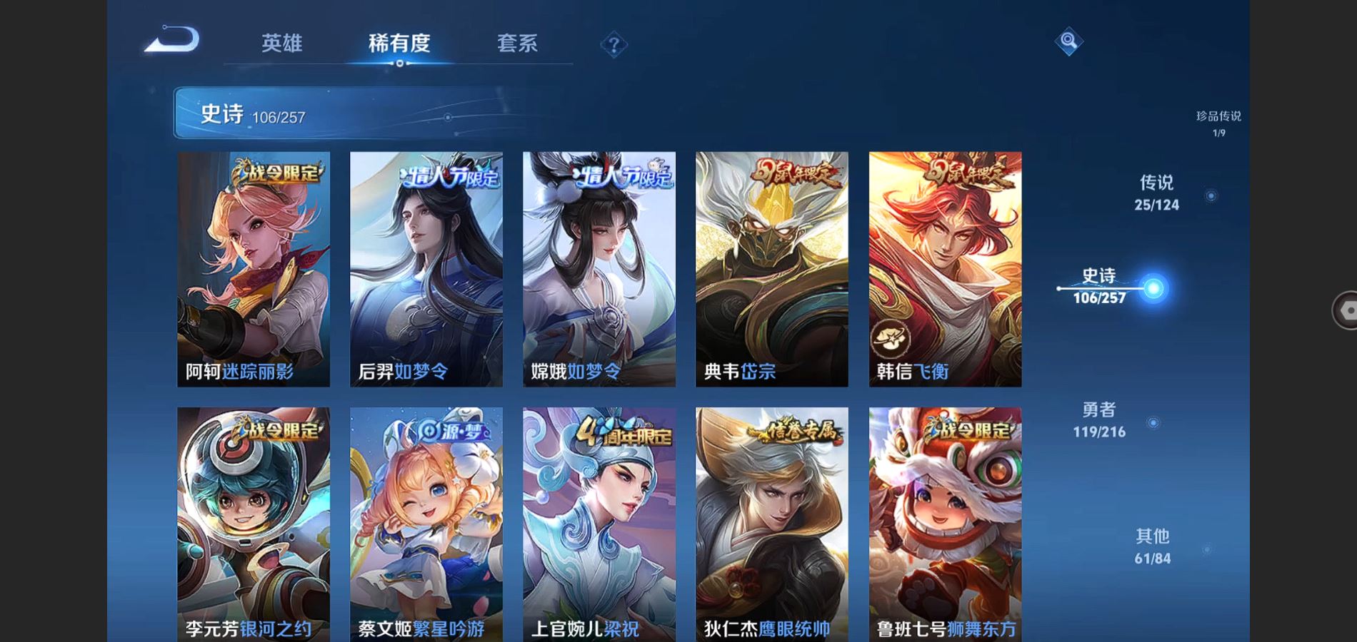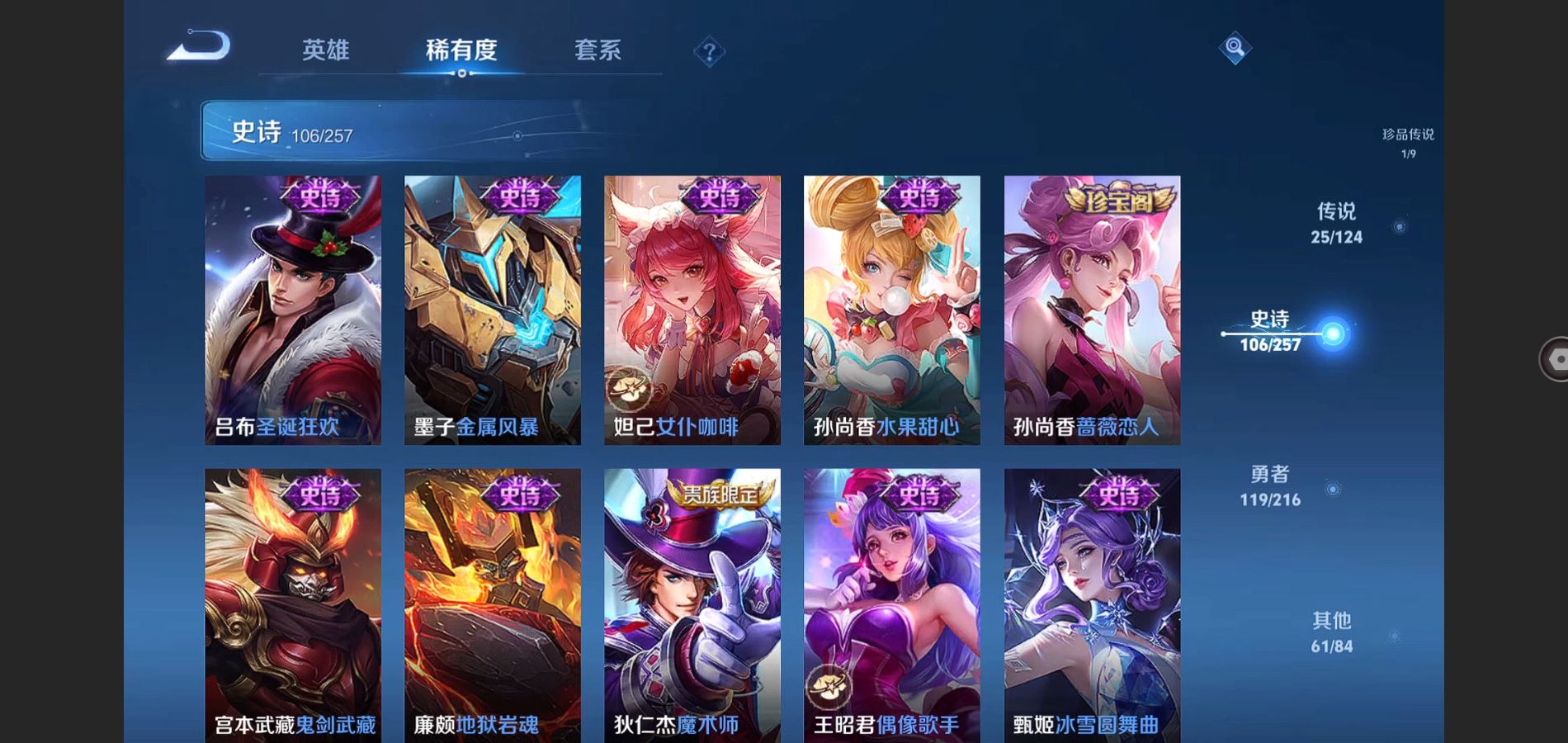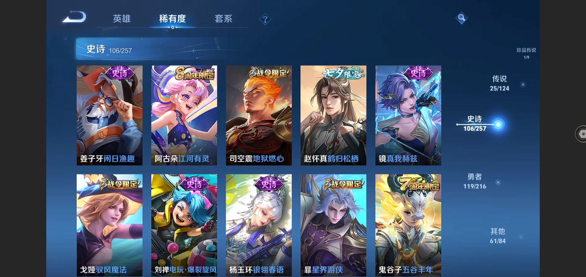 2263032-连体和平极品双字id 14王牌印记 历史卓越王牌13星 283套装 360呛皮 2载具 1神装 23粉装 16特效呛 营地:760426135 王者印记9 打野25段 2星传说 幽冥火 金色仲夏夜 313皮肤-1典藏 1珍品 25传说 1珍品 器灵落星盏1典藏已兑换 九霄神辉 战鼓燎原 马超琥珀纪元 遇见神鼓 星之鸣奏 幻光神呛 祥瑞亨通 愿照千秋盛 愿照众生和