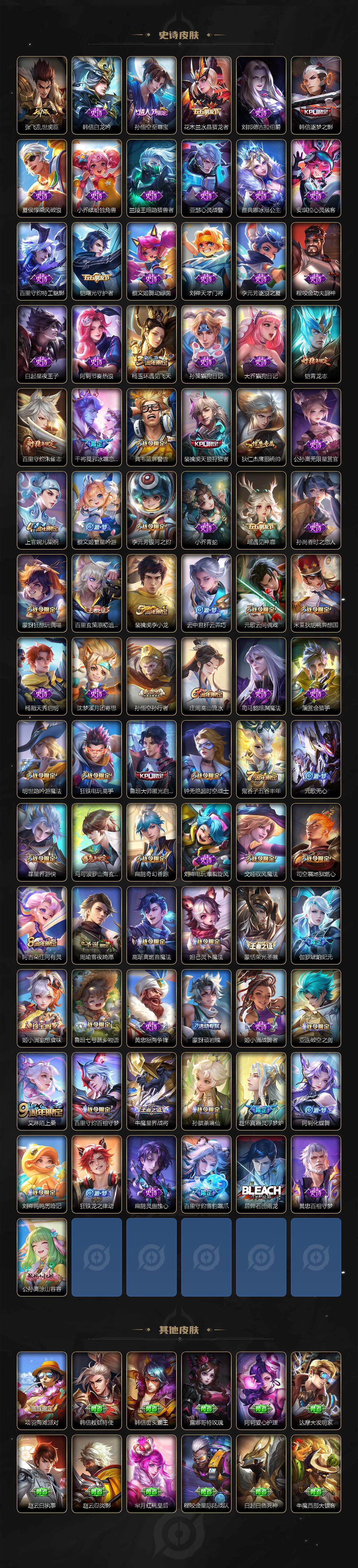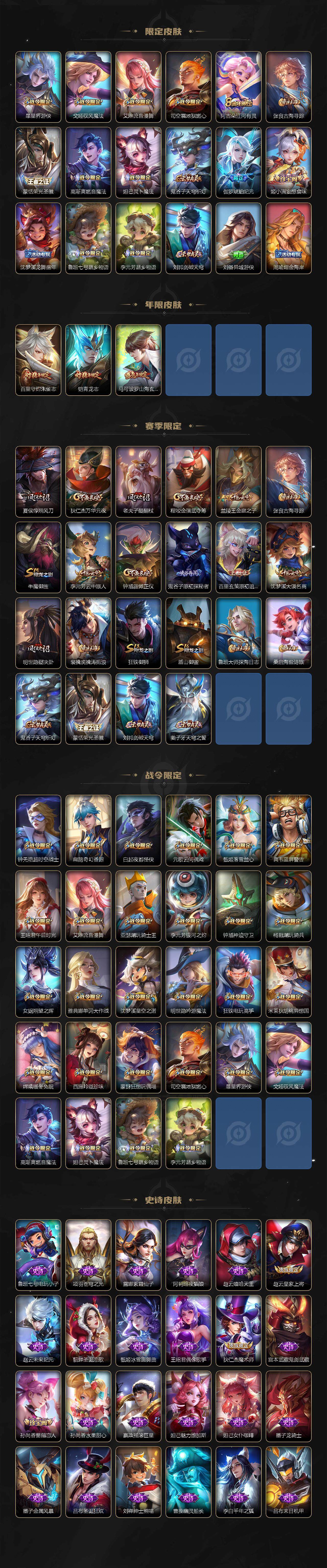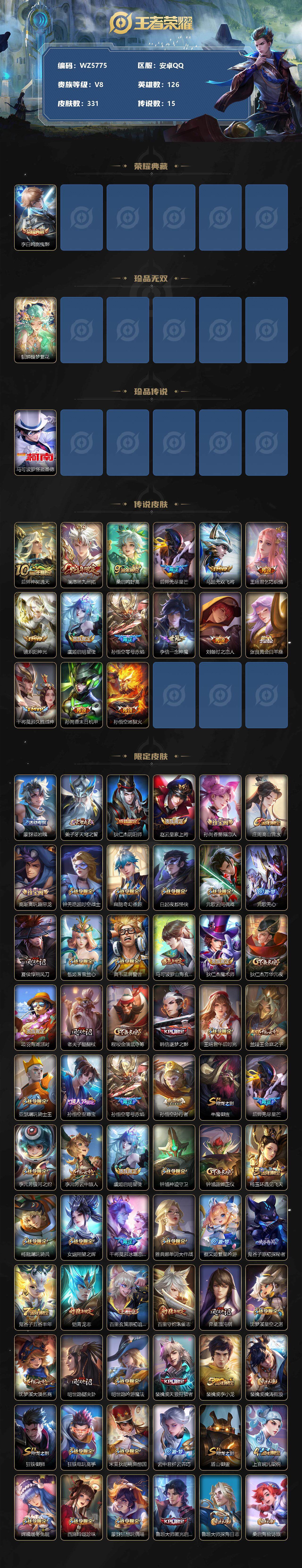 安卓q-v8-永恒钻石i段位-126英雄-331皮肤-1典藏-1珍品无双-0无双-1珍品传说-15传说-108史诗 【英雄全皮】:刘禅全皮,孙权全皮,鬼谷子全皮,狂铁全皮,蒙恬全皮,戈娅全皮,空空儿全皮 【荣耀典藏】:李白鸣剑曳影 【珍品无双】:貂蝉馥梦繁花 【珍品传说】:马可波罗怪盗基德 【传说皮肤】:后羿神树通天,澜愿照九州拓,桑启鸣野蒿,后羿无尽星芒,马超无双飞将,王昭君乞巧织情,镜炽阳神光,虞姬启明星使,孙悟空零号赤焰,李信一念神魔,刘备时之恋人,张良黄金白羊座,干将莫邪久胜战神,孙尚香末日机甲,孙悟空地狱火 【限定皮肤】:蒙犽顽岩魄,姜子牙天穹之誓,狄仁杰阴阳师,赵云皇家上将,孙尚香蔷薇恋人,庄周高山流水,高渐离玩趣恶龙,钟无艳超时空战士,扁鹊奇幻香踪,白起夜都怪侠,元歌云间偶戏,元歌无心,夏侯惇朔风刀,甄姬落雪兰心,典韦蓝屏警告,马可波罗山海玄木吟,狄仁杰魔术师,狄仁杰万华元夜,项羽海滩派对,老夫子醍醐杖,程咬金演武夺筹,韩信逐梦之影,王昭君午后时光,兰陵王金庭之子,亚瑟潮玩骑士王,孙悟空至尊宝,孙悟空零号赤焰,孙悟空孙行者,牛魔御旌,后羿无尽星芒,李元芳银河之约,李元芳云中旅人,虞姬启明星使,钟馗神迹守卫,钟馗驱傩正仪,杨玉环遇见飞天,杨戬潮玩骑兵,女娲朔望之晖,干将莫邪冰霜恋舞曲,雅典娜单词大作战,蔡文姬繁星吟游,鬼谷子原初探秘者,鬼谷子五谷丰年,铠青龙志,百里玄策原初追逐者,百里守约朱雀志,弈星混沌棋,沈梦溪星空之诺,沈梦溪大漠名商,明世隐疑决卦,明世隐吟游魔法,裴擒虎天狼狩猎者,裴擒虎李小龙,裴擒虎擒涛扼浪,狂铁御狮,狂铁电玩高手,米莱狄胡桃异想国,云中君纤云弄巧,盾山御銮,上官婉儿梁祝,嫦娥暖冬兔眠,西施玲珑珍味,蒙犽狂想玩偶喵,鲁班大师匿光启智者,鲁班大师探海日志,桑启海盐诗旅,暃星界游侠,戈娅驭风魔法,艾琳流音漫舞,司空震地狱燃心,阿古朵江河有灵,张良古海寻踪,蒙恬荣光圣徽,高渐离燃音魔法,妲己灵卜魔法,鬼谷子天穹祈灯,伽罗琥珀纪元,姬小满妄想食味,沈梦溪龙舞盛年,鲁班七号蔬乡物语,李元芳蔬乡物语,刘邦剑破天穹,刘备异域游侠,周瑜熔金海岸 【年限皮肤】:百里守约朱雀志,铠青龙志,马可波罗山海玄木吟 【赛季限定】:夏侯惇朔风刀,狄仁杰万华元夜,老夫子醍醐杖,程咬金演武夺筹,兰陵王金庭之子,张良古海寻踪,牛魔御旌,李元芳云中旅人,钟馗驱傩正仪,鬼谷子原初探秘者,百里玄策原初追逐者,弈星混沌棋,沈梦溪大漠名商,明世隐疑决卦,裴擒虎擒涛扼浪,狂铁御狮,盾山御銮,鲁班大师探海日志,桑启海盐诗旅,鬼谷子天穹祈灯,蒙恬荣光圣徽,刘邦剑破天穹,姜子牙天穹之誓 【战令限定】:钟无艳超时空战士,扁鹊奇幻香踪,白起夜都怪侠,元歌云间偶戏,甄姬落雪兰心,典韦蓝屏警告,王昭君午后时光,艾琳流音漫舞,亚瑟潮玩骑士王,李元芳银河之约,钟馗神迹守卫,杨戬潮玩骑兵,女娲朔望之晖,雅典娜单词大作战,沈梦溪星空之诺,明世隐吟游魔法,狂铁电玩高手,米莱狄胡桃异想国,嫦娥暖冬兔眠,西施玲珑珍味,蒙犽狂想玩偶喵,司空震地狱燃心,暃星界游侠,戈娅驭风魔法,高渐离燃音魔法,妲己灵卜魔法,鲁班七号蔬乡物语,李元芳蔬乡物语 【史诗皮肤】:鲁班七号电玩小子,项羽苍穹之光,露娜紫霞仙子,阿轲暗夜猫娘,赵云嘻哈天王,赵云皇家上将,赵云未来纪元,貂蝉圣诞恋歌,甄姬冰雪圆舞曲,王昭君偶像歌手,狄仁杰魔术师,宫本武藏鬼剑武藏,孙尚香蔷薇恋人,孙尚香水果甜心,嬴政摇滚巨星,妲己魅力维加斯,妲己女仆咖啡,墨子龙骑士,墨子金属风暴,吕布圣诞狂欢,刘禅绅士熊喵,曹操幽灵船长,李白千年之狐,吕布末日机甲,张飞乱世虎臣,韩信白龙吟,孙悟空至尊宝,花木兰水晶猎龙者,刘邦德古拉伯爵,韩信逐梦之影,夏侯惇乘风破浪,小乔缤纷独角兽,兰陵王暗隐猎兽者,亚瑟心灵战警,雅典娜冰冠公主,安琪拉心灵骇客,百里守约特工魅影,铠曙光守护者,蔡文姬舞动绿茵,刘禅天才门将,李元芳逐浪之夏,程咬金功夫厨神,白起星夜王子,阿轲节奏热浪,杨玉环遇见飞天,孙策猫狗日记,大乔猫狗日记,铠青龙志,百里守约朱雀志,干将莫邪冰霜恋舞曲,典韦蓝屏警告,裴擒虎天狼狩猎者,狄仁杰鹰眼统帅,公孙离无限星赏官,上官婉儿梁祝,蔡文姬繁星吟游,李元芳银河之约,小乔青蛇,瑶遇见神鹿,孙尚香时之恋人,蒙犽狂想玩偶喵,百里玄策原初追逐者,裴擒虎李小龙,云中君纤云弄巧,元歌云间偶戏,米莱狄胡桃异想国,杨戬天秀启明,沈梦溪月团寄思,孙悟空孙行者,庄周高山流水,司马懿暗渊魔法,澜赏金猎手,明世隐吟游魔法,狂铁电玩高手,鲁班大师匿光启智者,钟无艳超时空战士,鬼谷子五谷丰年,元歌无心,暃星界游侠,马可波罗山海玄木吟,扁鹊奇幻香踪,刘禅电玩爆裂旋风,戈娅驭风魔法,司空震地狱燃心,阿古朵江河有灵,周瑜雪夜绮愿,妲己灵卜魔法,高渐离燃音魔法,蒙恬荣光圣徽,伽罗琥珀纪元,姬小满妄想食味,鲁班七号蔬乡物语,黄忠怒海争锋,蒙犽顽岩魄,姬小满战舞者,亚连破空之剑,艾琳陌上桑,百里守约百相守梦,牛魔星界战将,孙膑茶境仙,赵怀真器灵浮梦炉,阿轲化蝶舞,刘禅鸭鸭历险记,狂铁龙之律动,扁鹊灵蛊蚀心,百里守约雪豹霜爪,后羿石田雨龙,黄忠百相守梦,公孙离涂山容容 【其他皮肤】:项羽海滩派对,韩信教廷特使,韩信街头霸王,露娜哥特玫瑰,阿轲爱心护理,达摩大发明家,赵云白执事,赵云忍炎影,芈月红桃