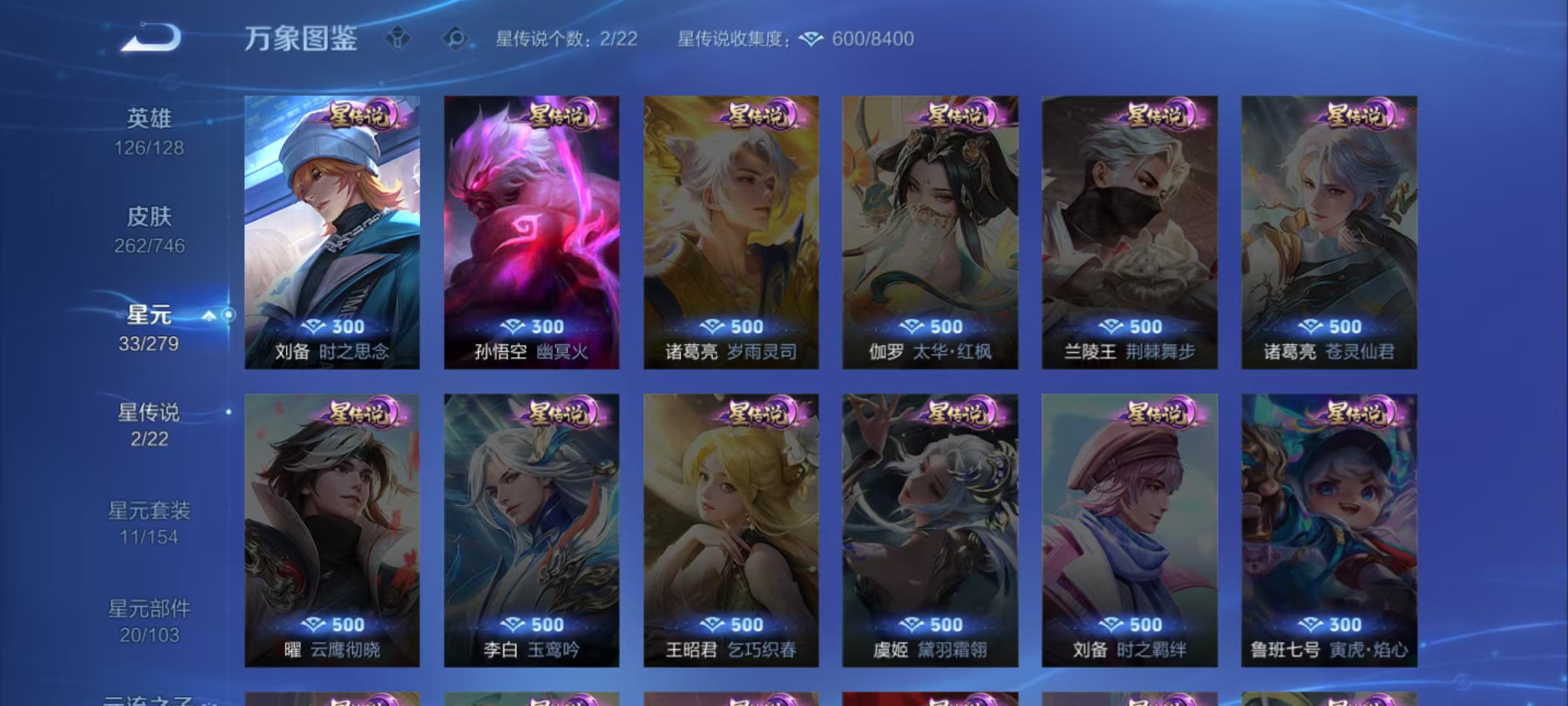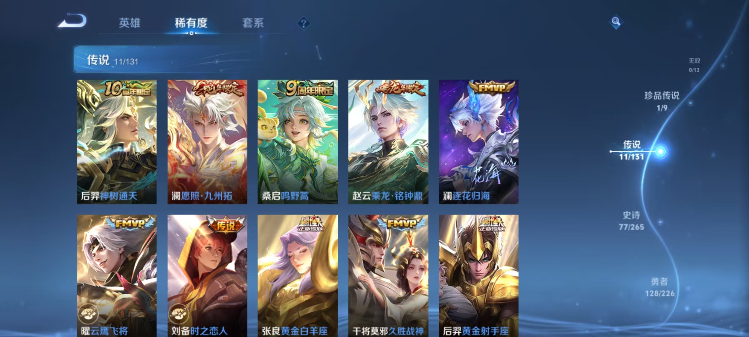 【王者荣耀】【lywz20854】珍品无双0 典藏2 无双0 珍品传说1 传说11 史诗77 英雄126 皮肤262 贵族7级 荣耀典藏:鸣剑·曳影|弑呛猎影__珍品传说:酷洛米之心__传说皮肤:鸣野蒿|地狱火|久胜战神|黄金射手座|黄金白羊座|刘备-时之恋人|云鹰飞将|逐花归海|乘龙·铭钟鼎|愿照·九州拓|神树通天__稀有限定:青龙志|岱宗|蔷薇恋人|孙行者|山海·玄木吟|拒霜思|暗影游猎|百解令|地狱燃心|高山流水|古海寻踪|海滩派对|海盐诗旅|皇家上将|剑破天穹|江河有灵|美猴王|魔术师|擒涛扼浪|青焰无极|燃音魔法|荣光圣徽|探海日志|天穹祈灯|纤云弄巧|阴阳师|银河之约|驭风魔法|原初追逐者|暗隐猎兽者|冰冠公主|冰雪圆舞曲|乘风破浪|地狱岩魂|电玩·爆裂旋风|伽罗-琥珀纪元|鬼剑武藏|黄金分割率|节奏热浪|金属风暴|李元芳-蔬乡物语|龙鼓争鸣|龙骑士|吕布-末日机甲|魅力维加斯|女仆咖啡|青蛇|赏金猎手|绅士熊喵|圣诞狂欢|圣诞恋歌|鲁班七号-蔬乡物语|水果甜心|水晶猎龙者|孙策-猫狗日记|天才门将|天秀·启明|赵云-未来纪元|雪夜绮愿|摇滚巨星|鹰眼统帅|月团寄思|逐浪之夏|紫霞仙子|百里守约-百相守梦|老夫子-百相守梦|星界特工|噬灭天穹|敬我三分|破空之剑|战舞者|东方月初|天穹之誓|浮光幕影|怒海争锋|曙光守护者|心灵战警|孙尚香-时之恋人|无限星赏官|舞动绿茵|特工魅影|茶境仙|星界战将|谧流熔炉|器灵·浮梦炉|化蝶舞|云中旅人|玲珑珍味|朔望之晖|钟馗-神迹守卫|孙悟空-神迹守卫|流音漫舞|访茗客|灵卜魔法|苍威无极|刘禅-鸭鸭历险记|沈梦溪-鸭鸭历险记|龙之律动|布丁狗之约|虚灵犬护|布丁狗之誓|逆浪荇歌|荣光之誓|万灵启世|巫礼祀神|鹤鸣心笺__优质皮肤:尼罗河女神|埃及法老|孤猎|午夜歌剧院|未来旅行|激情绿茵|天启骑士|碧珀绯影|冰刃幻境|森|维京掠夺者|踏雪寻梅|启蛰|伊势巫女|生化警戒|威尼斯狂欢|第七人偶|潮流仙人|芝加哥教父|街头旋风|绝影神呛|幸存者|赤焰之缨|福禄兄弟|隐刃|前尘|精灵王|龙域领主|花间舞|魇语军师|花见巫女|东海龙王|灼热之刃|精准探案法|帝国元帅|战争女神|加勒比小姐|阿摩司公爵|异域舞娘|精灵公主|万圣前夜|动物派对|长夏之忆|破阵·退雄兵|异域游侠|暗都幽影|功夫炙烤|暖冬絮语|幻夜行动|聚星闪耀|潮玩探月行|秘密基地|次元突破|鲨炮海盗猫|野性能量|丁香结|虹云星官|守护之力|坚韧之力|幻乐之宴|功夫老勺|命运角斗场|海滩丽影|阿尔法小队|兔女郎|死亡骑士|黄金武士|少女阿狸|天使之翼|玩偶对对碰|宫本武藏-未来纪元|红桃皇后|忍·炎影|爱心护理|街头霸王|教廷特使|鸿运当头|金色潮汐|漠中幻影|时空谍影|决胜大满贯|零食大作战|西部游侠|太极少年|潮玩造梦师|契约魔法|黑桃队长|拳王|时尚教父|白色死神|程咬金-星际陆战队|白执事|哥特玫瑰|魅影绮裳|西施-雪境奇遇|金福满堂|星梦巡礼|灵卦秘语|爆裂喵拳|景韶洛都|浪漫序章|缤纷绘卷|掌控之力|雾都夜雨|逐霄战戟|铁骨偃魂|纽约教父|龙腾万里|乱世虎臣|经纬探寻者|敏锐之力|孙悟空-西部大镖客|牛魔-西部大镖客|热血海滩|龙舞盛年|汉昭烈帝|五福同心|盾山-圆桌骑士|万事如意|曜-归虚梦演|唤灵魔甲|程咬金-群星魔术团|完美运算|化身博士|花好人间|熔金海岸|春野之旅|万象初新|苍林狼骑|蔚蓝守将|劲辣红锅|特工战影|炽热元素使|妄想特派|秘证寻踪|春野闲踪|灵野札记|玫蓝誓约|潮玩士官长|无双福将|哪吒-罗小黑战记|径山谋武__贵族等级:贵族7级__王者段位:非凡王者