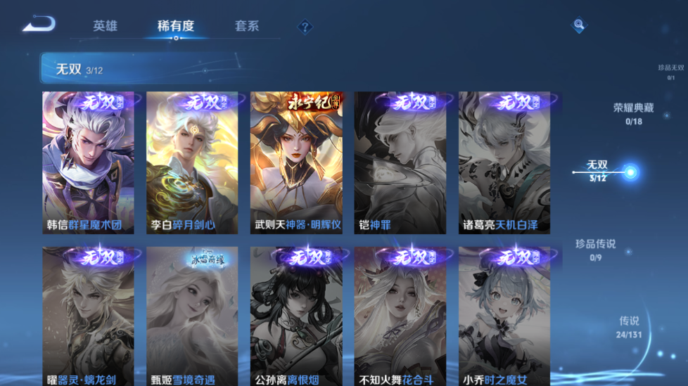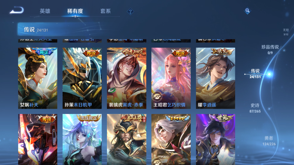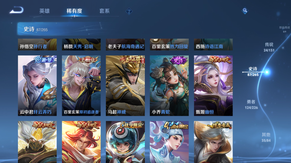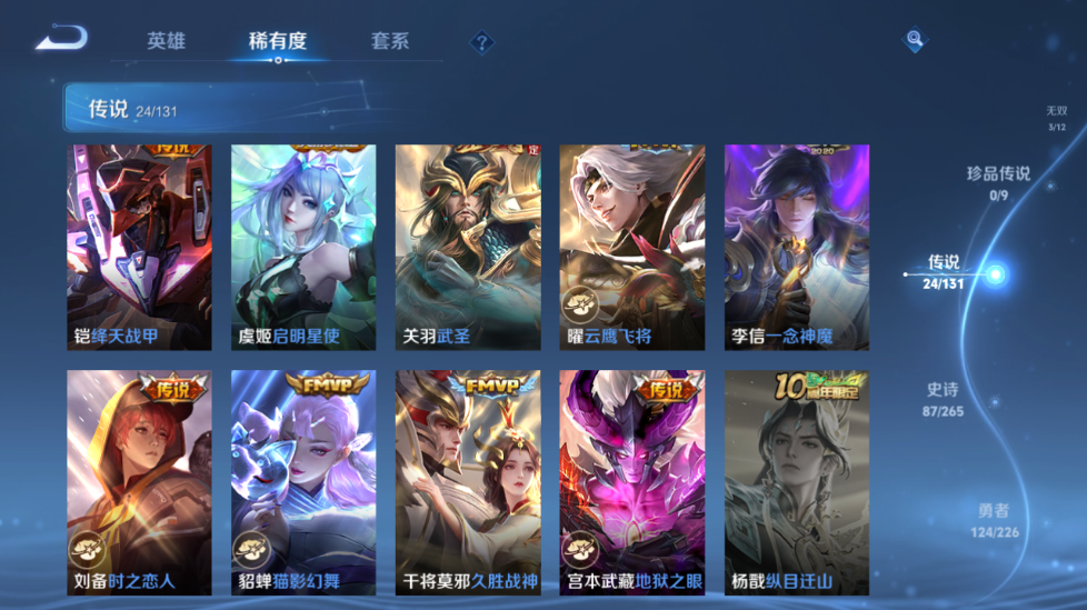 【王者荣耀】【lywz20952】珍品无双0 典藏0 无双3 珍品传说0 传说24 史诗87 英雄127 皮肤273 贵族8级 荣耀典藏:武则天__无双皮肤:群星魔术团|碎月剑心|神器·明辉仪__传说皮肤:鸣野蒿|枫霜尽|补天|绛天战甲|启明星使|地狱之眼|孙策-末日机甲|久胜战神|猫影幻舞|刘备-时之恋人|一念神魔|云鹰飞将|李|乞巧织情|齐天大圣|惊梅引|马超-琥珀纪元|怒海麟威|燃星之曲|武圣|山海·苍雷引|山海·炽霜斩|寅虎·赤拳|千山共赴__稀有限定:至尊宝|瑞麟志|青龙志|岱宗|幽恒|飞衡|神威|孙行者|梁祝|山海·玄木吟|拒霜思|百解令|大漠名商|地狱燃心|电玩高手|古海寻踪|海滩派对|海盐诗旅|航海奇遇记|胡桃夹子|皇家上将|剑破天穹|江河有灵|金庭之子|黎明之约|梦圆繁星|魔术师|奇幻香踪|擒涛扼浪|青焰无极|燃音魔法|荣光圣徽|死亡摇滚|探海日志|天穹祈灯|无心|五谷丰年|午后时光|纤云弄巧|星界游侠|阴阳师|银河之约|驭风魔法|遇见飞天|原初追逐者|暗夜猫娘|暗隐猎兽者|白龙吟|缤纷独角兽|冰冠公主|冰雪圆舞曲|苍穹之光|乘风破浪|大乔-猫狗日记|电玩·爆裂旋风|伽罗-琥珀纪元|功夫厨神|鬼剑武藏|黄金分割率|节奏热浪|金属风暴|李元芳-蔬乡物语|龙骑士|吕布-末日机甲|魅力维加斯|女仆咖啡|偶像歌手|青蛇|热力回旋|赏金猎手|绅士熊喵|圣诞狂欢|诗语江南|鲁班七号-蔬乡物语|水果甜心|水晶猎龙者|滕王阁序|天才门将|天秀·启明|赵云-未来纪元|星夜王子|摇滚巨星|鹰眼统帅|幽灵船长|钟无艳-超时空战士|逐浪之夏|紫霞仙子|噬灭天穹|敬我三分|破空之剑|天穹之誓|海诺-心动手记|曙光守护者|心灵战警|千年之狐|关羽-百相守梦|特工魅影|心灵骇客|谧流熔炉|万物之道|化蝶舞|云中旅人|玲珑珍味|孙悟空-神迹守卫|流音漫舞|暖冬·兔眠|灵卜魔法|苍威无极|落雪兰心|刘禅-鸭鸭历险记|沈梦溪-鸭鸭历险记|藏狐·褐绒|龙之律动|布丁狗之约|虚灵犬护|逆浪荇歌|荣光之誓|鹤鸣心笺__优质皮肤:创世神祝|孤猎|午夜歌剧院|露花倒影|激情绿茵|海之征途|碧珀绯影|秩序猎龙将|超能战警|英喵野望|维京掠夺者|启蛰|画中游|生化警戒|潮流仙人|街头旋风|绝影神呛|荷鲁斯之眼|幸存者|赤焰之缨|前尘|特种部队|范海辛|星航指挥官|龙域领主|极冰防御线|棒球奇才|灼热之刃|圣殿之光|帝国元帅|霓裳曲|阿摩司公爵|破阵·退雄兵|暗都幽影|功夫炙烤|幻夜行动|聚星闪耀|潮玩探月行|秘密基地|次元突破|鲨炮海盗猫|野性能量|丁香结|守护之力|坚韧之力|幻乐之宴|功夫老勺|命运角斗场|海滩丽影|阿尔法小队|兔女郎|死亡骑士|黄金武士|天使之翼|玩偶对对碰|宫本武藏-未来纪元|忍·炎影|爱心护理|街头霸王|教廷特使|鸿运当头|金色潮汐|漠中幻影|时空谍影|决胜大满贯|破局者|王牌新星|零食大作战|西部游侠|太极少年|乐园追猎者|牛运亨通|幻泉雾影|潮玩造梦师|危途狂花|契约魔法|重装意志|拳王|时尚教父|白色死神|程咬金-星际陆战队|白执事|大发明家|西施-雪境奇遇|星梦巡礼|景韶洛都|浪漫序章|缤纷绘卷|掌控之力|纽约教父|龙腾万里|乱世虎臣|经纬探寻者|敏锐之力|牛魔-西部大镖客|龙舞盛年|汉昭烈帝|乓乓大师|五福同心|盾山-圆桌骑士|蒙犽-归虚梦演|万事如意|曜-归虚梦演|唤灵魔甲|沉稳之力|程咬金-群星魔术团|化身博士|花好人间|熔金海岸|万象初新|潮玩骑兵|蔚蓝守将|劲辣红锅|特工战影|炽热元素使|妄想特派|秘证寻踪|春野闲踪|灵野札记|玫蓝誓约|命运加冕|潮玩士官长|小满鸭|死霸装|无双福将|锦麟游梦|踏浪烽翎__贵族等级:贵族8级__王者段位:非凡王者碎月剑心,群星魔术团,神器·明辉仪,琥珀纪元,千山共赴,末日机甲,乞巧织情,李 ,寅虎·赤拳,武圣,至尊宝等热门皮肤