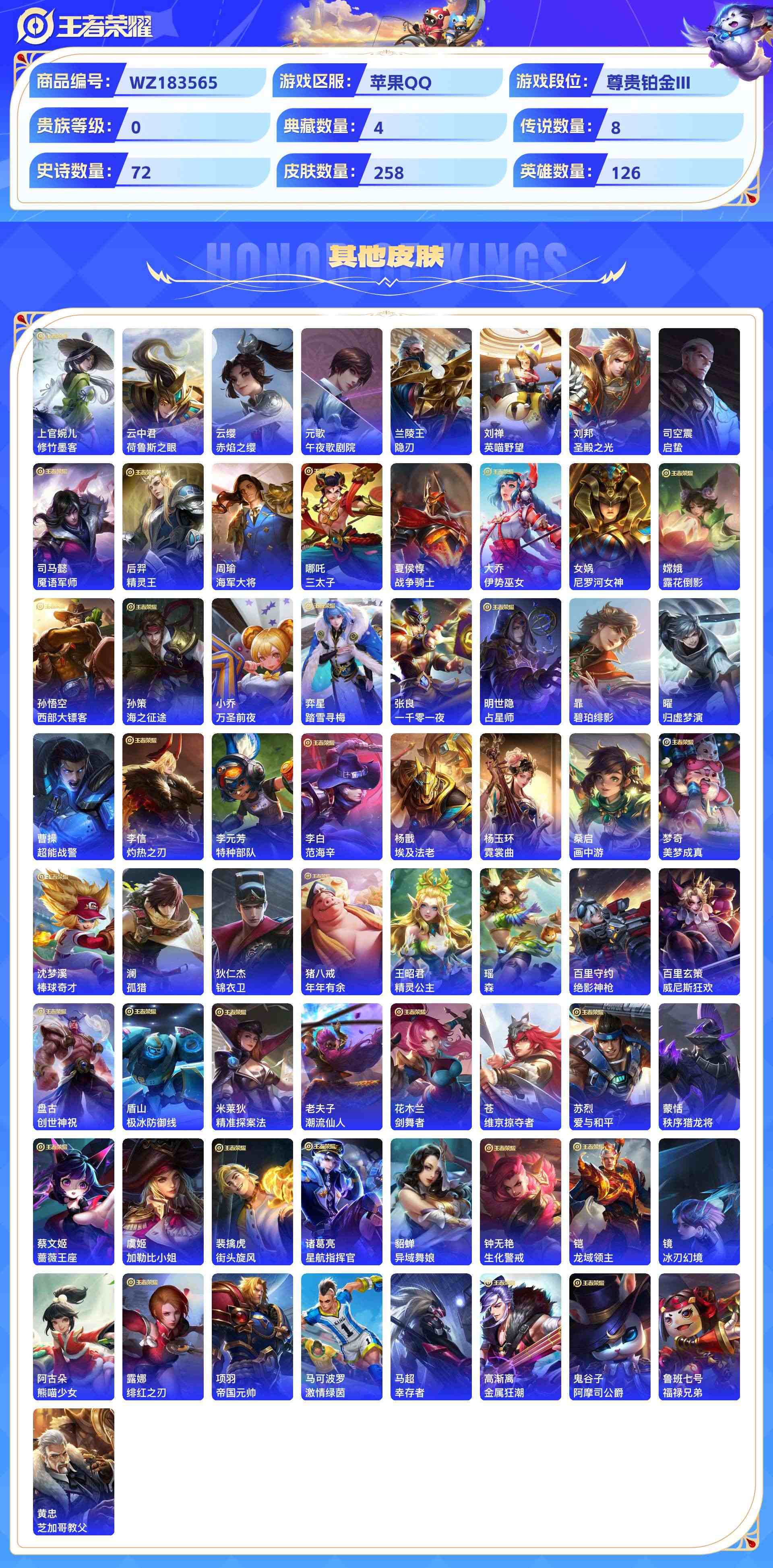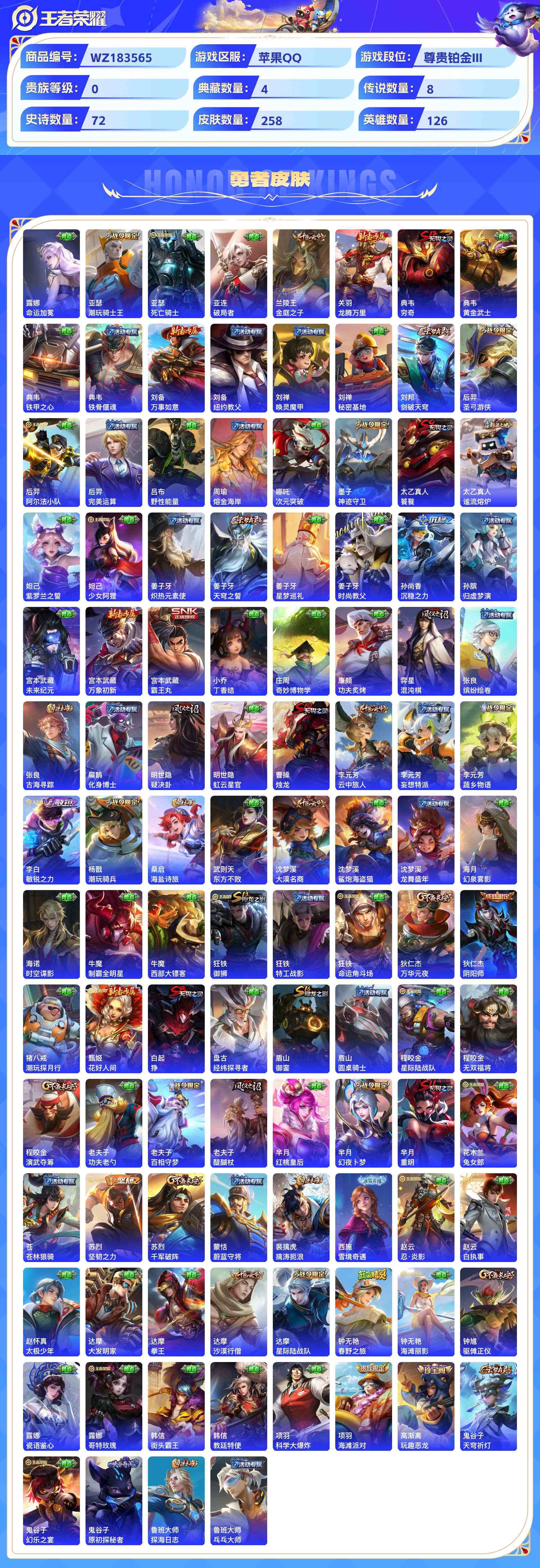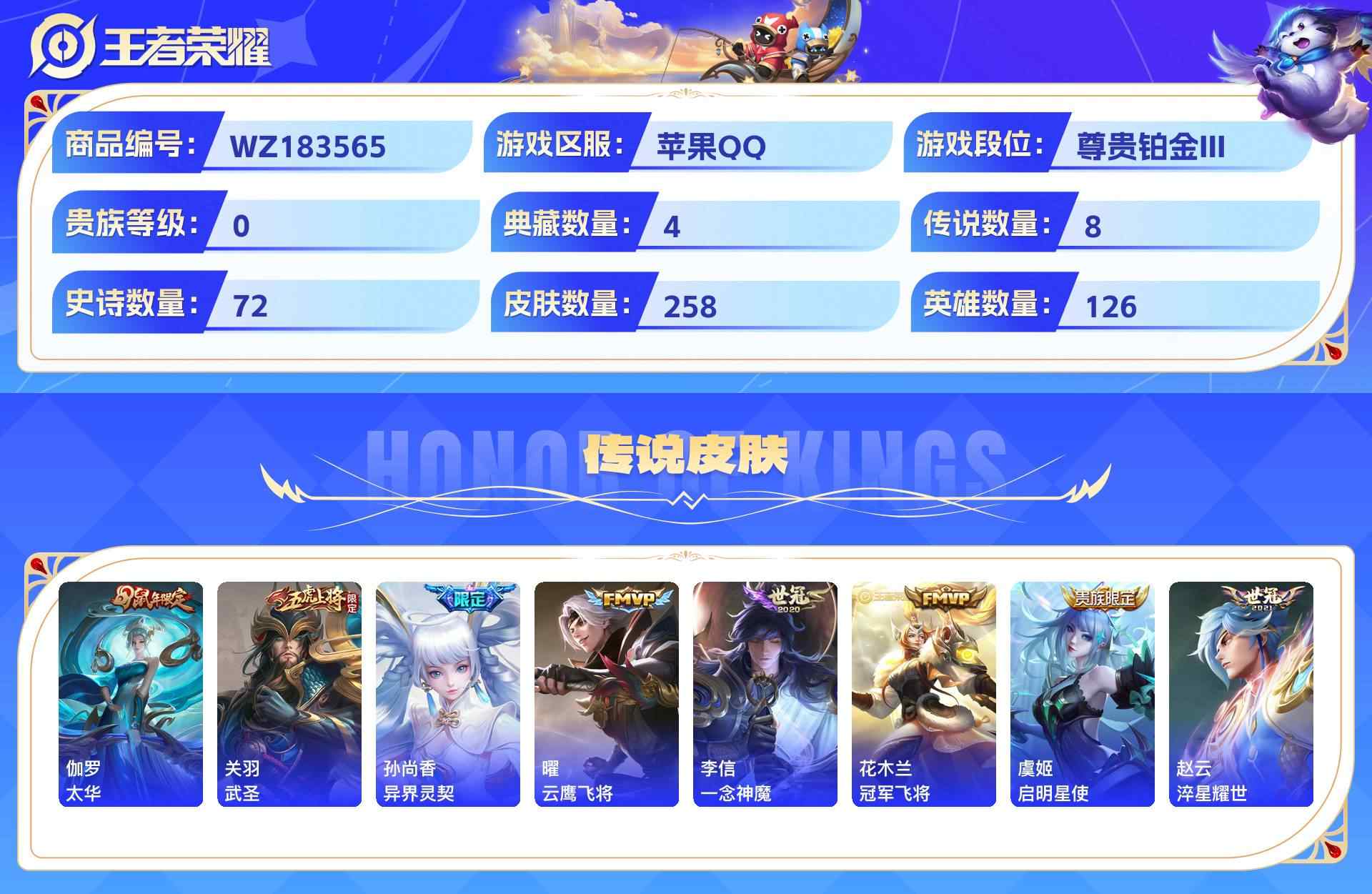 wz183565|精品国标万战号小国标万战(黄忠)【荣耀典藏】全息碎影鸣剑·曳影活力突击星空梦想【无双限定】群星魔术团【传说皮肤】太华武圣异界灵契云鹰飞将一念神魔冠军飞将启明星使淬星耀世苹果qq 贵族8 258皮 4典藏 1无双 8传说 72史诗3个性按键
