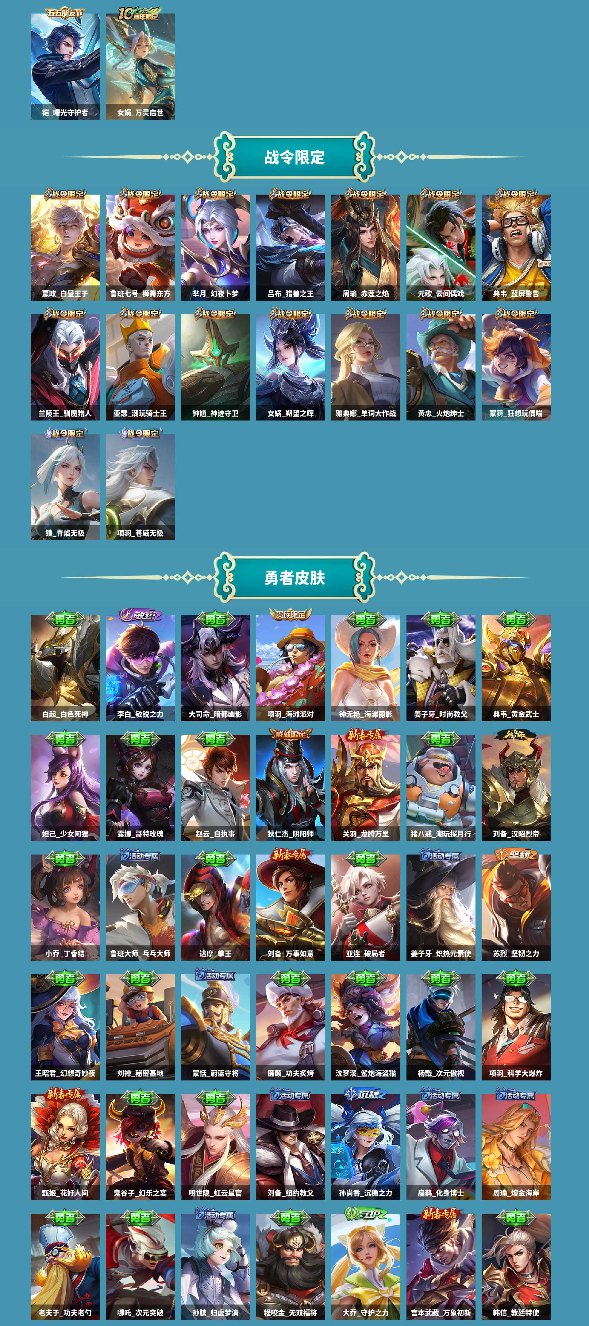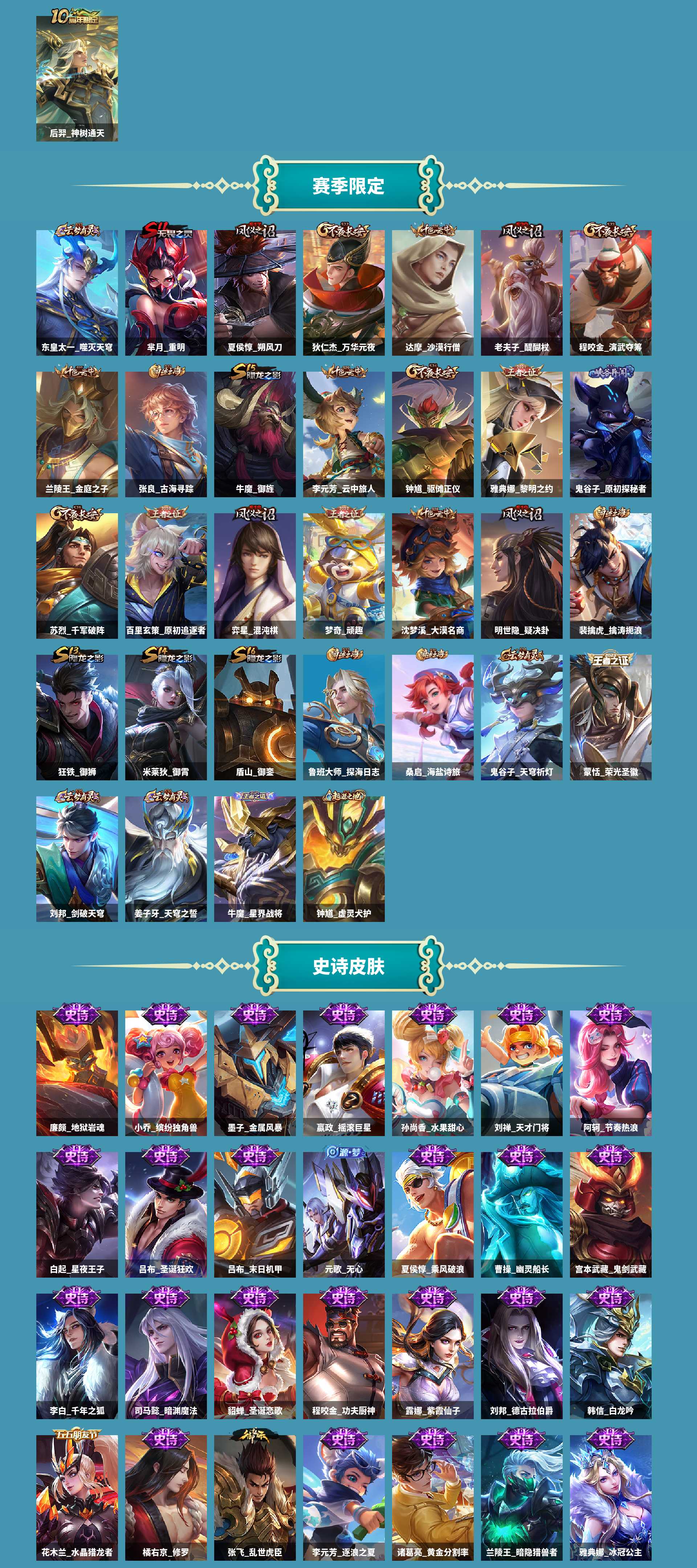 al632217 【特价13传说传说皮肤:后裔神树通天,桑启鸣野蒿,公孙离祈雪灵祝,镜炽阳神光,李白诗剑行,马超无双飞将,曜云鹰飞将,后羿黄金射手座,诸葛亮时雨天司,干将莫邪久胜战神,孙悟空零号赤焰,孙尚香末日机甲,铠曙光守护者】 皮肤数204 皮肤价值130388 无双皮肤数0 传说皮肤数12 珍品传说皮数0 史诗皮肤数60 英雄数126 营地id440500259 贵族等级【文本】贵族7级 【贵族7级】 【可排位】 【是】 内测皮肤2 年限皮肤5 限定皮肤73 赛季限定34 史诗皮肤60 战令限定16 勇者皮肤93 其他皮肤39 内测皮肤:姬小满妄想食味,高渐离玩趣恶龙; 年限皮肤:公孙离祈雪灵祝,吕布御风骁将,花木兰瑞麟志,诸葛亮时雨天司,韩信飞衡; 限定皮肤:牛魔星界战将,钟馗虚灵犬护,桑启鸣野蒿,东皇太一噬灭天穹,姜子牙天穹之誓,项羽苍威无极,镜青焰无极,刘邦剑破天穹,蒙恬荣光圣徽,姬小满妄想食味,鬼谷子天穹祈灯,公孙离祈雪灵祝,张良古海寻踪,吕布御风骁将,鲁班大师探海日志,裴擒虎擒涛扼浪,桑启海盐诗旅,梦奇顽趣,元歌无心,鬼谷子五谷丰年,李元芳云中旅人,花木兰瑞麟志,沈梦溪大漠名商,雅典娜黎明之约,兰陵王金庭之子,黄忠火炮绅士,芈月幻夜卜梦,百里玄策原初追逐者,达摩沙漠行僧,韩信傲雪梅呛,苏烈千军破阵,钟馗驱傩正仪,关羽冰锋战神,程咬金演武夺筹,元歌云间偶戏,花木兰默契交锋,诸葛亮时雨天司,亚瑟潮玩骑士王,孙悟空零号赤焰,狄仁杰万华元夜,云中君纤云弄巧,雅典娜单词大作战,蒙犽狂想玩偶喵,裴擒虎李小龙,鬼谷子原初探秘者,老夫子醍醐杖,上官婉儿天狼绘梦者,孙悟空至尊宝,明世隐疑决卦,韩信飞衡,弈星混沌棋,兰陵王驯魔猎人,周瑜赤莲之焰,上官婉儿梁祝,夏侯惇朔风刀,鲁班七号狮舞东方,钟馗神迹守卫,盾山御銮,狄仁杰鹰眼统帅,狄仁杰魔术师,典韦蓝屏警告,女娲朔望之晖,牛魔御旌,嬴政白昼王子,赵云皇家上将,狄仁杰阴阳师,吕布猎兽之王,孙悟空大圣娶亲,米莱狄御霄,项羽海滩派对,狂铁御狮,芈月重明,高渐离玩趣恶龙; 赛季限定:亚瑟荣光之誓,牛魔星界战将,甄姬逆浪荇歌,钟馗虚灵犬护,东皇太一噬灭天穹,姜子牙天穹之誓,刘邦剑破天穹,蒙恬荣光圣徽,鬼谷子天穹祈灯,张良古海寻踪,鲁班大师探海日志,裴擒虎擒涛扼浪,桑启海盐诗旅,梦奇顽趣,李元芳云中旅人,沈梦溪大漠名商,雅典娜黎明之约,兰陵王金庭之子,百里玄策原初追逐者,达摩沙漠行僧,苏烈千军破阵,钟馗驱傩正仪,程咬金演武夺筹,狄仁杰万华元夜,鬼谷子原初探秘者,老夫子醍醐杖,明世隐疑决卦,弈星混沌棋,夏侯惇朔风刀,盾山御銮,牛魔御旌,米莱狄御霄,狂铁御狮,芈月重明; 史诗皮肤:廉颇地狱岩魂,女娲万灵启世,牛魔星界战将,貂蝉圣诞恋歌,程咬金功夫厨神,镜青焰无极,蒙恬荣光圣徽,姬小满妄想食味,吕布御风骁将,小乔缤纷独角兽,吕布末日机甲,花木兰水晶猎龙者,梦奇顽趣,元歌无心,雅典娜冰冠公主,鬼谷子五谷丰年,花木兰瑞麟志,雅典娜黎明之约,宫本武藏鬼剑武藏,夏侯惇乘风破浪,黄忠火炮绅士,百里玄策原初追逐者,嬴政摇滚巨星,韩信傲雪梅呛,司马懿暗渊魔法,兰陵王暗隐猎兽者,关羽冰锋战神,元歌云间偶戏,吕布圣诞狂欢,花木兰默契交锋,张飞乱世虎臣,刘邦德古拉伯爵,云中君纤云弄巧,蒙犽狂想玩偶喵,刘禅天才门将,裴擒虎李小龙,上官婉儿天狼绘梦者,橘右京修罗,墨子金属风暴,孙悟空至尊宝,阿轲节奏热浪,韩信飞衡,白起星夜王子,兰陵王驯魔猎人,上官婉儿梁祝,李元芳逐浪之夏,鲁班七号狮舞东方,孙尚香水果甜心,狄仁杰鹰眼统帅,露娜紫霞仙子,狄仁杰魔术