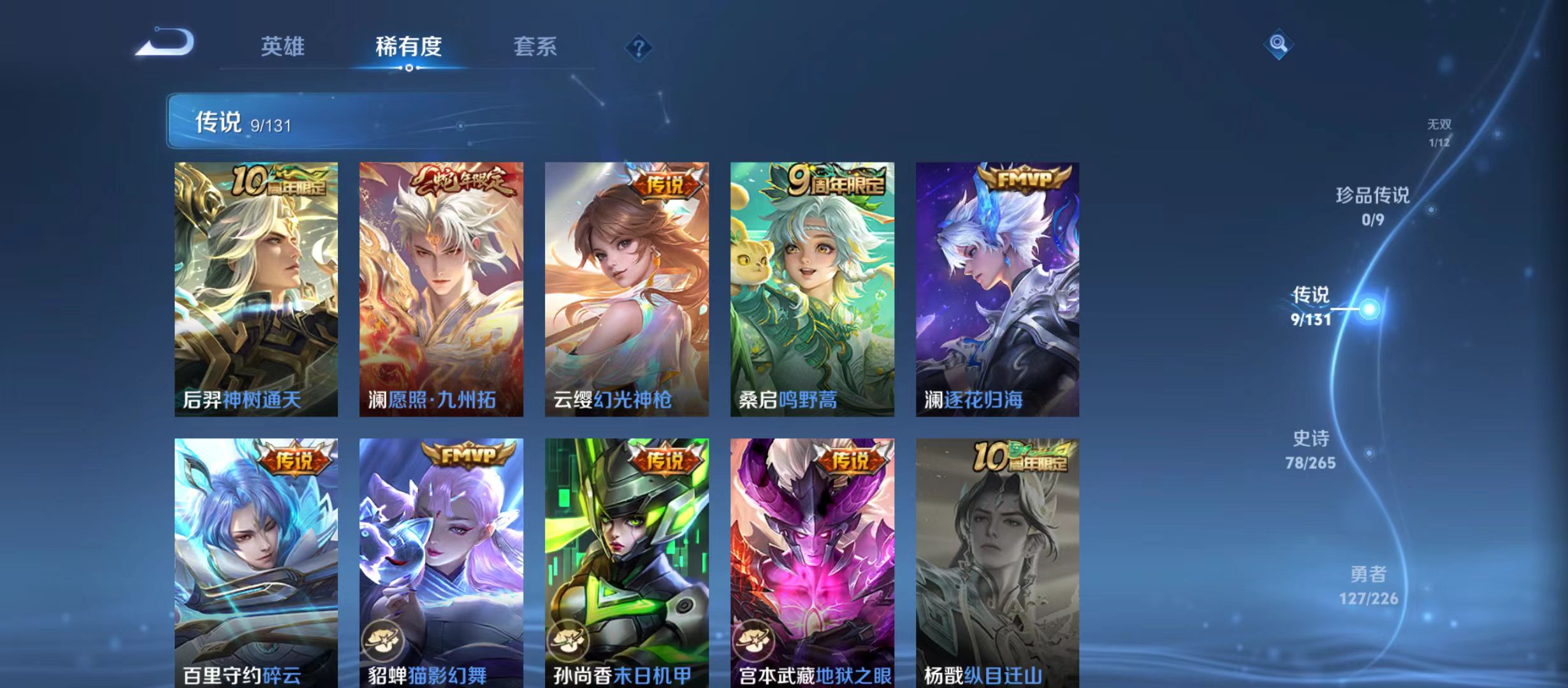 v7-260皮肤 1无双碎月剑心 9传说神树通天,地狱之眼,愿照·九州拓,幻光神呛,鸣野蒿,逐花归海,碎云,猫影幻舞,末日机甲 78史诗