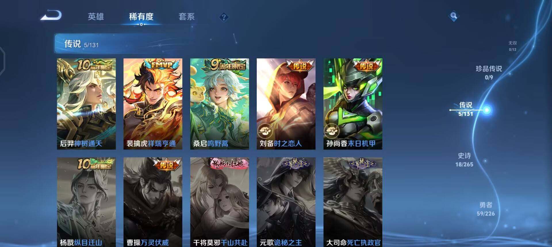 w10929 可立即换绑无需挂单养号 铭文满级 传说5 按键4 夺宝139 安卓q-v5-至尊星耀ii段位-117英雄-105皮肤-0典藏-0珍品无双-0无双-0珍品传说-5传说-18史诗 【英雄全皮】:孙权全皮 【传说皮肤】:后羿神树通天,裴擒虎祥瑞亨通,桑启鸣野蒿,刘备时之恋人,孙尚香末日机甲 【限定皮肤】:姜子牙天穹之誓,赵云皇家上将,孙尚香蔷薇恋人,元歌无心,狄仁杰万华元