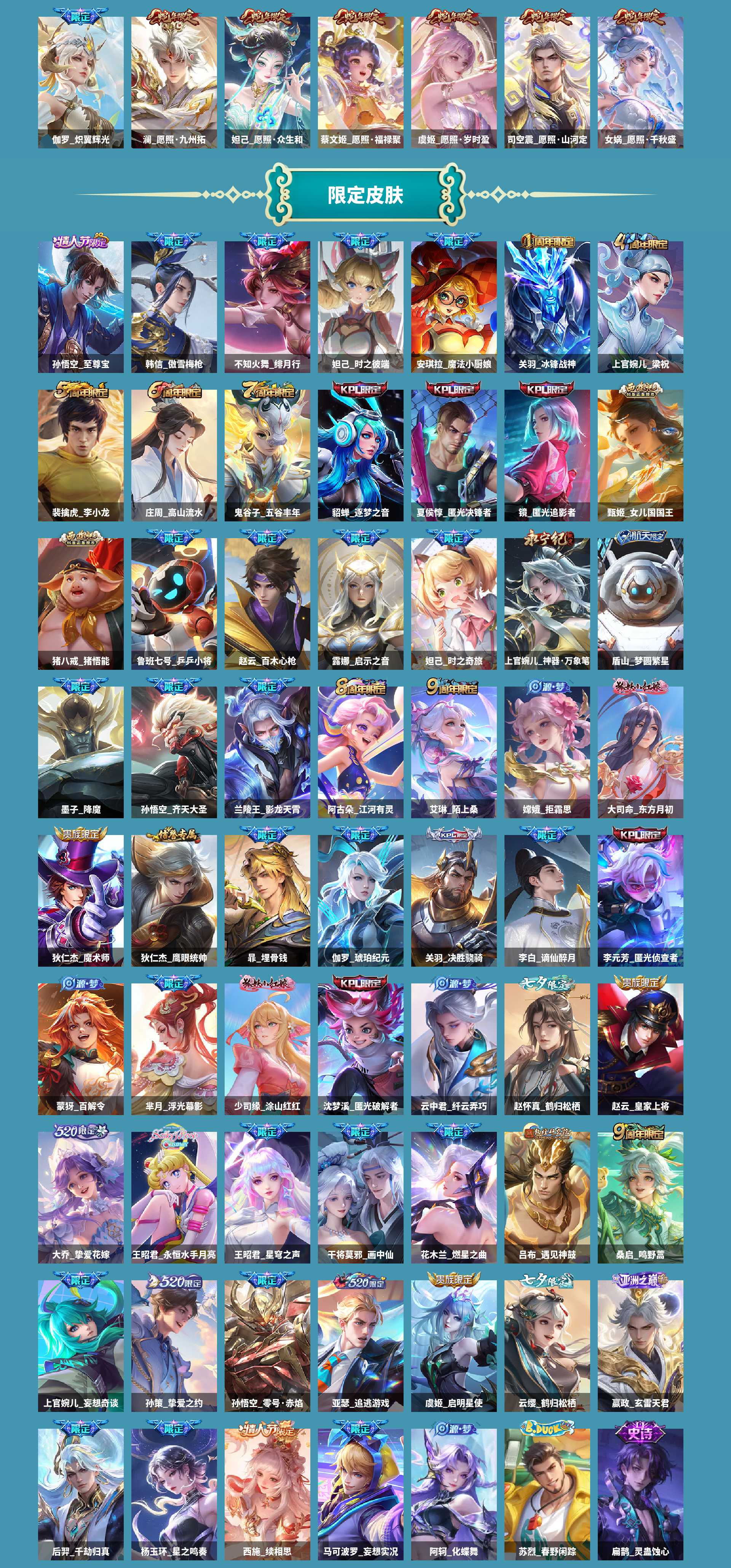 al632673 【v11无双贵族-西施差1全皮-蛇年限定全皮-七夕限定全套-530皮3水1无双6珍品66传说-铠银白咏叹调,瑶拾光映像,诸葛亮星域神启-曜器灵螭龙剑-瑶大耳狗之梦,安琪拉酷洛米之心,张飞兔狲蓬尾,嫦娥器灵落星盏,孙策时之奇旅,马可波罗怪盗基德-百里全皮,沈梦溪全皮】 皮肤数510 皮肤价值458292 无双皮肤数1 传说皮肤数66 珍品传说皮数6 史诗皮肤数177 英雄数128 营地id1810704684 贵族等级【文本】无双贵族 【无双贵族】 荣耀典藏3 无双皮肤1 珍品传说6 内测皮肤3 年限皮肤21 限定皮肤183 赛季限定26 史诗皮肤175 战令限定45 勇者皮肤174 其他皮肤79 荣耀典藏:铠银白咏叹调,瑶拾光映像,诸葛亮星域神启; 无双皮肤:曜器灵螭龙剑; 珍品传说:瑶大耳狗之梦,安琪拉酷洛米之心,张飞兔狲蓬尾,嫦娥器灵落星盏,孙策时之奇旅,马可波罗怪盗基德; 内测皮肤:姬小满妄想食味,干将莫邪胡桃夹子,嬴政优雅恋人; 年限皮肤:马超神威,澜愿照九州拓,蔡文姬愿照福禄聚,虞姬愿照岁时盈,司空震愿照山河定,女娲愿照千秋盛,妲己愿照众生和,黄忠烈魂,张飞虎魄,铠青龙志,花木兰瑞麟志,关羽武圣,苏烈玄武志,李信山海炽霜斩,伽罗炽翼辉光,典韦岱宗,裴擒虎寅虎赤拳,廉颇寅虎御盾,鲁班七号寅虎瑞焰,伽罗太华,百里守约朱雀志; 限定皮肤:百里玄策罗小黑战记,米莱狄胡桃异想国,盾山梦圆繁星,少司缘巫礼祀神,姬小满妄想食味,张良罗小黑战记,西施织梦人,亚瑟潮玩骑士王,鬼谷子克喵,弈星守夜人,云缨赞萌露比,牛魔星界战将,白起死霸装,后羿石田雨龙,姬小满小满鸭,沈梦溪匿光破解者,牛魔小牛鸭,上官婉儿神器万象笔,瑶大耳狗之梦,安琪拉酷洛米之心,亚瑟布丁狗之誓,雅典娜单词大作战,扁鹊灵蛊蚀心,鲁班七号蔬乡物语,老夫子_藏狐·褐绒,百里守约雪豹霜爪,张飞兔狲蓬尾,狂铁龙之律动,苏烈春野闲踪,李元芳蔬乡物语,钟馗虚灵犬护,太乙真人华丽摇滚,阿轲化蝶舞,西施续相思,貂蝉逐梦之音,后裔千劫归真,马超神威,关羽冰锋战神,马可波罗暗影游猎,曹操夜都魔契,杨玉环星之鸣奏,高渐离燃音魔法,澜愿照九州拓,蔡文姬愿照福禄聚,虞姬愿照岁时盈,嫦娥器灵落星盏,赵怀真器灵浮梦炉,司空震愿照山河定,女娲愿照千秋盛,妲己愿照众生和,墨子降魔,黄忠烈魂,孙策时之奇旅,妲己灵卜魔法,嬴政玄雷天君,马超访茗客,孙膑茶境仙,雅典娜黎明之约,太乙真人谧流熔炉,马可波罗怪盗基德,百里守约百相守梦,吕布逐霄战戟,桑启鸣野蒿,老夫子百相守梦,上官婉儿梁祝,艾琳陌上桑,沈梦溪龙舞盛年,妲己时之彼端,李白谪仙醉月,东皇太一噬灭天穹,沈梦溪星空之诺,亚连破空之剑,盘古敬我三分,孙悟空神迹守卫,大司命东方月初,少司缘涂山红红,蔡文姬夏日便利店,暃埋骨钱,姜子牙天穹之誓,关羽决胜骁骑,虞姬夏日便利店,张飞虎魄,安琪拉魔法小厨娘,蒙恬荣光圣徽,芈月浮光幕影,铠青龙志,艾琳觅芳踪,花木兰瑞麟志,镜青焰无极,项羽苍威无极,干将莫邪胡桃夹子,刘邦剑破天穹,伽罗琥珀纪元,鬼谷子天穹祈灯,蒙犽百解令,王昭君永恒水手月亮,司空震地狱燃心,阿古朵江河有灵,兰陵王影龙天霄,吕布遇见神鼓,艾琳流音漫舞,关羽武圣,鲁班七号乒乒小将,张良古海寻踪,梦奇顽趣,李元芳匿光侦查者,上官婉儿妄想奇谈,云缨鹤归松栖,赵怀真鹤归松栖,戈娅驭风魔法,马可波罗妄想实况,鲁班大师探海日志,西施玲珑珍味,关羽百相守梦,刘备百相守梦,亚瑟追逃游戏,扁鹊奇幻香踪,苏烈玄武志,孙悟空至尊宝,裴擒虎擒涛扼浪,杨戬潮玩骑兵,干将莫邪画中仙,李信山海