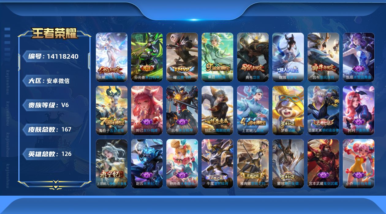 [14118240]可二次 安卓微信69区167皮0典藏4传说0无双v6 营地id1731628640最强王者【传说皮肤】:云鹰飞将末日机甲鸣野蒿愿照·千秋盛【史诗皮肤】:摇滚巨星末日机甲原初追逐者热力回旋御风骁将冰雪圆舞曲鹰眼统帅如梦令岱宗水果甜心偶像歌手魅力维加斯女仆咖啡荣光圣徽缤纷独角兽节奏热浪鬼剑武藏未来纪元圣诞恋歌梁祝优雅恋人魔术师