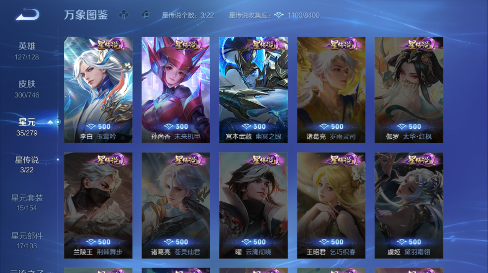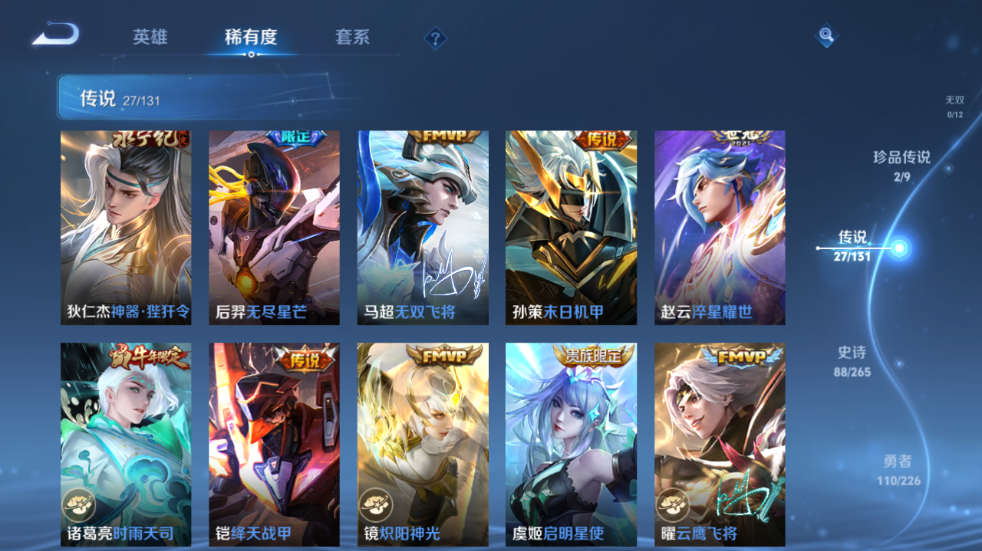 【王者荣耀】【lywz21496】珍品无双0 典藏3 无双0 珍品传说2 传说27 史诗88 英雄127 皮肤300 贵族9级 荣耀典藏:幻阙歌|弑呛猎影|拾光映像__珍品传说:怪盗基德|孙策-时之奇旅__传说皮肤:鸣野蒿|无尽星芒|无双飞将|绛天战甲|炽阳神光|启明星使|地狱之眼|地狱火|孙策-末日机甲|云霓雀翎|黄金射手座|刘备-时之恋人|一念神魔|云鹰飞将|淬星耀世|孙尚香-末日机甲|齐天大圣|时雨天司|遇见神鼓|逐花归海|云缨-鹤归松栖|神器·狴犴令|灼幽烈阳|映山客|玄雷天君|幻光神呛|愿照·岁时盈__稀有限定:至尊宝|朱雀志|孙行者|猪悟能|山海·玄木吟|拒霜思|百解令|大漠名商|地狱燃心|电玩高手|高山流水|古海寻踪|海滩派对|海盐诗旅|华丽摇滚|皇家上将|江河有灵|金庭之子|镜-真我赫兹|魔术师|匿光侦查者|奇幻香踪|千军破阵|擒涛扼浪|燃音魔法|荣光圣徽|沙漠行僧|死亡摇滚|探海日志|天穹祈灯|妄想食味|无心|五谷丰年|午后时光|纤云弄巧|星界游侠|阴阳师|银河之约|驭风魔法|遇见飞天|暗夜猫娘|暗隐猎兽者|暗渊魔法|白蛇|缤纷独角兽|冰冠公主|冰雪圆舞曲|苍穹之光|乘风破浪|德古拉伯爵|电玩小子|功夫厨神|鬼剑武藏|节奏热浪|金属风暴|乐园奇幻夜|龙鼓争鸣|吕布-末日机甲|魅力维加斯|魅语|梦奇-顽趣|女仆咖啡|偶像歌手|热力回旋|赏金猎手|绅士熊喵|圣诞恋歌|水果甜心|水晶猎龙者|孙策-猫狗日记|天秀·音浪|晚萤|赵云-未来纪元|星夜王子|雪夜绮愿|摇滚巨星|鹰眼统帅|幽灵船长|钟无艳-超时空战士|逐浪之夏|紫霞仙子|赵怀真-鹤归松栖|百里守约-百相守梦|老夫子-百相守梦|噬灭天穹|敬我三分|撼地雄心|破空之剑|顽岩魄|蔡文姬-夏日便利店|虞姬-夏日便利店|天穹之誓|修罗|曙光守护者|心灵战警|千年之狐|孙尚香-时之恋人|无限星赏官|特工魅影|心灵骇客|茶境仙|谧流熔炉|万物之道|器灵·浮梦炉|云中旅人|玲珑珍味|孙悟空-神迹守卫|流音漫舞|访茗客|暖冬·兔眠|灵卜魔法|落雪兰心|天堂福音|龙之律动|虚灵犬护|石田雨龙|荣光之誓|万灵启世|鹤鸣心笺__优质皮肤:尼罗河女神|一千零一夜|创世神祝|埃及法老|孤猎|木偶奇遇记|熊喵少女|午夜歌剧院|露花倒影|未来旅行|激情绿茵|海之征途|天启骑士|碧珀绯影|秩序猎龙将|锦衣卫|冰刃幻境|森|超能战警|维京掠夺者|绯红之刃|踏雪寻梅|启蛰|战争骑士|伊势巫女|画中游|威尼斯狂欢|第七人偶|潮流仙人|芝加哥教父|街头旋风|绝影神呛|地府判官|荷鲁斯之眼|幸存者|赤焰之缨|福禄兄弟|隐刃|前尘|特种部队|三太子|精灵王|范海辛|星航指挥官|龙域领主|爱与和平|占星师|花间舞|魇语军师|极冰防御线|花见巫女|棒球奇才|东海龙王|灼热之刃|精准探案法|帝国元帅|加勒比小姐|阿摩司公爵|精灵公主|修竹墨客|万圣前夜|暗都幽影|功夫炙烤|暖冬絮语|幻夜行动|聚星闪耀|潮玩探月行|秘密基地|次元突破|鲨炮海盗猫|野性能量|丁香结|虹云星官|守护之力|坚韧之力|幻乐之宴|功夫老勺|命运角斗场|幻想奇妙夜|海滩丽影|阿尔法小队|兔女郎|死亡骑士|黄金武士|少女阿狸|天使之翼|玩偶对对碰|宫本武藏-未来纪元|东方不败|红桃皇后|忍·炎影|爱心护理|街头霸王|教廷特使|时空谍影|决胜大满贯|破局者|王牌新星|西部游侠|太极少年|乐园追猎者|危途狂花|潮玩牛仔|进击墨子号|拳王|时尚教父|白色死神|程咬金-星际陆战队|白执事|大发明家|魅影绮裳|西施-雪境奇遇|星梦巡礼|灵卦秘语|掌控之力|雾都夜雨|铁骨偃魂|纽约教父|龙腾万里|乱世虎臣|西施-归虚梦演|孙悟空-西部大镖客|牛魔-西部大镖客|鲁班大师-归虚梦演|热血海滩|龙舞盛年|汉昭烈帝|乓乓大师|五福同心|盾山-圆桌骑士|蒙犽-归虚梦演|万事如意|曜-归虚梦演|唤灵魔甲|太乙真人-圆桌骑士|完美运算|花好人间|熔金海岸|万象初新|潮玩骑兵|苍林狼骑|蔚蓝守将|劲辣红锅|特工战影|妄想特派|死霸装|无双福将__贵族等级:贵族9级__王者段位:非凡王者弑呛猎影,幻阙歌,拾光映像,时之奇旅,怪盗基德,愿照·岁时盈,幻光神呛,玄雷天君,逐花归海,末日机甲,鹤归松栖,炽阳神光,时雨天司,黄金射手座,至尊宝等热门限定皮肤