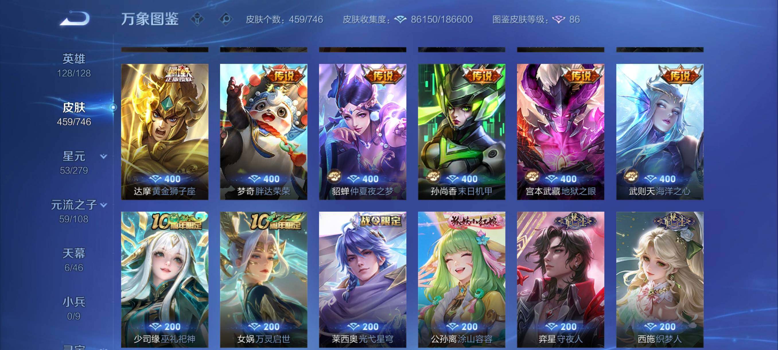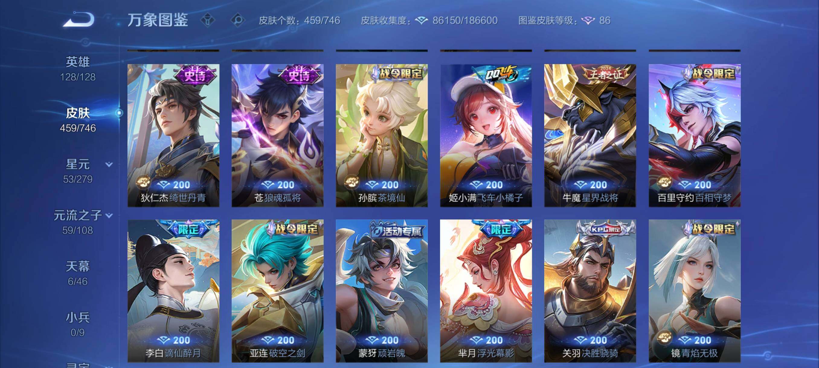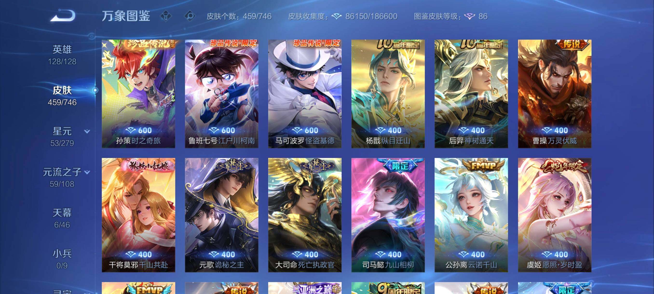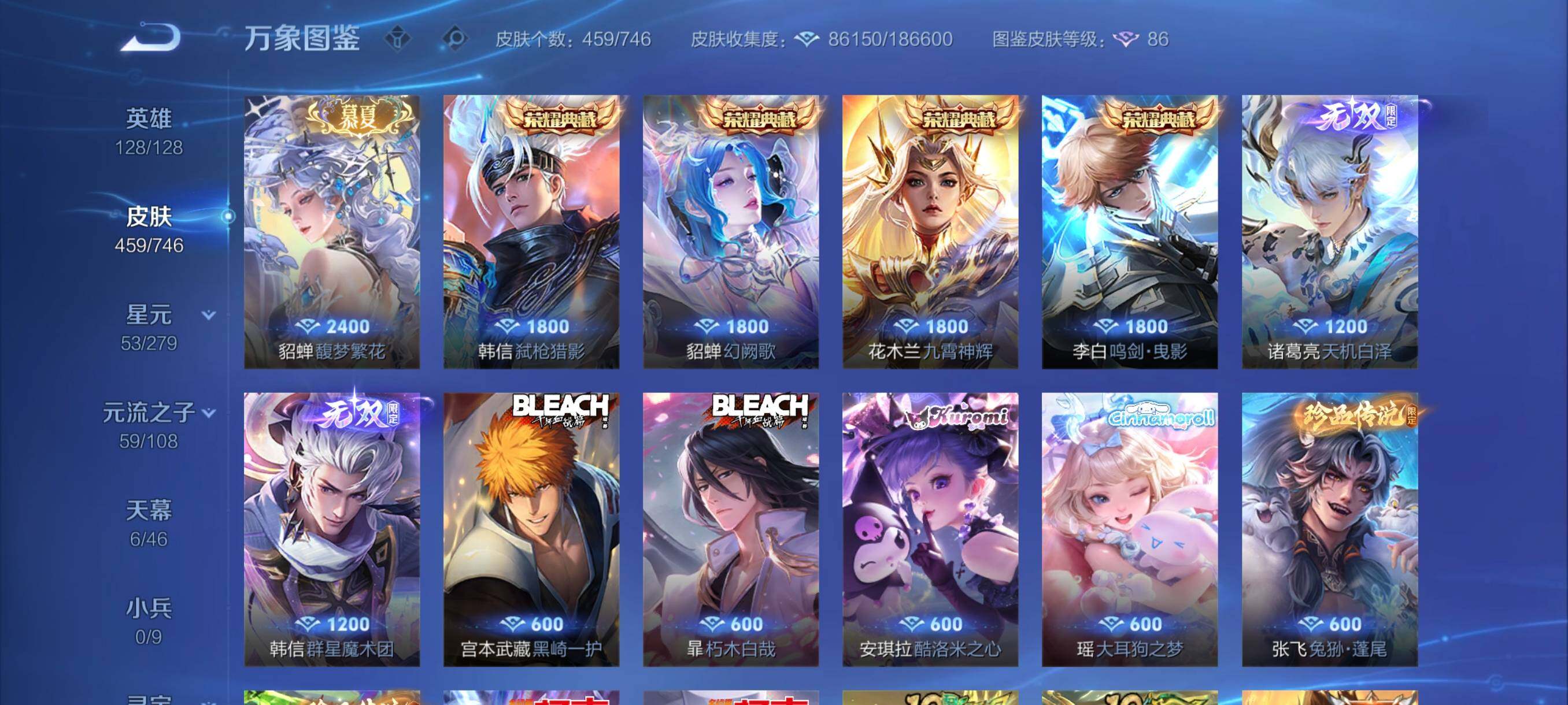 【店铺主推精品v10·馥梦繁花·6典藏·2无双·8珍品·群星魔术团·天机白泽·怪盗基德·鲁班柯南·大耳狗之梦·酷洛米之心·九霄神辉·幻阙歌·繁花交响诗天幕·天机无算天幕·黑崎一护天幕·棉花糖聚会天幕·可二次】w6702-安卓q-128英雄-459皮肤-18王者印记-300铭文-贵族积分21w【贵族10】【6典藏·1珍品无双·2无双·8珍品·4星传说·51传说·6天幕·58按键·25个性戳戳