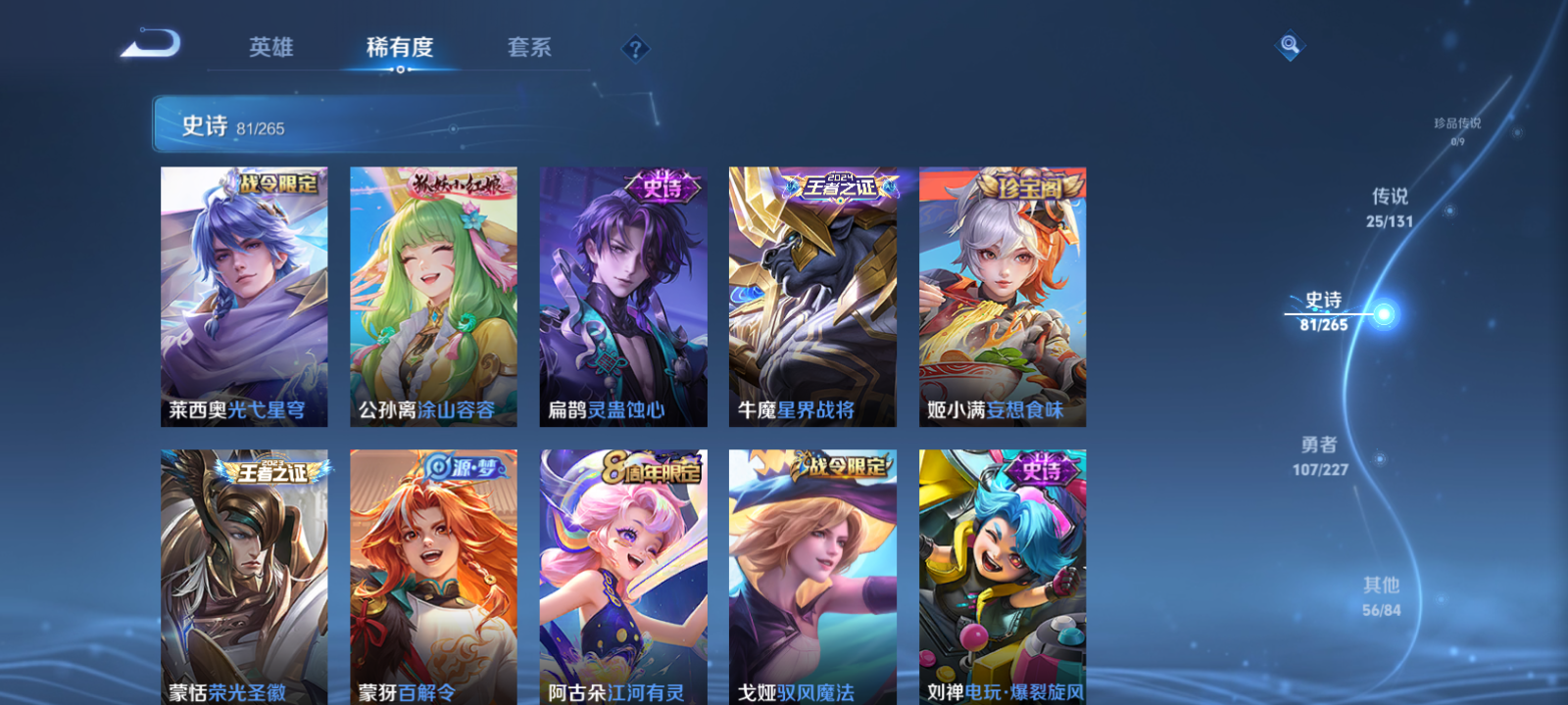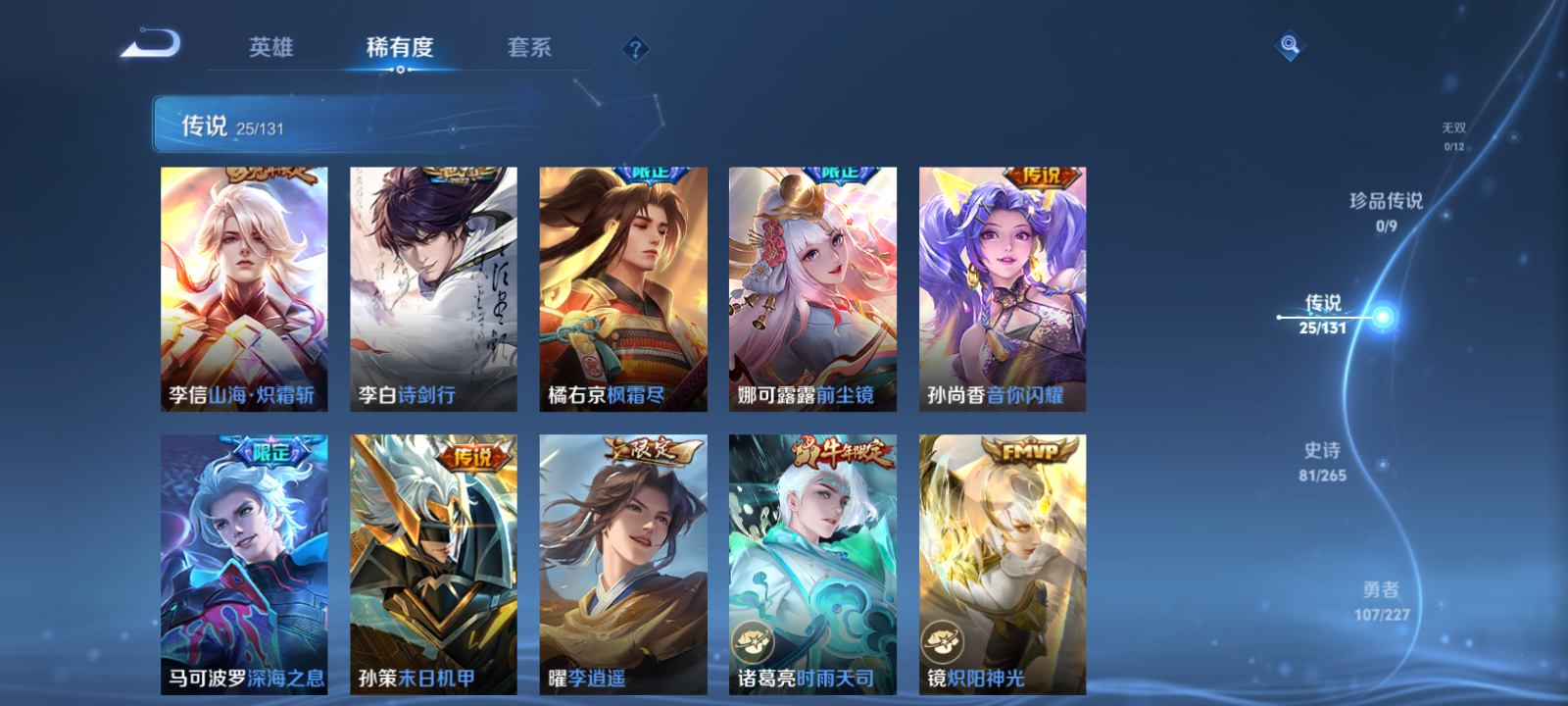 【王者荣耀】【lywz21966】珍品无双0 典藏2 无双0 珍品传说0 传说25 史诗81 英雄127 皮肤271 贵族8级 荣耀典藏:银白咏叹调|鸣剑·曳影__传说皮肤:鸣野蒿|枫霜尽|前尘镜|音你闪耀|深海之息|炽阳神光|启明星使|地狱之眼|孙策-末日机甲|一念神魔|云鹰飞将|李|齐天大圣|凤求凰|燃星之曲|诗剑行|时雨天司|霜月吟|逐花归海|乘龙·铭钟鼎|山海·苍雷引|山海·炽霜斩|山海·琳琅生|幻光神呛|神树通天__稀有限定:飞衡|龙胆|孙行者|傲雪梅呛|梁祝|山海·碧波行|山海·玄木吟|拒霜思|百解令|百木心呛|大漠名商|电玩高手|古海寻踪|海滩派对|海盐诗旅|幻夜卜梦|皇家上将|火炮绅士|剑破天穹|江河有灵|金庭之子|黎明之约|魔术师|奇幻香踪|千军破阵|擒涛扼浪|驱傩正仪|荣光圣徽|沙漠行僧|探海日志|天狼狩猎者|天穹祈灯|妄想食味|无心|五谷丰年|午后时光|星界游侠|夜都怪侠|阴阳师|吟游魔法|优雅恋人|驭风魔法|原初追逐者|真爱魔法|暗隐猎兽者|白龙吟|缤纷独角兽|冰冠公主|冰雪圆舞曲|乘风破浪|德古拉伯爵|地狱岩魂|电玩·爆裂旋风|电玩小子|功夫厨神|鬼剑武藏|唤灵魅影|黄金分割率|箭羽风息|节奏热浪|金属风暴|吕布-末日机甲|玫瑰异探|魅力维加斯|梦奇-顽趣|女仆咖啡|偶像歌手|千筹问战|赏金猎手|圣诞狂欢|圣诞恋歌|水果甜心|水晶猎龙者|孙策-猫狗日记|滕王阁序|晚萤|赵云-未来纪元|摇滚巨星|鹰眼统帅|幽灵船长|遇见神鹿|月团寄思|钟无艳-超时空战士|逐浪之夏|紫霞仙子|天穹之誓|曙光守护者|心灵战警|千年之狐|孙尚香-时之恋人|无限星赏官|舞动绿茵|心灵骇客|星界战将|云中旅人|玲珑珍味|暖冬·兔眠|落雪兰心|死神来了|灵蛊蚀心|布丁狗之约|逆浪荇歌|涂山容容|光弋星穹|往忆晖光|鹤鸣心笺__优质皮肤:尼罗河女神|孤猎|午夜歌剧院|激情绿茵|海之征途|天启骑士|碧珀绯影|秩序猎龙将|锦衣卫|冰刃幻境|森|超能战警|英喵野望|维京掠夺者|海军大将|绯红之刃|踏雪寻梅|启蛰|伊势巫女|画中游|生化警戒|第七人偶|潮流仙人|芝加哥教父|街头旋风|绝影神呛|幸存者|赤焰之缨|隐刃|前尘|特种部队|三太子|精灵王|剑舞者|范海辛|星航指挥官|龙域领主|占星师|魇语军师|极冰防御线|花见巫女|灼热之刃|精准探案法|圣殿之光|帝国元帅|霓裳曲|阿摩司公爵|异域舞娘|精灵公主|万圣前夜|破阵·退雄兵|功夫炙烤|聚星闪耀|潮玩探月行|瓷语鉴心|秘密基地|鲨炮海盗猫|丁香结|虹云星官|守护之力|坚韧之力|功夫老勺|命运角斗场|幻想奇妙夜|海滩丽影|阿尔法小队|兔女郎|死亡骑士|黄金武士|少女阿狸|天使之翼|宫本武藏-未来纪元|东方不败|红桃皇后|忍·炎影|街头霸王|教廷特使|鸿运当头|金色潮汐|漠中幻影|破局者|零食大作战|西部游侠|太极少年|乐园追猎者|牛运亨通|幻泉雾影|潮玩造梦师|危途狂花|胡桃狂想曲|契约魔法|进击墨子号|白色死神|白执事|大发明家|哥特玫瑰|景韶洛都|缤纷绘卷|掌控之力|纽约教父|龙腾万里|乱世虎臣|敏锐之力|西施-归虚梦演|孙悟空-西部大镖客|牛魔-西部大镖客|热血海滩|龙舞盛年|汉昭烈帝|乓乓大师|五福同心|盾山-圆桌骑士|万事如意|曜-归虚梦演|唤灵魔甲|沉稳之力|程咬金-群星魔术团|完美运算|化身博士|花好人间|熔金海岸|春野之旅|万象初新|潮玩骑兵|苍林狼骑|蔚蓝守将|劲辣红锅|特工战影|炽热元素使|妄想特派|灵野札记|玫蓝誓约|命运加冕|无双福将|逐霄之志__贵族等级:贵族8级__王者段位:至尊星耀打野皮肤号 29按键 金标程咬金 银白咏叹调,鸣剑·曳影 霜月吟,乘龙·铭钟鼎,逐花归海,李,凤求凰,山海·炽霜斩,山海·苍雷引等限定皮肤