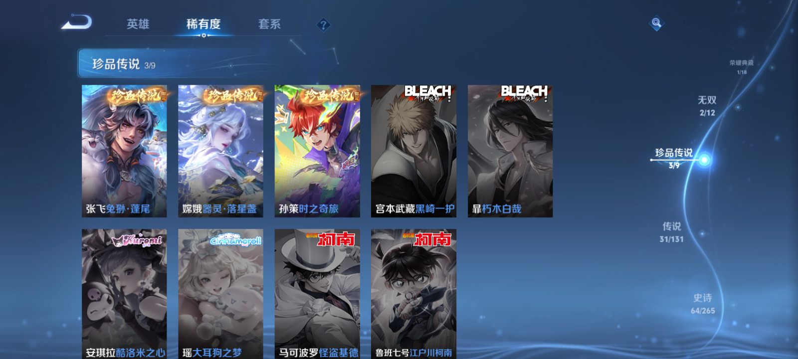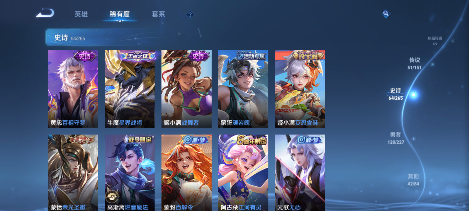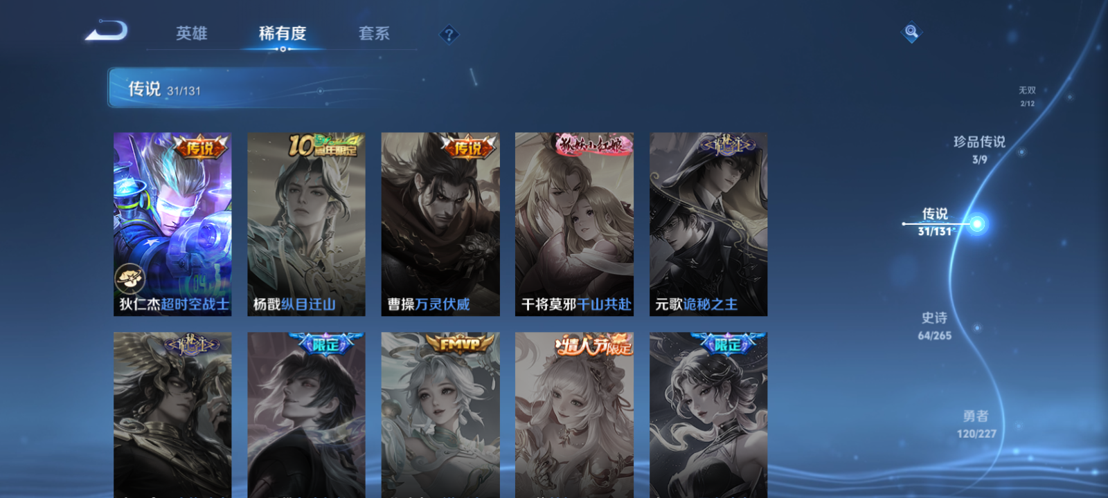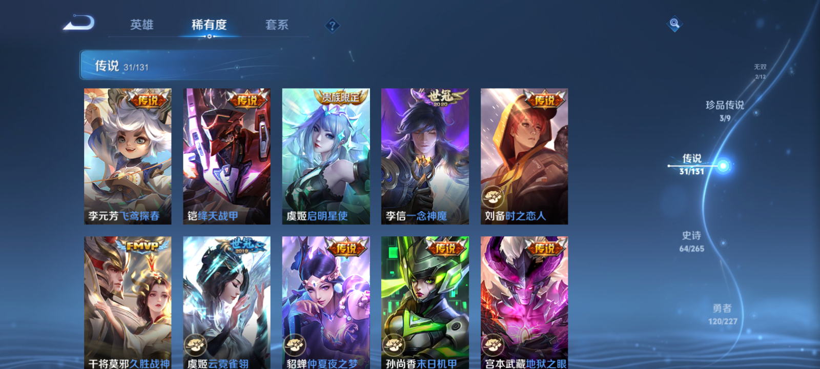 【王者荣耀】【lywz22054】珍品无双0 典藏1 无双2 珍品传说3 传说31 史诗64 英雄127 皮肤263 贵族4级 荣耀典藏:弑呛猎影__无双皮肤:时之魔女|器灵·螭龙剑__珍品传说:孙策-时之奇旅|器灵·落星盏|兔狲·蓬尾__传说皮肤:鸣野蒿|无双飞将|启示之音|绛天战甲|启明星使|地狱之眼|孙策-末日机甲|仲夏夜之梦|云霓雀翎|久胜战神|狄仁杰-超时空战士|刘备-时之恋人|一念神魔|飞鸢探春|乞巧织情|淬星耀世|炽翼辉光|孙尚香-末日机甲|惊梅引|怒海麟威|碎云|小乔-音你心动|影龙天霄|战鼓燎原|灼幽烈阳|牧神诗旅|玄雷天君|幻光神呛|愿照·众生和|神树通天__稀有限定:至尊宝|引擎之心|李小龙|百解令|百木心呛|大漠名商|电玩高手|高山流水|古海寻踪|海滩派对|海盐诗旅|幻夜卜梦|皇家上将|混沌棋|火炮绅士|剑破天穹|江河有灵|金庭之子|炼金王|迷踪丽影|魔术师|女武神|千军破阵|擒涛扼浪|驱傩正仪|燃音魔法|荣光圣徽|沙漠行僧|朔风刀|探海日志|醍醐杖|天狼狩猎者|天穹祈灯|万华元夜|妄想食味|无心|五谷丰年|午后时光|演武夺筹|妖精王|夜都怪侠|疑决卦|阴阳师|吟游魔法|御銮|原初追逐者|暗夜贵公子|暗夜猫娘|暗隐猎兽者|缤纷独角兽|冰冠公主|冰雪圆舞曲|苍穹之光|乘风破浪|地狱岩魂|电玩小子|功夫厨神|鬼剑武藏|黄金分割率|箭羽风息|节奏热浪|金属风暴|龙骑士|吕布-末日机甲|魅力维加斯|魅语|女仆咖啡|偶像歌手|绅士熊喵|圣诞狂欢|圣诞恋歌|水果甜心|天才门将|晚萤|星夜王子|鹰眼统帅|永昼|幽灵船长|钟无艳-超时空战士|逐浪之夏|噬灭天穹|战舞者|霜北刀|顽岩魄|天穹之誓|修罗|心灵战警|千年之狐|舞动绿茵|特工魅影|心灵骇客|星界战将|谧流熔炉|狰|原初探秘者|云中旅人|灵卜魔法|夺宝奇兵|圣弓游侠|落雪兰心|布丁狗之约|虚灵犬护|逆浪荇歌|黄忠-百相守梦|鹤鸣心笺__优质皮肤:尼罗河女神|创世神祝|年年有余|埃及法老|木偶奇遇记|熊喵少女|未来旅行|激情绿茵|锦衣卫|冰刃幻境|超能战警|维京掠夺者|踏雪寻梅|伊势巫女|威尼斯狂欢|街头旋风|地府判官|荷鲁斯之眼|赤焰之缨|福禄兄弟|隐刃|前尘|特种部队|三太子|范海辛|星航指挥官|龙域领主|占星师|花间舞|极冰防御线|花见巫女|东海龙王|蔷薇王座|灼热之刃|精准探案法|帝国元帅|阿摩司公爵|万圣前夜|破阵·退雄兵|功夫炙烤|潮玩探月行|秘密基地|次元突破|鲨炮海盗猫|丁香结|虹云星官|守护之力|坚韧之力|幻乐之宴|功夫老勺|海滩丽影|阿尔法小队|兔女郎|死亡骑士|黄金武士|少女阿狸|天使之翼|宫本武藏-未来纪元|东方不败|红桃皇后|忍·炎影|街头霸王|教廷特使|漠中幻影|时空谍影|破局者|潮玩造梦师|契约魔法|拳王|时尚教父|救世之瞳|白色死神|程咬金-星际陆战队|大发明家|哥特玫瑰|西施-雪境奇遇|星梦巡礼|景韶洛都|浪漫序章|缤纷绘卷|掌控之力|雾都夜雨|铁骨偃魂|纽约教父|龙腾万里|霸王丸|敏锐之力|牛魔-西部大镖客|热血海滩|龙舞盛年|汉昭烈帝|乓乓大师|五福同心|盾山-圆桌骑士|蒙犽-归虚梦演|万事如意|唤灵魔甲|太乙真人-圆桌骑士|沉稳之力|完美运算|化身博士|花好人间|熔金海岸|春野之旅|万象初新|苍林狼骑|蔚蓝守将|劲辣红锅|妄想特派|春野闲踪|灵野札记|玫蓝誓约|命运加冕|小满鸭|死霸装|无双福将|锦麟游梦|踏浪烽翎|云械蓝图|哪吒-罗小黑战记__贵族等级:贵族4级__王者段位:至尊星耀捡漏无双曜 珍品孙策 嫦娥张飞典藏韩信等超多热门皮肤限定