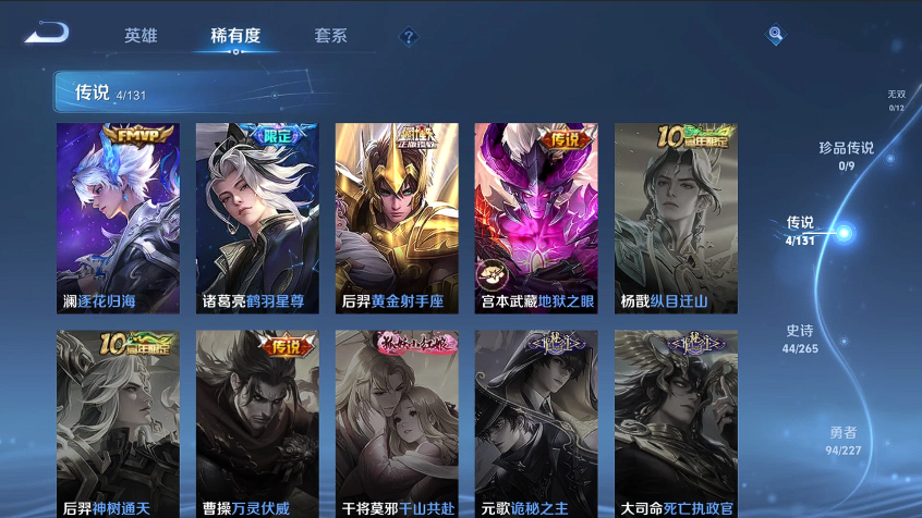 【王者荣耀】【lywz22000】珍品无双0 典藏1 无双0 珍品传说0 传说4 史诗44 英雄125 皮肤179 贵族6级 荣耀典藏:星空梦想__传说皮肤:地狱之眼|黄金射手座|鹤羽星尊|逐花归海__稀有限定:孙行者|李小龙|拒霜思|百解令|超元猎域|大漠名商|地狱燃心|古海寻踪|海滩派对|海盐诗旅|后羿-如梦令|皇家上将|剑破天穹|江河有灵|金庭之子|魔术师|奇幻香踪|千军破阵|擒涛扼浪|驱傩正仪|燃音魔法|沙漠行僧|探海日志|醍醐杖|天穹祈灯|玩趣恶龙|万华元夜|无心|五谷丰年|纤云弄巧|星界游侠|阴阳师|驭风魔法|原初追逐者|暗隐猎兽者|冰冠公主|冰雪圆舞曲|乘风破浪|电玩·爆裂旋风|电玩小子|伽罗-琥珀纪元|鬼剑武藏|节奏热浪|金属风暴|女仆咖啡|偶像歌手|圣诞狂欢|圣诞恋歌|水果甜心|孙策-猫狗日记|赵云-未来纪元|星夜王子|鹰眼统帅|逐浪之夏|曙光守护者|心灵战警|孙尚香-时之恋人|舞动绿茵|心灵骇客|原初探秘者|云中旅人|玲珑珍味|达摩-星际陆战队|流音漫舞|暖冬·兔眠|灵卜魔法|布丁狗之约|虚灵犬护|石田雨龙|逆浪荇歌|鹤鸣心笺__优质皮肤:尼罗河女神|创世神祝|埃及法老|孤猎|午夜歌剧院|激情绿茵|天启骑士|秩序猎龙将|锦衣卫|森|超能战警|英喵野望|维京掠夺者|海军大将|启蛰|战争骑士|芝加哥教父|绝影神呛|幸存者|福禄兄弟|特种部队|范海辛|龙域领主|爱与和平|花间舞|魇语军师|花见巫女|东海龙王|蔷薇王座|灼热之刃|精准探案法|加勒比小姐|异域舞娘|万圣前夜|异域游侠|暗都幽影|功夫炙烤|暖冬絮语|聚星闪耀|潮玩探月行|瓷语鉴心|秘密基地|次元突破|鲨炮海盗猫|野性能量|丁香结|虹云星官|坚韧之力|功夫老勺|命运角斗场|幻想奇妙夜|海滩丽影|阿尔法小队|兔女郎|黄金武士|少女阿狸|玩偶对对碰|宫本武藏-未来纪元|红桃皇后|忍·炎影|街头霸王|教廷特使|鸿运当头|金色潮汐|漠中幻影|时空谍影|决胜大满贯|破局者|零食大作战|西部游侠|牛运亨通|幻泉雾影|潮玩造梦师|胡桃狂想曲|进击墨子号|白色死神|白执事|大发明家|星梦巡礼|缤纷绘卷|掌控之力|纽约教父|龙腾万里|孙悟空-西部大镖客|牛魔-西部大镖客|乓乓大师|盾山-圆桌骑士|万事如意|完美运算|化身博士|熔金海岸|潮玩骑兵|苍林狼骑|蔚蓝守将|劲辣红锅|特工战影|炽热元素使|妄想特派|无双福将|锦麟游梦|踏浪烽翎|径山谋武__贵族等级:贵族6级__王者段位:至尊星耀1典藏4传说星空梦想黄金射手座,地狱之眼,逐花归海,鹤羽星尊