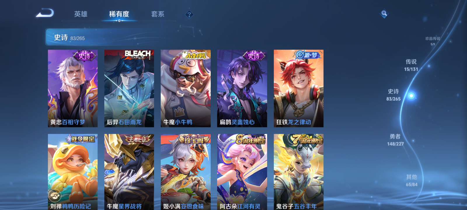 【王者荣耀】【lywz22059】珍品无双1 典藏1 无双0 珍品传说5 传说15 史诗83 英雄127 皮肤318 贵族8级 珍品无双:馥梦繁花__荣耀典藏:弑呛猎影__珍品传说:兔狲·蓬尾|大耳狗之梦|酷洛米之心|朽木白哉|黑崎一护__传说皮肤:鸣野蒿|无双飞将|启明星使|地狱火|黄金狮子座|狄仁杰-超时空战士|黄金射手座|一念神魔|游龙清影|淬星耀世|孙尚香-末日机甲|凤求凰|零号·赤焰|太华|妄想实况__稀有限定:至尊宝|朱雀志|大圣娶亲|岱宗|飞衡|蜜橘之夏|李小龙|梁祝|狮舞东方|拒霜思|暗影游猎|白昼王子|大漠名商|繁星吟游|凤凰于飞|高山流水|古海寻踪|海滩派对|海盐诗旅|航海奇遇记|胡桃夹子|幻夜卜梦|皇家上将|辉光之辰|混沌棋|火炮绅士|剑破天穹|江河有灵|金庭之子|凯尔特女王|狂想玩偶喵|黎明之约|迷踪丽影|魔术师|匿光决锋者|千军破阵|擒涛扼浪|穷奇|驱傩正仪|沙漠行僧|朔风刀|死亡摇滚|探海日志|饕餮|醍醐杖|天狼绘梦者|天穹祈灯|万华元夜|妄想食味|五谷丰年|纤云弄巧|星空之诺|驯魔猎人|演武夺筹|疑决卦|阴阳师|银河之约|游园惊梦|遇见飞天|御旌|御銮|御狮|原初追逐者|逐梦之影|暗夜贵公子|暗隐猎兽者|白龙吟|白蛇|缤纷独角兽|冰冠公主|冰雪圆舞曲|乘风破浪|德古拉伯爵|地狱岩魂|电玩小子|功夫厨神|鬼剑武藏|黄金分割率|箭羽风息|节奏热浪|金属风暴|乐园奇幻夜|吕布-末日机甲|魅力维加斯|魅语|女仆咖啡|偶像歌手|圣诞狂欢|圣诞恋歌|水果甜心|水晶猎龙者|天才门将|晚萤|赵云-未来纪元|摇滚巨星|鹰眼统帅|幽灵船长|逐浪之夏|紫霞仙子|噬灭天穹|敬我三分|天穹之誓|曙光守护者|心灵战警|千年之狐|舞动绿茵|特工魅影|星界战将|谧流熔炉|御霄|狰|烛龙|原初探秘者|重明|云中旅人|单词大作战|钟馗-神迹守卫|夺宝奇兵|墨子-神迹守卫|死神来了|刘禅-鸭鸭历险记|沈梦溪-鸭鸭历险记|灵蛊蚀心|龙之律动|布丁狗之约|虚灵犬护|小牛鸭|石田雨龙|逆浪荇歌|黄忠-百相守梦|荣光之誓__优质皮肤:尼罗河女神|一千零一夜|创世神祝|埃及法老|孤猎|木偶奇遇记|熊喵少女|午夜歌剧院|露花倒影|激情绿茵|海之征途|天启骑士|碧珀绯影|锦衣卫|冰刃幻境|超能战警|英喵野望|维京掠夺者|海军大将|绯红之刃|踏雪寻梅|启蛰|战争骑士|伊势巫女|生化警戒|威尼斯狂欢|第七人偶|潮流仙人|芝加哥教父|街头旋风|绝影神呛|地府判官|荷鲁斯之眼|幸存者|赤焰之缨|前尘|特种部队|三太子|精灵王|范海辛|星航指挥官|龙域领主|爱与和平|占星师|花间舞|魇语军师|极冰防御线|东海龙王|蔷薇王座|灼热之刃|圣殿之光|战争女神|加勒比小姐|异域舞娘|精灵公主|修竹墨客|万圣前夜|破阵·退雄兵|暗都幽影|功夫炙烤|聚星闪耀|潮玩探月行|秘密基地|次元突破|鲨炮海盗猫|野性能量|丁香结|奇妙博物学|虹云星官|守护之力|坚韧之力|幻乐之宴|功夫老勺|命运角斗场|幻想奇妙夜|海滩丽影|阿尔法小队|兔女郎|死亡骑士|黄金武士|少女阿狸|天使之翼|玩偶对对碰|宫本武藏-未来纪元|东方不败|红桃皇后|忍·炎影|爱心护理|街头霸王|教廷特使|漠中幻影|破局者|西部游侠|太极少年|契约魔法|次元傲视|无尽征程|黑桃队长|如懿|制霸全明星|拳王|时尚教父|救世之瞳|白色死神|程咬金-星际陆战队|白执事|大发明家|哥特玫瑰|西施-雪境奇遇|星梦巡礼|灵卦秘语|爆裂喵拳|景韶洛都|猪八戒-西部大镖客|掌控之力|铁骨偃魂|纽约教父|龙腾万里|霸王丸|乱世虎臣|敏锐之力|西施-归虚梦演|孙悟空-西部大镖客|牛魔-西部大镖客|鲁班大师-归虚梦演|龙舞盛年|汉昭烈帝|乓乓大师|五福同心|盾山-圆桌骑士|猎兽之王|蒙犽-归虚梦演|万事如意|曜-归虚梦演|唤灵魔甲|沉稳之力|赤莲之焰|完美运算|化身博士|花好人间|熔金海岸|春野之旅|万象初新|潮玩骑兵|苍林狼骑|蔚蓝守将|劲辣红锅|特工战影|炽热元素使|妄想特派|春野闲踪|灵野札记|玫蓝誓约|命运加冕|潮玩士官长|小满鸭|死霸装|无双福将|踏浪烽翎|云械蓝图|落日弦歌|径山谋武__贵族等级:贵族8级__王者段位:永恒钻石高质量皮肤号 9按键【1典藏5珍品珍品无双天幕】妄想实况,一念神魔,无双飞将,淬星耀世,游龙清影,末日机甲,太华,黄金狮子座,凤求凰,黄金射手座,零号·赤焰,地狱火等等皮肤