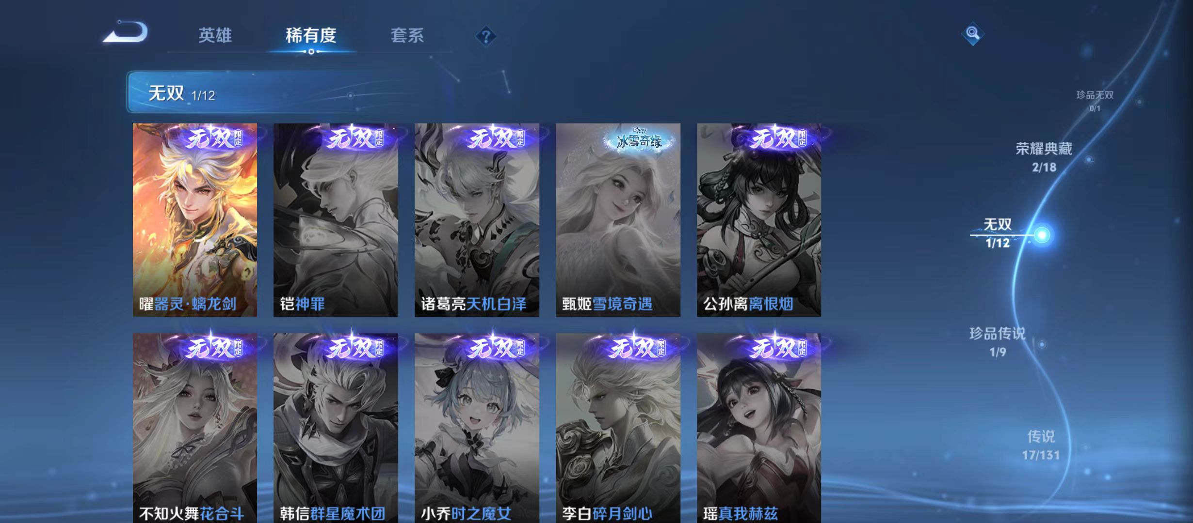 txwz23094-v8-306皮肤 2典藏银白咏叹调,弑呛猎影 1无双器灵·螭龙剑 1珍品怪盗基德 17传说地狱之眼,超时空战士,愿照·九州拓,幻光神呛,无双飞将,鸣野蒿,乘龙·铭钟鼎,乘龙·淬吴钩,仲夏夜之梦,浮生妄,启明星使,云鹰飞将,诗剑行,一念神魔,时雨天司,地狱火,末日机甲 83史诗