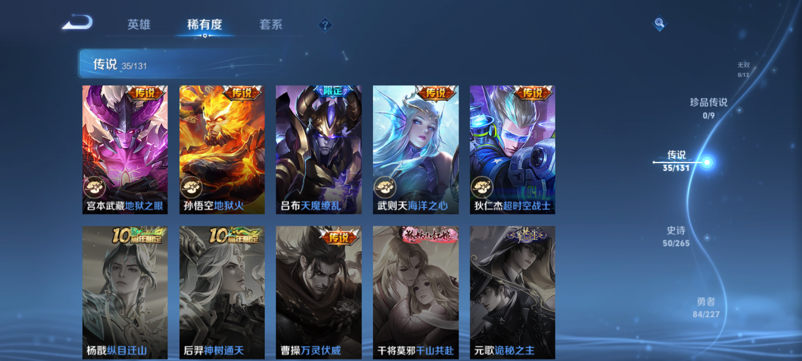 【王者荣耀】【lywz21952】珍品无双0 典藏2 无双0 珍品传说0 传说35 史诗50 英雄128 皮肤203 贵族9级 荣耀典藏:无限飓风号|杀手不太冷|武则天__传说皮肤:鸣野蒿|无双飞将|异界灵契|绛天战甲|炽阳神光|启明星使|地狱之眼|地狱火|海洋之心|孙策-末日机甲|久胜战神|狄仁杰-超时空战士|黄金射手座|猫影幻舞|一念神魔|云鹰飞将|冠军飞将|游龙清影|淬星耀世|绯月行|浮生妄|记忆之芯|孙尚香-末日机甲|凤求凰|金乌负日|零号·赤焰|燃星之曲|时雨天司|碎云|天魔缭乱|妄想奇谈|武圣|云缨-鹤归松栖|山海·炽霜斩|朵莉亚-心动手记__稀有限定:神威|孙行者|李小龙|神器·万象笔|拒霜思|大漠名商|古海寻踪|海滩派对|海盐诗旅|皇家上将|混沌棋|降魔|金庭之子|迷踪丽影|魔术师|女武神|千军破阵|擒涛扼浪|穷奇|驱傩正仪|沙漠行僧|醍醐杖|万华元夜|演武夺筹|疑决卦|阴阳师|游园惊梦|御旌|御銮|真爱魔法|暗夜贵公子|暗夜猫娘|暗隐猎兽者|白龙吟|冰冠公主|乘风破浪|乘龙·聚宝船|德古拉伯爵|地狱岩魂|电玩小子|鬼剑武藏|黄金分割率|金属风暴|龙骑士|魅力维加斯|女仆咖啡|偶像歌手|赏金猎手|水果甜心|水晶猎龙者|孙策-猫狗日记|赵云-未来纪元|星夜王子|鹰眼统帅|永昼|星界特工|涂山红红|浮光幕影|修罗|心灵战警|千年之狐|特工魅影|谧流熔炉|苍鳞隐世|狰|原初探秘者|重明|云中旅人|达摩-星际陆战队|夺宝奇兵|圣弓游侠|死神来了|龙之律动|布丁狗之约|虚灵犬护|逆浪荇歌|孙策-百相守梦|周瑜-百相守梦|赞萌露比|守夜人|光弋星穹|往忆晖光|荣光之誓|鹤鸣心笺__优质皮肤:尼罗河女神|创世神祝|年年有余|埃及法老|孤猎|未来旅行|激情绿茵|天启骑士|冰刃幻境|森|超能战警|战争骑士|伊势巫女|生化警戒|威尼斯狂欢|第七人偶|街头旋风|绝影神呛|幸存者|赤焰之缨|福禄兄弟|剑舞者|龙域领主|魇语军师|棒球奇才|圣殿之光|战争女神|加勒比小姐|绒语心约|暗都幽影|功夫炙烤|潮玩探月行|瓷语鉴心|秘密基地|次元突破|鲨炮海盗猫|守护之力|功夫老勺|幻想奇妙夜|海滩丽影|死亡骑士|黄金武士|少女阿狸|宫本武藏-未来纪元|东方不败|忍·炎影|爱心护理|教廷特使|破局者|太极少年|乐园追猎者|牛运亨通|紫罗兰之誓|铁甲之心|进击墨子号|拳王|救世之瞳|白色死神|哥特玫瑰|金福满堂|星梦巡礼|浪漫序章|逐霄战戟|纽约教父|龙腾万里|乱世虎臣|西施-归虚梦演|孙悟空-西部大镖客|乓乓大师|五福同心|盾山-圆桌骑士|曜-归虚梦演|沉稳之力|化身博士|花好人间|炽热元素使|春野闲踪|灵野札记|玫蓝誓约|无双福将|踏浪烽翎__贵族等级:贵族9级__王者段位:绝世王者7号换绑