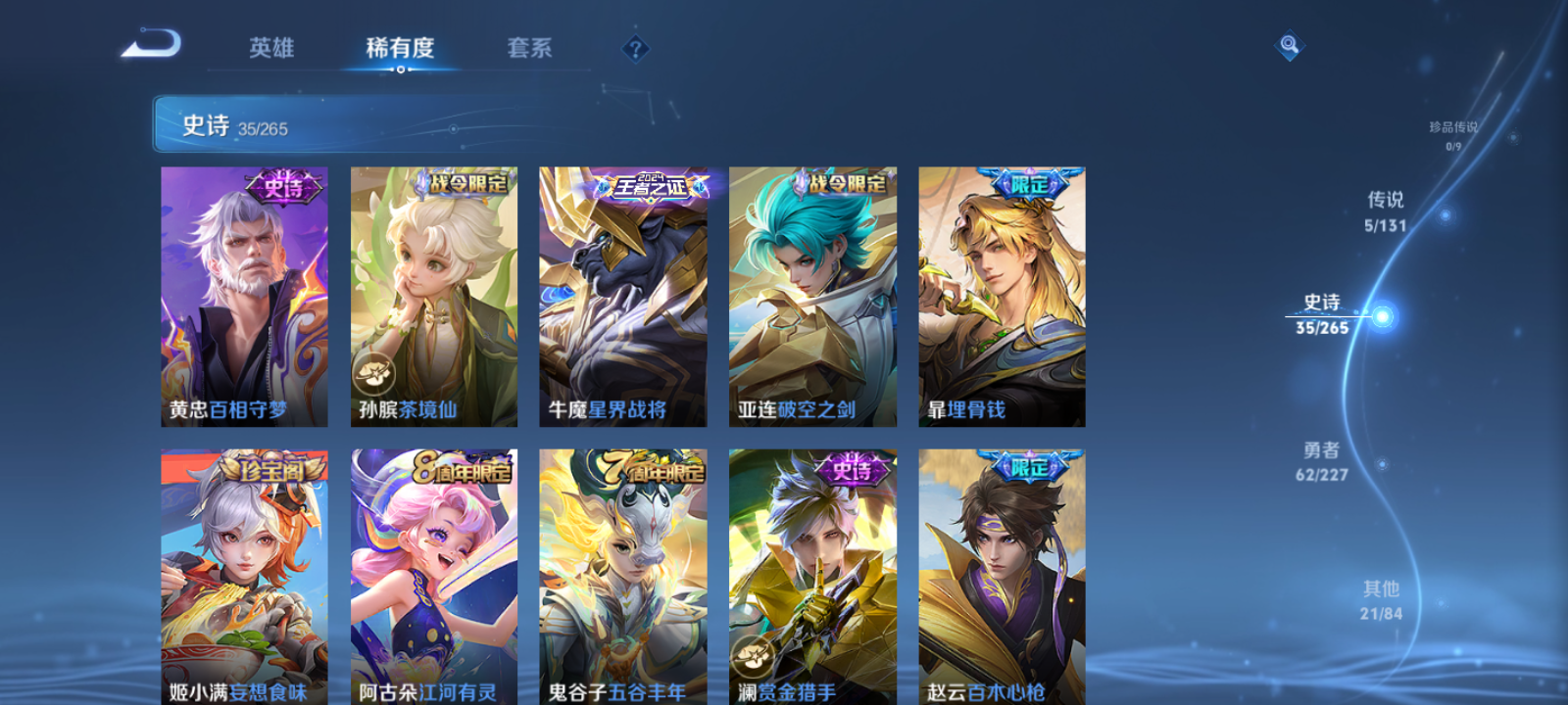 【王者荣耀】【lywz22733】珍品无双0 典藏1 无双0 珍品传说0 传说5 史诗35 英雄119 皮肤124 贵族5级 荣耀典藏:神鉴启示录__传说皮肤:鸣野蒿|地狱之眼|久胜战神|黄金狮子座|逐花归海__稀有限定:梁祝|百木心呛|大漠名商|古海寻踪|海滩派对|海盐诗旅|皇家上将|剑破天穹|江河有灵|擒涛扼浪|探海日志|天穹祈灯|妄想食味|五谷丰年|阴阳师|暗隐猎兽者|暗渊魔法|冰雪圆舞曲|乘风破浪|大乔-猫狗日记|地狱岩魂|鬼剑武藏|金属风暴|吕布-末日机甲|赏金猎手|水果甜心|水晶猎龙者|天才门将|晚萤|星夜王子|摇滚巨星|鹰眼统帅|幽灵船长|逐浪之夏|紫霞仙子|噬灭天穹|敬我三分|破空之剑|埋骨钱|天穹之誓|曙光守护者|心灵战警|舞动绿茵|特工魅影|茶境仙|星界战将|谧流熔炉|云中旅人|孙悟空-神迹守卫|访茗客|逆浪荇歌|黄忠-百相守梦__优质皮肤:尼罗河女神|木偶奇遇记|午夜歌剧院|激情绿茵|海之征途|碧珀绯影|锦衣卫|冰刃幻境|启蛰|绝影神呛|地府判官|荷鲁斯之眼|幸存者|龙域领主|魇语军师|灼热之刃|帝国元帅|战争女神|加勒比小姐|异域舞娘|幻夜行动|潮玩探月行|秘密基地|次元突破|鲨炮海盗猫|丁香结|虹云星官|功夫老勺|幻想奇妙夜|海滩丽影|兔女郎|死亡骑士|黄金武士|红桃皇后|街头霸王|教廷特使|鸿运当头|漠中幻影|时空谍影|决胜大满贯|破局者|太极少年|潮玩造梦师|拳王|白色死神|白执事|哥特玫瑰|缤纷绘卷|掌控之力|龙腾万里|敏锐之力|牛魔-西部大镖客|乓乓大师|五福同心|万事如意|曜-归虚梦演|程咬金-群星魔术团|花好人间|熔金海岸|苍林狼骑|特工战影|妄想特派|春野闲踪|玫蓝誓约|踏浪烽翎|落日弦歌__贵族等级:贵族5级__王者段位:永恒钻石1典藏5传说神鉴启示录久胜战神,黄金狮子座,鸣野蒿,地狱之眼,逐花归海