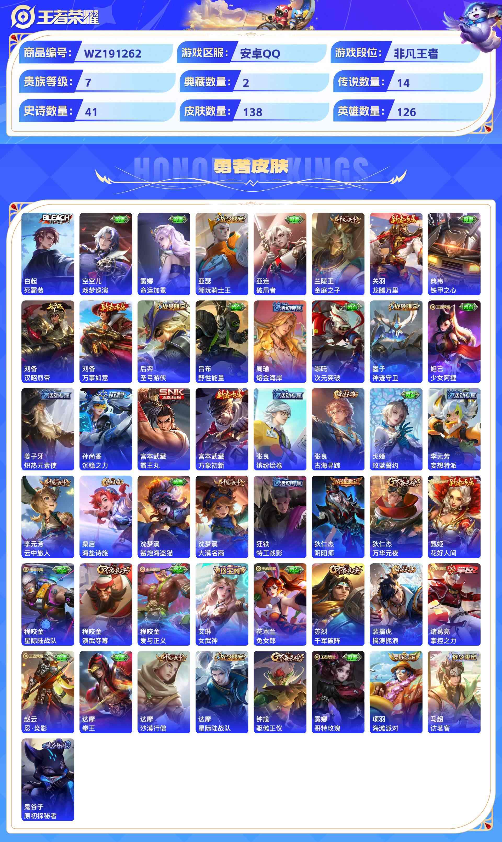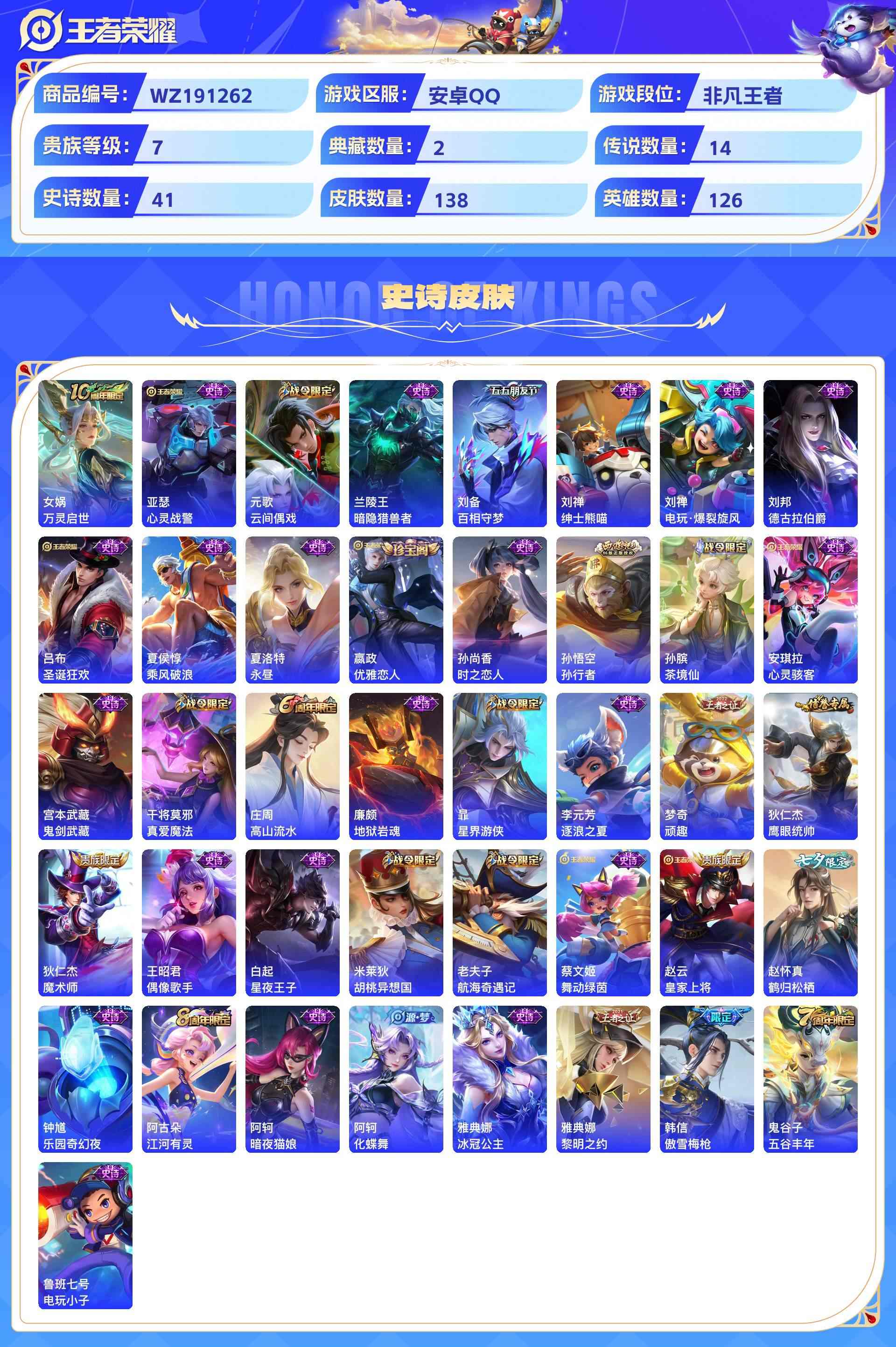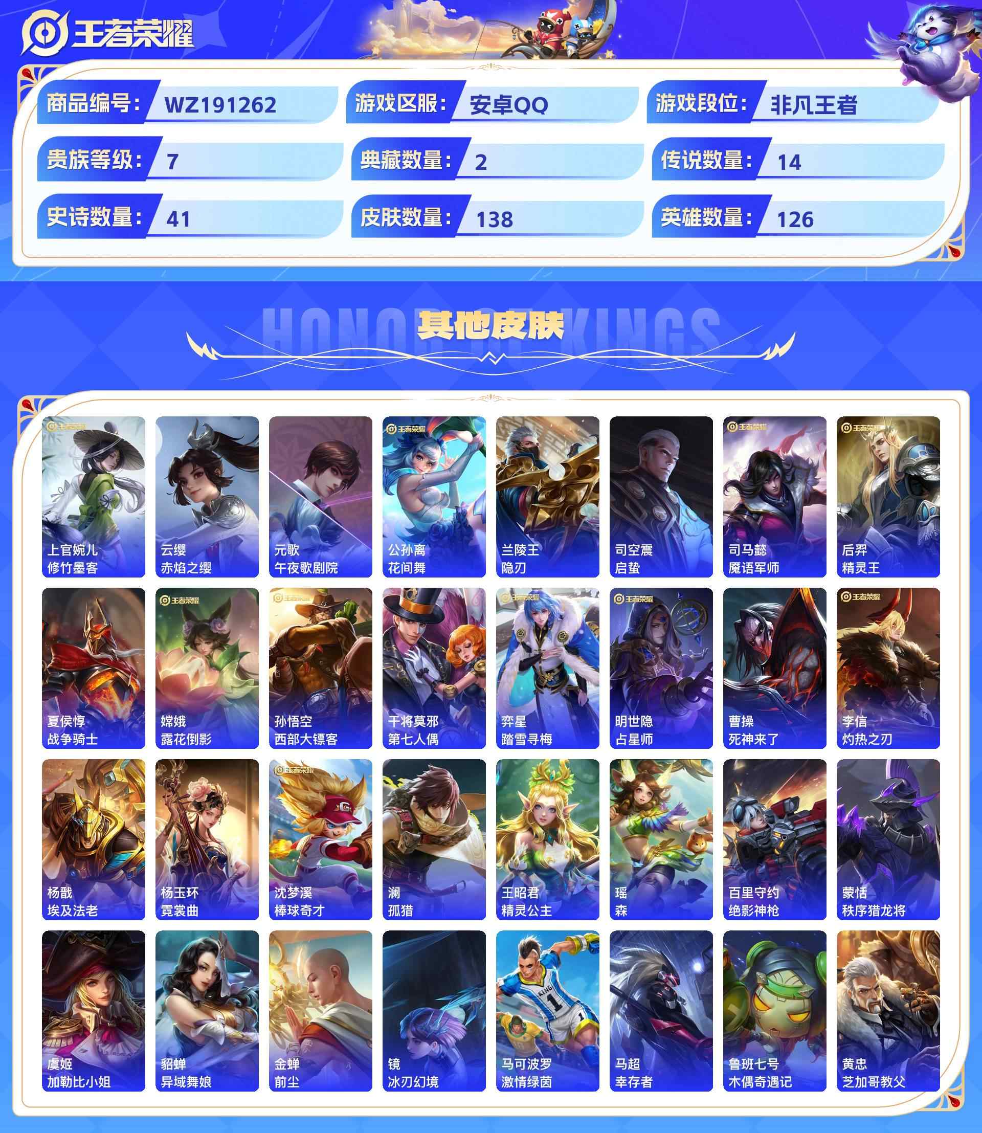 wz191262|精品号可二次【荣耀典藏】全息碎影鸣剑·曳影【传说皮肤】幻光神呛默契交锋武圣零号·赤焰云鹰飞将一念神魔鸣野蒿超时空战士冠军飞将游龙清影淬星耀世黄金狮子座绛天战甲无双飞将安卓qq 贵族7级 138皮 2典藏 14传说 41史诗1星传说3个性按键