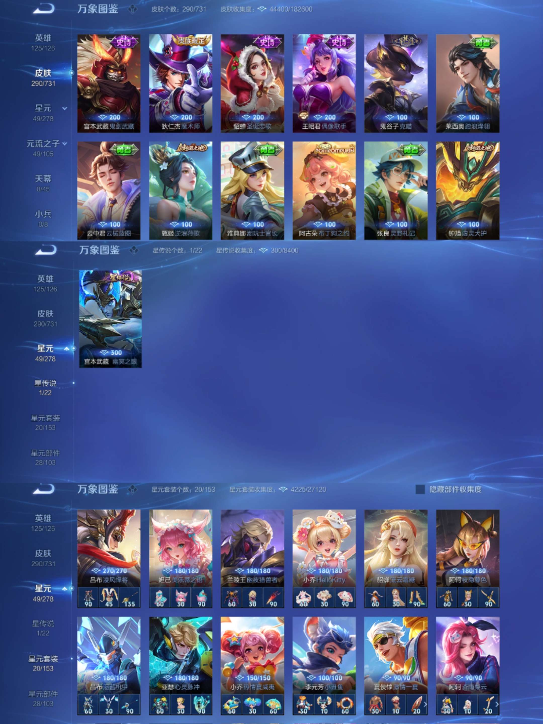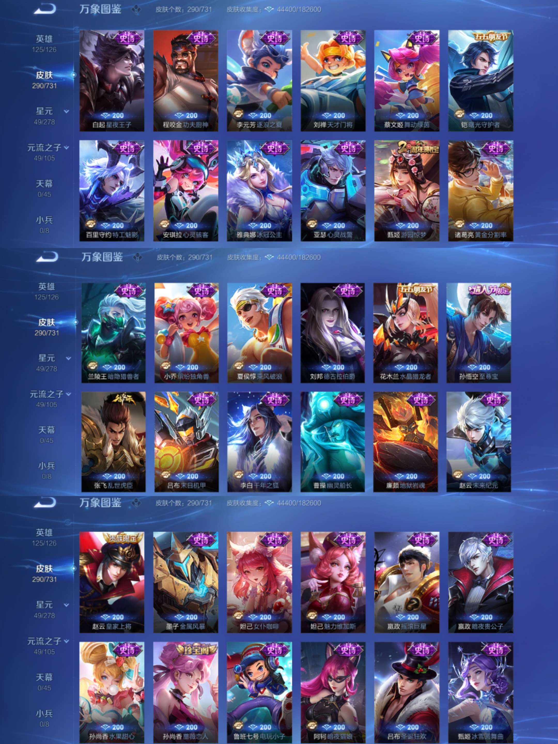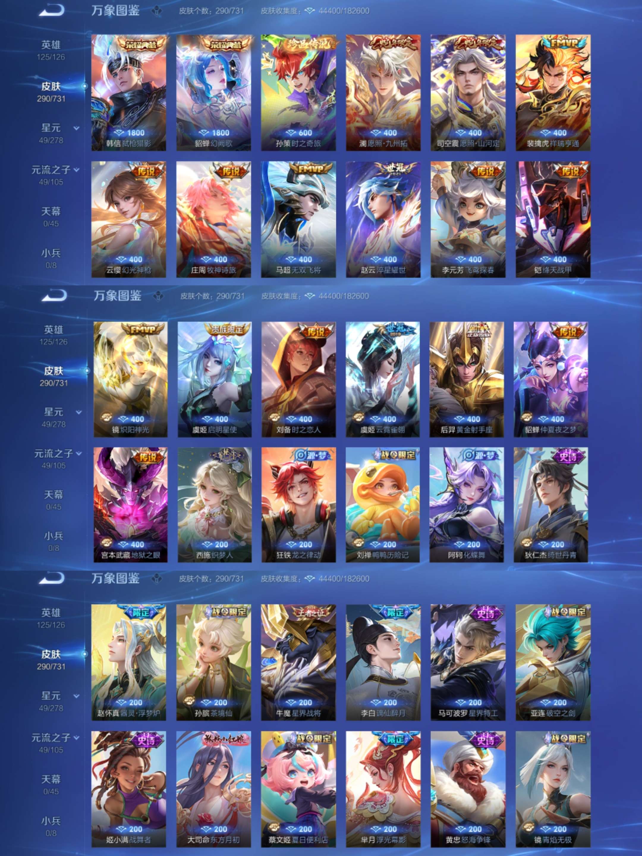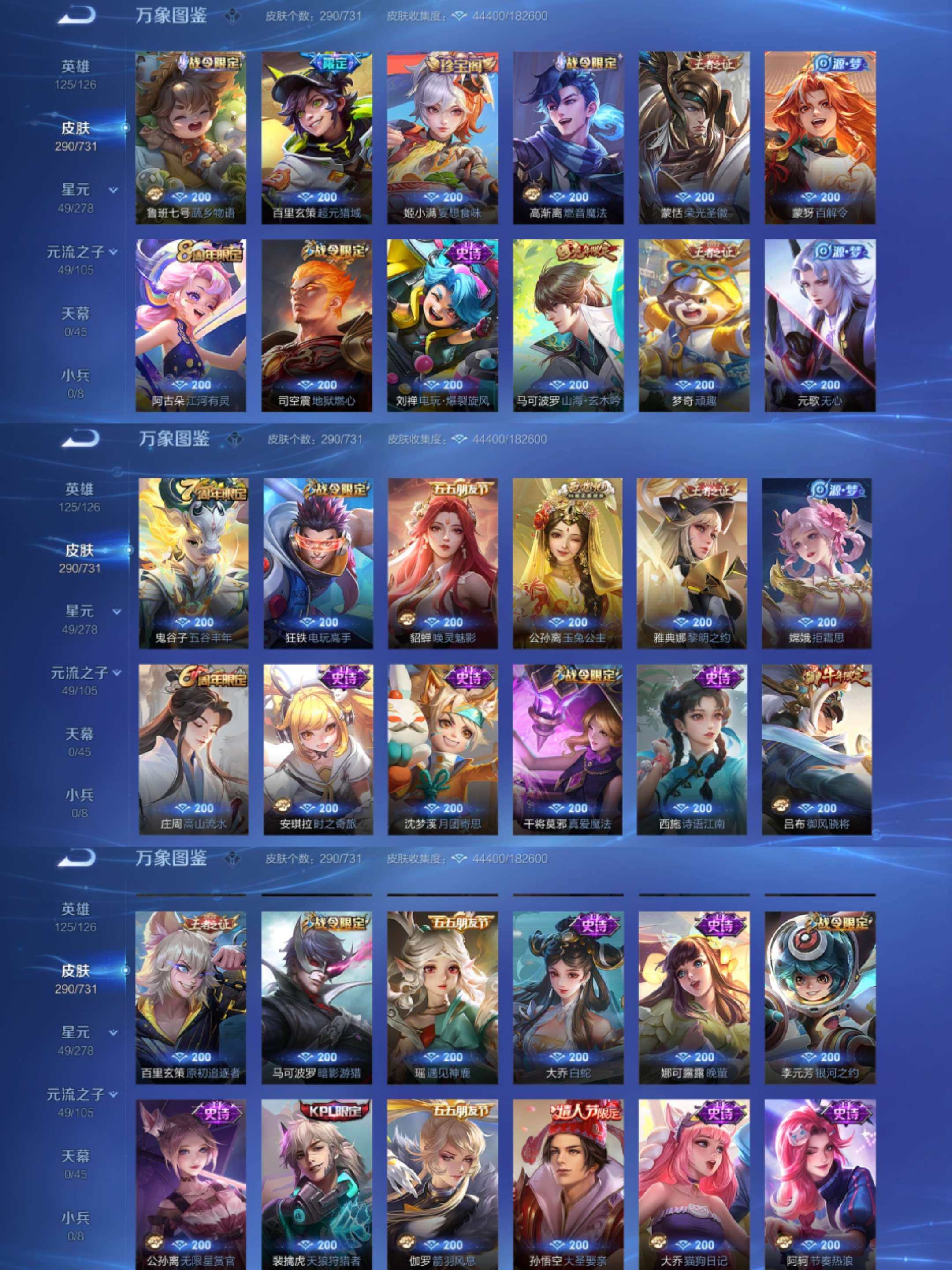 125英雄-290皮肤-【2水晶1星元1珍品16传说弑呛猎影幻阙歌时之奇旅】安卓qq-125英雄-290皮肤【2水晶】 弑呛猎影 幻阙歌【珍品传说】时之奇旅【星元皮肤】幽冥之眼【传说皮肤】愿照·山河定 牧神诗旅 祥瑞亨通 幻光神呛 愿照·九州拓 无双飞将 仲夏夜之梦 地狱之眼 黄金射手座 炽阳神光 绛天战甲 飞鸢探春 时之恋人 云霓雀翎 启明星使 淬星耀世【史诗皮肤】大圣娶亲 至尊宝 怒海争锋 浮光幕