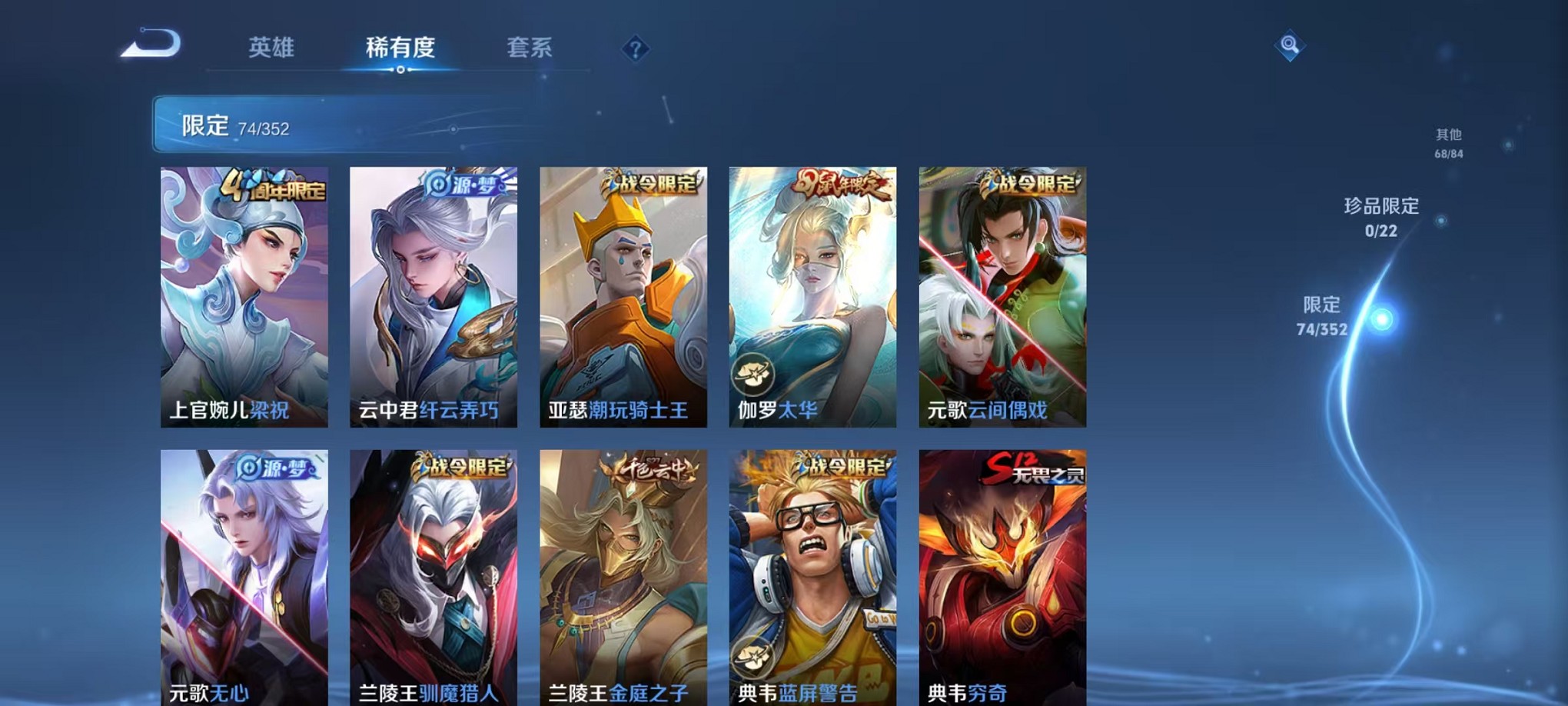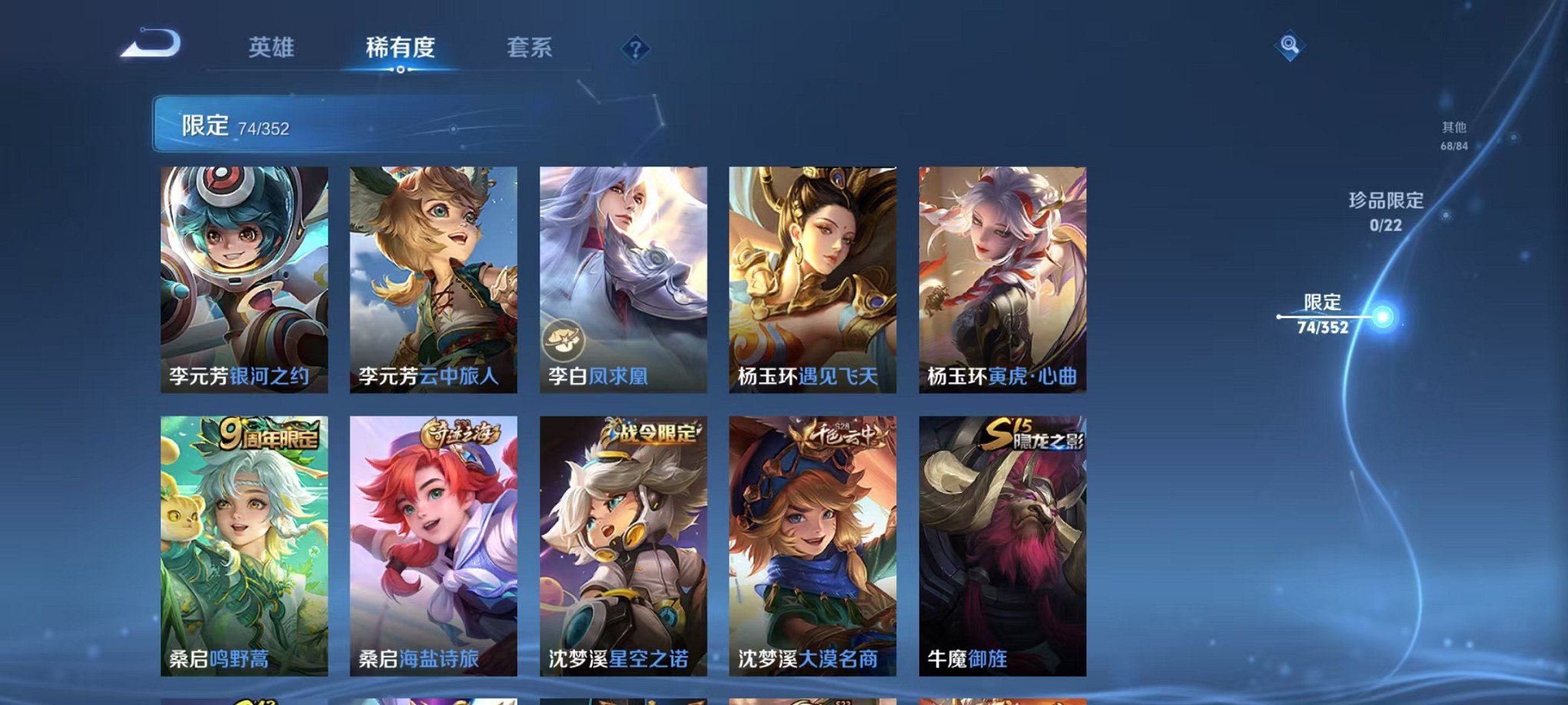 125英雄-252皮肤-【凤求凰 太华至尊宝 252皮肤1典藏1星元9传说 可秒换绑】安卓q-125英雄【1水晶】星域神启【1星元】金色仲夏夜之梦【9传说】凤求凰 鸣野蒿 太华 诗剑行 仲夏夜之梦 猫影幻舞 一念神魔 异界灵契 云鹰飞将【69史诗】时之彼端 神威 大圣娶亲 至尊宝 万物之道 星界游侠 山海·玄木吟 魅语 功夫厨神 女仆咖啡 魅力维加斯 猫狗日记 魔术师 鹰眼统帅 蓝屏警告 圣诞恋歌 箭