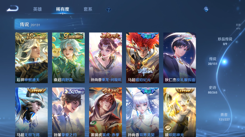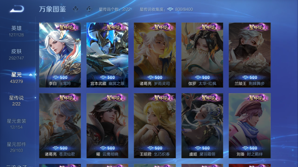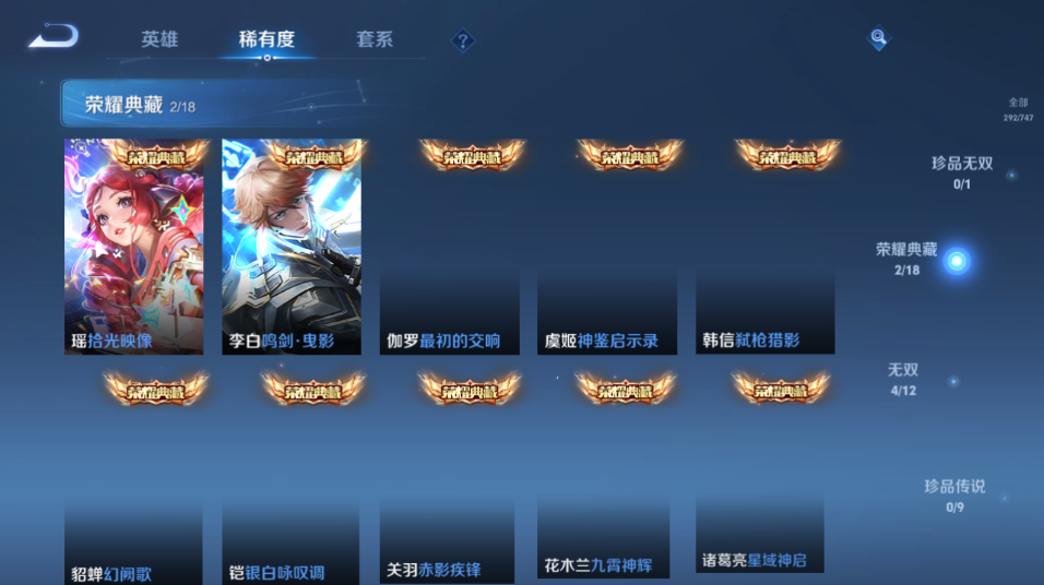 【王者荣耀】【lywz22839】珍品无双0 典藏2 无双4 珍品传说0 传说20 史诗80 英雄127 皮肤292 贵族4级 荣耀典藏:鸣剑·曳影|拾光映像__无双皮肤:碎月剑心|离恨烟|器灵·螭龙剑|青丘·九尾__传说皮肤:鸣野蒿|无双飞将|挚爱之约|异界灵契|炽阳神光|启明星使|地狱之眼|云霓雀翎|黄金狮子座|黄金射手座|一念神魔|孙尚香-末日机甲|白虎志|凤求凰|马超-琥珀纪元|武圣|夜礼服假面|乘龙·问璇玑|寅虎·赤拳|神树通天__稀有限定:青龙志|朱雀志|大圣娶亲|飞衡|神威|李小龙|山海·玄木吟|狮舞东方|拒霜思|暗影游猎|白昼王子|百解令|大漠名商|高山流水|古海寻踪|海滩派对|海盐诗旅|幻夜卜梦|皇家上将|混沌棋|火炮绅士|剑破天穹|江河有灵|金庭之子|蓝屏警告|黎明之约|迷踪丽影|魔术师|匿光追影者|女武神|千军破阵|擒涛扼浪|青焰无极|驱傩正仪|燃音魔法|荣光圣徽|沙漠行僧|朔风刀|探海日志|醍醐杖|天狼狩猎者|天穹祈灯|万华元夜|五谷丰年|星空之诺|演武夺筹|疑决卦|阴阳师|银河之约|优雅恋人|游园惊梦|遇见飞天|御旌|御銮|御狮|原初追逐者|云端筑梦师|真爱魔法|暗夜猫娘|暗隐猎兽者|白龙吟|白蛇|缤纷独角兽|冰冠公主|冰雪圆舞曲|苍穹之光|德古拉伯爵|电玩·爆裂旋风|鬼剑武藏|黄金分割率|箭羽风息|金属风暴|吕布-末日机甲|魅力维加斯|梦奇-顽趣|女仆咖啡|偶像歌手|赏金猎手|圣诞狂欢|圣诞恋歌|水果甜心|水晶猎龙者|孙策-猫狗日记|晚萤|赵云-未来纪元|星夜王子|摇滚巨星|鹰眼统帅|幽灵船长|月团寄思|逐浪之夏|紫霞仙子|破空之剑|天穹之誓|海诺-心动手记|修罗|曙光守护者|心灵战警|千年之狐|特工魅影|星界战将|万物之道|御霄|原初探秘者|云中旅人|朔望之晖|钟馗-神迹守卫|孙悟空-神迹守卫|灵卜魔法|夺宝奇兵|苍威无极|圣弓游侠|死神来了|虚灵犬护|石田雨龙|逆浪荇歌|黄忠-百相守梦|涂山容容|鹤鸣心笺__优质皮肤:尼罗河女神|创世神祝|年年有余|埃及法老|孤猎|木偶奇遇记|熊喵少女|午夜歌剧院|未来旅行|激情绿茵|海之征途|碧珀绯影|秩序猎龙将|锦衣卫|冰刃幻境|森|超能战警|维京掠夺者|绯红之刃|踏雪寻梅|启蛰|伊势巫女|画中游|生化警戒|威尼斯狂欢|第七人偶|潮流仙人|芝加哥教父|街头旋风|绝影神呛|荷鲁斯之眼|幸存者|赤焰之缨|福禄兄弟|隐刃|前尘|特种部队|三太子|精灵王|剑舞者|范海辛|龙域领主|爱与和平|花间舞|魇语军师|极冰防御线|花见巫女|东海龙王|蔷薇王座|灼热之刃|霓裳曲|加勒比小姐|阿摩司公爵|异域舞娘|精灵公主|修竹墨客|万圣前夜|破阵·退雄兵|暗都幽影|功夫炙烤|聚星闪耀|潮玩探月行|秘密基地|次元突破|鲨炮海盗猫|野性能量|丁香结|奇妙博物学|虹云星官|守护之力|坚韧之力|幻乐之宴|功夫老勺|幻想奇妙夜|海滩丽影|阿尔法小队|兔女郎|死亡骑士|黄金武士|少女阿狸|天使之翼|玩偶对对碰|宫本武藏-未来纪元|红桃皇后|忍·炎影|爱心护理|街头霸王|教廷特使|漠中幻影|破局者|王牌新星|零食大作战|西部游侠|牛运亨通|危途狂花|无尽征程|进击墨子号|拳王|时尚教父|救世之瞳|白色死神|程咬金-星际陆战队|白执事|大发明家|哥特玫瑰|星梦巡礼|猪八戒-西部大镖客|掌控之力|纽约教父|龙腾万里|霸王丸|乱世虎臣|经纬探寻者|敏锐之力|西施-归虚梦演|牛魔-西部大镖客|鲁班大师-归虚梦演|龙舞盛年|汉昭烈帝|乓乓大师|五福同心|盾山-圆桌骑士|猎兽之王|蒙犽-归虚梦演|万事如意|曜-归虚梦演|唤灵魔甲|太乙真人-圆桌骑士|沉稳之力|程咬金-群星魔术团|完美运算|化身博士|花好人间|熔金海岸|春野之旅|万象初新|蔚蓝守将|劲辣红锅|特工战影|炽热元素使|妄想特派|死霸装|踏浪烽翎|戏梦巡演__贵族等级:贵族4级__王者段位:至尊星耀【2天幕8按键2星传说】拾光映像,鸣剑·曳影,器灵·螭龙剑,离恨烟,青丘·九尾,碎月剑心,琥珀纪元,夜礼服假面,炽阳神光,寅虎·赤拳,黄金狮子座,末日机甲,凤求凰,白虎志,黄金射手座等热门限定皮肤