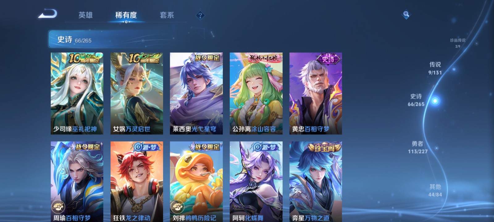 【王者荣耀】【lywz22859】珍品无双0 典藏1 无双0 珍品传说2 传说9 史诗66 英雄127 皮肤235 贵族7级 荣耀典藏:银白咏叹调__珍品传说:大耳狗之梦|酷洛米之心__传说皮肤:鸣野蒿|炽阳神光|地狱之眼|久胜战神|黄金射手座|云鹰飞将|幻光神呛|愿照·山河定|愿照·九州拓__稀有限定:至尊宝|神器·万象笔|暗影游猎|百里守约-真我赫兹|古海寻踪|海滩派对|海盐诗旅|皇家上将|剑破天穹|金庭之子|镜-真我赫兹|黎明之约|魔术师|奇幻香踪|擒涛扼浪|燃音魔法|沙漠行僧|探海日志|天穹祈灯|纤云弄巧|阴阳师|云间偶戏|暗隐猎兽者|缤纷独角兽|冰冠公主|冰雪圆舞曲|乘风破浪|德古拉伯爵|电玩·爆裂旋风|伽罗-琥珀纪元|功夫厨神|鬼剑武藏|节奏热浪|金属风暴|吕布-末日机甲|魅力维加斯|魅语|偶像歌手|青蛇|圣诞狂欢|圣诞恋歌|诗语江南|鲁班七号-蔬乡物语|水果甜心|水晶猎龙者|天才门将|天秀·启明|赵云-未来纪元|星夜王子|鹰眼统帅|幽灵船长|逐浪之夏|紫霞仙子|噬灭天穹|敬我三分|战舞者|埋骨钱|顽岩魄|蔡文姬-夏日便利店|虞姬-夏日便利店|天穹之誓|修罗|曙光守护者|心灵战警|千年之狐|舞动绿茵|特工魅影|茶境仙|星界战将|谧流熔炉|万物之道|化蝶舞|云中旅人|访茗客|灵卜魔法|刘禅-鸭鸭历险记|沈梦溪-鸭鸭历险记|龙之律动|布丁狗之约|虚灵犬护|逆浪荇歌|孙策-百相守梦|周瑜-百相守梦|黄忠-百相守梦|涂山容容|光弋星穹|往忆晖光|荣光之誓|万灵启世|巫礼祀神|鹤鸣心笺__优质皮肤:一千零一夜|埃及法老|孤猎|熊喵少女|午夜歌剧院|露花倒影|激情绿茵|海之征途|天启骑士|秩序猎龙将|森|超能战警|英喵野望|维京掠夺者|绯红之刃|启蛰|战争骑士|威尼斯狂欢|第七人偶|芝加哥教父|街头旋风|绝影神呛|幸存者|赤焰之缨|福禄兄弟|前尘|特种部队|精灵王|剑舞者|星航指挥官|龙域领主|花间舞|魇语军师|极冰防御线|花见巫女|东海龙王|灼热之刃|圣殿之光|战争女神|霓裳曲|加勒比小姐|绒语心约|长夏之忆|暗都幽影|功夫炙烤|潮玩探月行|虎啸剑宗|秘密基地|次元突破|鲨炮海盗猫|虹云星官|守护之力|坚韧之力|幻乐之宴|功夫老勺|命运角斗场|幻想奇妙夜|海滩丽影|阿尔法小队|兔女郎|死亡骑士|黄金武士|少女阿狸|天使之翼|玩偶对对碰|红桃皇后|忍·炎影|街头霸王|教廷特使|漠中幻影|决胜大满贯|破局者|零食大作战|太极少年|胡桃狂想曲|契约魔法|潮玩牛仔|重装意志|次元傲视|拳王|时尚教父|白色死神|白执事|哥特玫瑰|西施-雪境奇遇|金福满堂|星梦巡礼|景韶洛都|浪漫序章|掌控之力|雾都夜雨|铁骨偃魂|龙腾万里|乱世虎臣|敏锐之力|孙悟空-西部大镖客|牛魔-西部大镖客|热血海滩|龙舞盛年|汉昭烈帝|乓乓大师|万事如意|曜-归虚梦演|唤灵魔甲|程咬金-群星魔术团|完美运算|化身博士|花好人间|熔金海岸|春野之旅|潮玩骑兵|苍林狼骑|蔚蓝守将|劲辣红锅|特工战影|妄想特派|灵野札记|玫蓝誓约|命运加冕|小满鸭|死霸装|无双福将|锦麟游梦|踏浪烽翎|戏梦巡演|克喵|哪吒-罗小黑战记|张良-罗小黑战记|径山谋武|逐霄之志|极光幻客__贵族等级:贵族7级__王者段位:荣耀王者【荣耀皮肤】1 银白咏叹调【珍品传说】2 大耳狗之梦,酷洛米之心【传说皮肤】9 地狱之眼,黄金射手座,久胜战神,愿照·九州拓,幻光神呛,愿照·山河定,鸣野蒿,炽阳神光,云鹰飞将