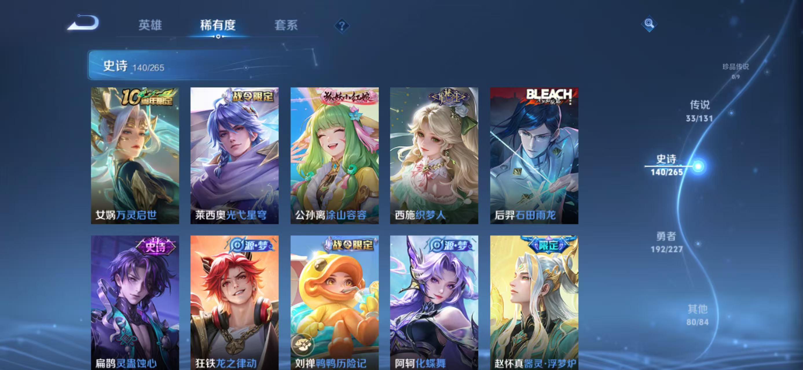 【王者荣耀】【lywz22741】珍品无双0 典藏3 无双1 珍品传说0 传说33 史诗140 英雄127 皮肤449 贵族9级 荣耀典藏:无限飓风号|鸣剑·曳影|拾光映像__无双皮肤:离恨烟__传说皮肤:鸣野蒿|无双飞将|炽阳神光|启明星使|胖达荣荣|云霓雀翎|久胜战神|黄金狮子座|黄金射手座|猫影幻舞|刘备-时之恋人|一念神魔|云鹰飞将|冠军飞将|飞鸢探春|李|游龙清影|乞巧织情|淬星耀世|浮生妄|凤求凰|金乌负日|零号·赤焰|落雪白狼|时雨天司|太华|貂蝉-曦玄引|小乔-音你心动|周瑜-音你心动|幻光神呛|愿照·九州拓|诡秘之主|千山共赴__稀有限定:寅虎·展翼|寅虎·心曲|御风骁将|白晶晶|至尊宝|青龙志|大圣娶亲|一生所爱|岱宗|玄嵩|幽恒|飞衡|蜜橘之夏|烈魂|龙胆|白鹤梁神女|孙行者|猪悟能|李小龙|梁祝|时之彼端|狮舞东方|拒霜思|暗影游猎|白昼王子|百里守约-真我赫兹|冰锋战神|冰霜恋舞曲|大漠名商|电玩高手|繁星吟游|凤凰于飞|高山流水|古海寻踪|海滩派对|海盐诗旅|航海奇遇记|胡桃异想国|华丽摇滚|幻夜卜梦|皇家上将|混沌棋|火炮绅士|剑破天穹|江河有灵|金庭之子|狂想玩偶喵|黎明之约|迷踪丽影|魔术师|花木兰-默契交锋|女武神|奇幻香踪|千军破阵|擒涛扼浪|穷奇|驱傩正仪|荣光圣徽|沙漠行僧|朔风刀|死亡摇滚|探海日志|饕餮|醍醐杖|天狼绘梦者|天狼狩猎者|天狼溯光者|天穹祈灯|玩趣恶龙|万华元夜|妄想食味|五谷丰年|午后时光|纤云弄巧|星界游侠|星空之诺|演武夺筹|疑决卦|阴阳师|吟游魔法|银河之约|游园惊梦|遇见飞天|御旌|御銮|御狮|原初追逐者|云间偶戏|真爱魔法|逐梦之光|逐梦之星|暗夜贵公子|暗夜猫娘|暗隐猎兽者|暗渊魔法|缤纷独角兽|冰冠公主|冰雪圆舞曲|苍穹之光|乘风破浪|乘龙·忆丹青|大乔-猫狗日记|德古拉伯爵|地狱岩魂|电玩小子|功夫厨神|鬼剑武藏|黄金分割率|箭羽风息|节奏热浪|金属风暴|李元芳-蔬乡物语|龙鼓争鸣|龙骑士|吕布-末日机甲|魅力维加斯|魅语|梦奇-顽趣|女仆咖啡|偶像歌手|青蛇|绅士熊喵|圣诞狂欢|圣诞恋歌|诗语江南|鲁班七号-蔬乡物语|水果甜心|水晶猎龙者|孙策-猫狗日记|滕王阁序|天才门将|天秀·启明|晚萤|赵云-未来纪元|星夜王子|摇滚巨星|鹰眼统帅|幽灵船长|月团寄思|钟无艳-超时空战士|逐浪之夏|紫霞仙子|噬灭天穹|敬我三分|战舞者|东方月初|涂山红红|埋骨钱|顽岩魄|虞姬-夏日便利店|天穹之誓|怒海争锋|海诺-心动手记|安琪拉-时之奇旅|修罗|曙光守护者|心灵战警|千年之狐|刘备-百相守梦|孙尚香-时之恋人|无限星赏官|舞动绿茵|特工魅影|心灵骇客|星界战将|谧流熔炉|器灵·浮梦炉|化蝶舞|御霄|狰|烛龙|原初探秘者|重明|云中旅人|单词大作战|朔望之晖|钟馗-神迹守卫|达摩-星际陆战队|流音漫舞|暖冬·兔眠|夺宝奇兵|圣弓游侠|墨子-神迹守卫|落雪兰心|死神来了|刘禅-鸭鸭历险记|沈梦溪-鸭鸭历险记|灵蛊蚀心|龙之律动|布丁狗之约|虚灵犬护|石田雨龙|逆浪荇歌|织梦人|涂山容容|光弋星穹|往忆晖光|荣光之誓|万灵启世__优质皮肤:尼罗河女神|一千零一夜|创世神祝|年年有余|埃及法老|孤猎|木偶奇遇记|熊喵少女|午夜歌剧院|露花倒影|未来旅行|激情绿茵|海之征途|天启骑士|碧珀绯影|秩序猎龙将|锦衣卫|冰刃幻境|森|超能战警|英喵野望|维京掠夺者|海军大将|绯红之刃|踏雪寻梅|启蛰|战争骑士|伊势巫女|画中游|生化警戒|威尼斯狂欢|第七人偶|潮流仙人|芝加哥教父|街头旋风|绝影神呛|地府判官|荷鲁斯之眼|幸存者|赤焰之缨|福禄兄弟|隐刃|前尘|特种部队|三太子|精灵王|剑舞者|范海辛|星航指挥官|龙域领主|爱与和平|占星师|花间舞|魇语军师|极冰防御线|花见巫女|棒球奇才|东海龙王|蔷薇王座|灼热之刃|精准探案法|圣殿之光|帝国元帅|战争女神|霓裳曲|加勒比小姐|阿摩司公爵|异域舞娘|精灵公主|修竹墨客|万圣前夜|绒语心约|长夏之忆|异域游侠|暗都幽影|功夫炙烤|潮玩探月行|虎啸剑宗|瓷语鉴心|秘密基地|次元突破|鲨炮海盗猫|野性能量|丁香结|奇妙博物学|虹云星官|科学大爆炸|守护之力|坚韧之力|幻乐之宴|功夫老勺|命运角斗场|幻想奇妙夜|海滩丽影|阿尔法小队|兔女郎|死亡骑士|黄金武士|少女阿狸|天使之翼|玩偶对对碰|宫本武藏-未来纪元|红桃皇后|忍·炎影|爱心护理|街头霸王|教廷特使|金色潮汐|时空谍影|决胜大满贯|破局者|零食大作战|西部游侠|太极少年|乐园追猎者|牛运亨通|幻泉雾影|潮玩造梦师|危途狂花|胡桃狂想曲|契约魔法|潮玩牛仔|紫罗兰之誓|铁甲之心|重装意志|次元傲视|无尽征程|黑桃队长|幽兰居士|制霸全明星|进击墨子号|拳王|时尚教父|救世之瞳|白色死神|爱与正义|程咬金-星际陆战队|白执事|大发明家|致命风华|哥特玫瑰|魅影绮裳|西施-雪境奇遇|金福满堂|星梦巡礼|灵卦秘语|爆裂喵拳|景韶洛都|浪漫序章|猪八戒-西部大镖客|缤纷绘卷|掌控之力|雾都夜雨|逐霄战戟|铁骨偃魂|纽约教父|龙腾万里|霸王丸|乱世虎臣|经纬探寻者|敏锐之力|西施-归虚梦演|孙悟空-西部大镖客|牛魔-西部大镖客|鲁班大师-归虚梦演|热血海滩|龙舞盛年|汉昭烈帝|乓乓大师|五福同心|盾山-圆桌骑士|猎兽之王|蒙犽-归虚梦演|万事如意|曜-归虚梦演|唤灵魔甲|太乙真人-圆桌骑士|沉稳之力|程咬金-群星魔术团|完美运算|化身博士|花好人间|熔金海岸|春野之旅|潮玩骑士王|无尽旅途|万象初新|潮玩骑兵|苍林狼骑|蔚蓝守将|劲辣红锅|特工战影|