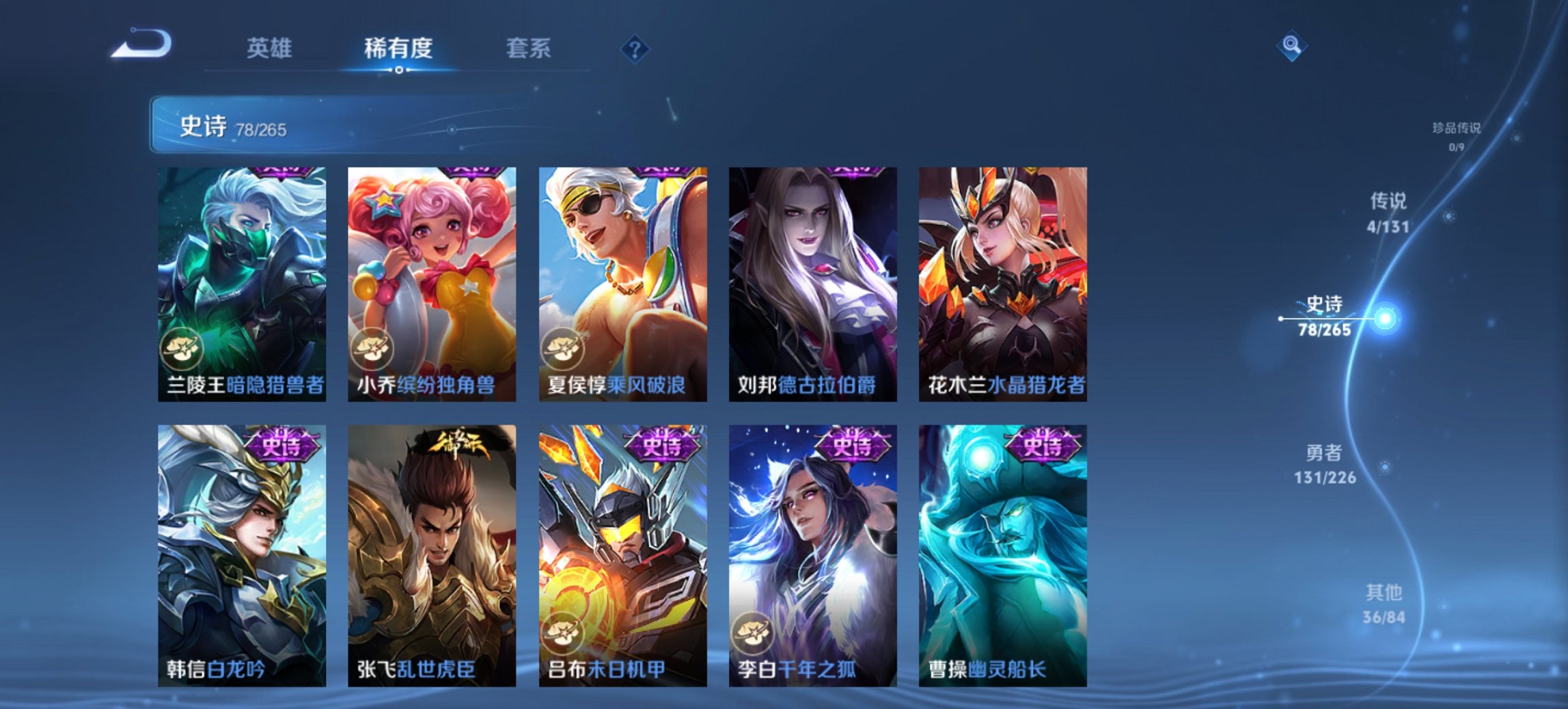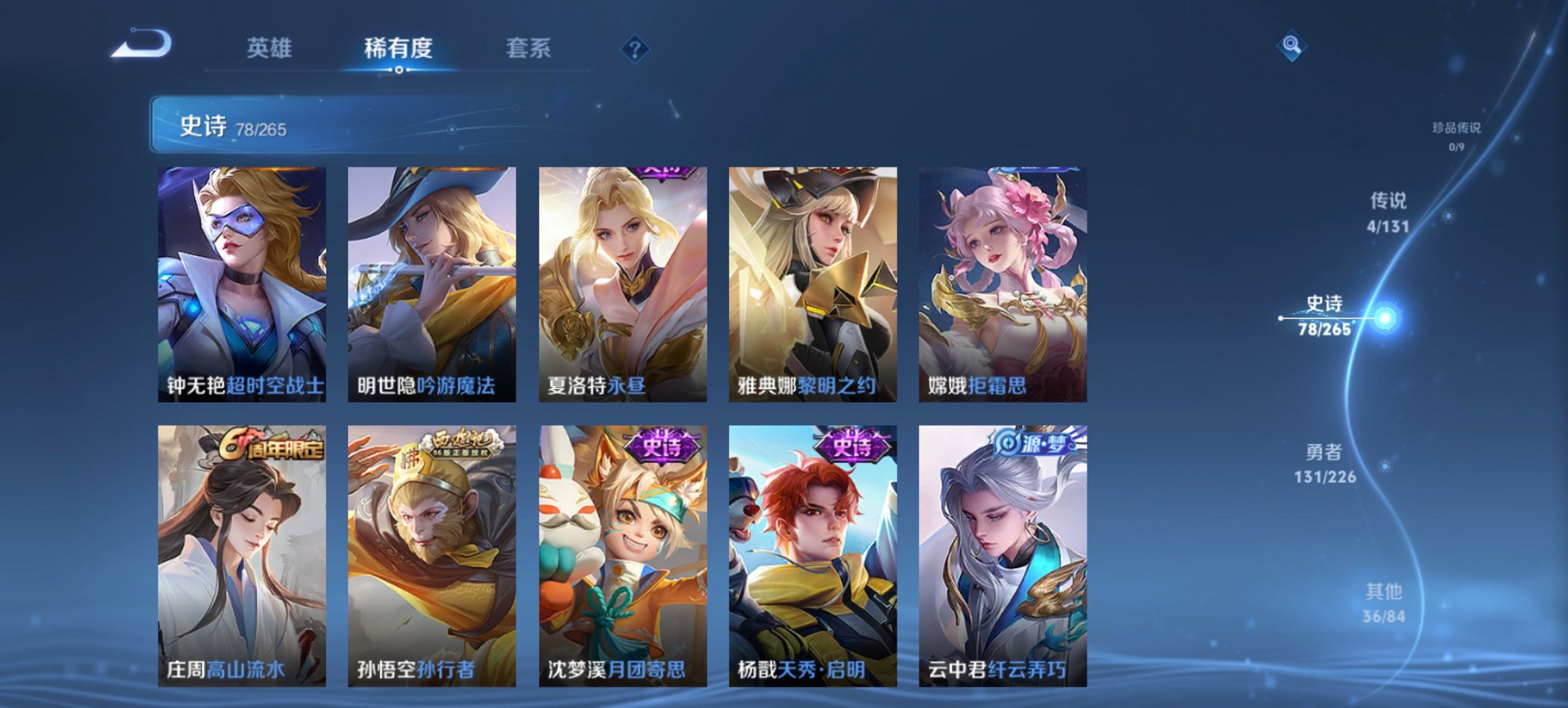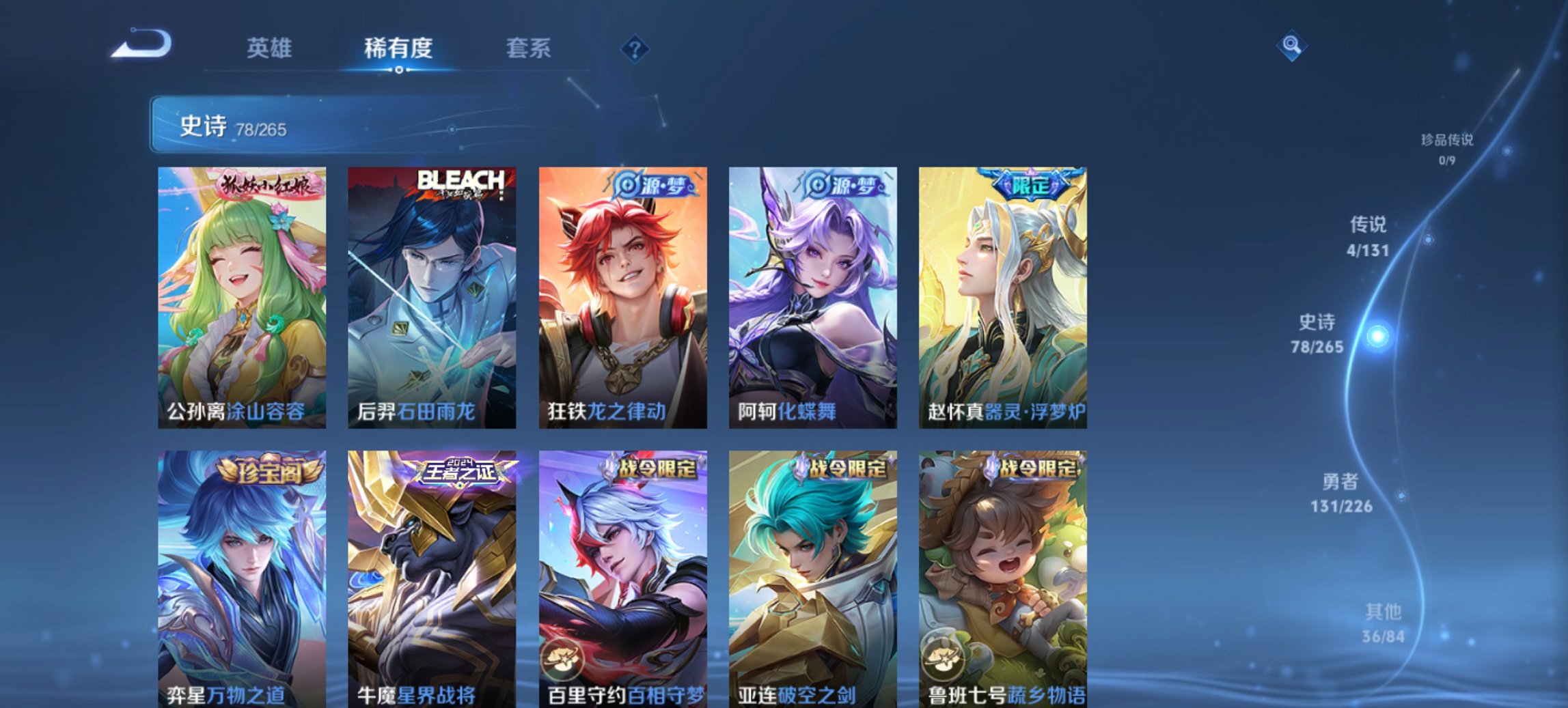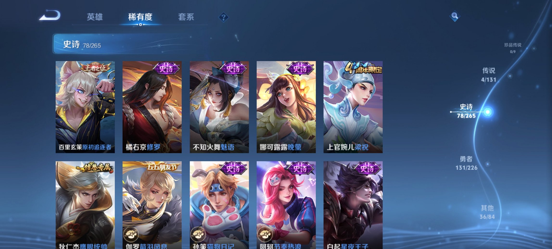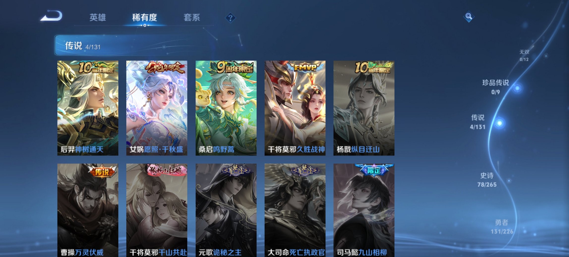 126英雄-250皮肤-【千秋盛250皮肤1水晶4传说 秒换绑不用等】安卓qq-126英雄-250皮肤【1水晶】 弑呛猎影【传说皮肤】神树通天 愿照·千秋盛 鸣野蒿 久胜战神【史诗皮肤】龙之律动 星界战将 江河有灵 地狱燃心 天穹祈灯 天穹之誓 逐霄战戟 石田雨龙 逆浪荇歌 破空之剑 万物之道 器灵·浮梦炉 百相守梦 奇幻香踪 星界游侠 涂山容容 顽趣 电玩·爆裂旋风 蔬乡物语 完美运算 百解令 魅语