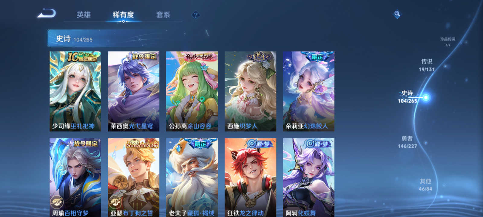 【王者荣耀】【lywz23103】珍品无双1 典藏4 无双1 珍品传说3 传说19 史诗104 英雄127 皮肤324 贵族9级 珍品无双:馥梦繁花__荣耀典藏:天鹅之梦|神鉴启示录|幻阙歌|拾光映像__无双皮肤:时之魔女__珍品传说:兔狲·蓬尾|大耳狗之梦|酷洛米之心__传说皮肤:鸣野蒿|花朝如约|启明星使|仲夏夜之梦|黄金白羊座|刘备-时之恋人|游龙清影|乞巧织情|瑶-时之祈愿|记忆之芯|祈雪灵祝|碎云|遇见胡旋|山海·琳琅生|朵莉亚-心动手记|牧神诗旅|幻光神呛|云诺千山|神树通天__稀有限定:蔷薇恋人|梁祝|山海·碧波行|拒霜思|百解令|妲己-时之奇旅|大漠名商|地狱燃心|高山流水|古海寻踪|海滩派对|海盐诗旅|皇家上将|剑破天穹|江河有灵|金庭之子|黎明之约|魔术师|匿光破解者|匿光侦查者|奇幻香踪|擒涛扼浪|青焰无极|荣光圣徽|探海日志|天狼运算者|天穹祈灯|阿古朵-顽趣|无心|五谷丰年|午后时光|纤云弄巧|阴阳师|吟游魔法|驭风魔法|暗夜猫娘|暗隐猎兽者|白蛇|缤纷独角兽|冰冠公主|冰雪圆舞曲|苍穹之光|乘风破浪|大乔-猫狗日记|德古拉伯爵|地狱岩魂|电玩·爆裂旋风|电玩小子|伽罗-琥珀纪元|功夫厨神|鬼剑武藏|黄金分割率|箭羽风息|节奏热浪|金属风暴|乐园奇幻夜|吕布-末日机甲|魅力维加斯|魅语|梦奇-顽趣|女仆咖啡|偶像歌手|奇遇舞章|青蛇|上官婉儿-群星魔术团|圣诞狂欢|圣诞恋歌|诗语江南|水果甜心|水晶猎龙者|孙策-猫狗日记|天才门将|天秀·启明|晚萤|赵云-未来纪元|星夜王子|摇滚巨星|银翎春语|鹰眼统帅|幽灵船长|遇见神鹿|月团寄思|逐浪之夏|紫霞仙子|百里守约-百相守梦|老夫子-百相守梦|陌上桑|星界特工|噬灭天穹|敬我三分|破空之剑|涂山红红|顽岩魄|蔡文姬-夏日便利店|虞姬-夏日便利店|天穹之誓|怒海争锋|海诺-心动手记|曙光守护者|心灵战警|千年之狐|孙尚香-时之恋人|无限星赏官|舞动绿茵|特工魅影|心灵骇客|茶境仙|星界战将|谧流熔炉|万物之道|化蝶舞|云中旅人|玲珑珍味|孙悟空-神迹守卫|流音漫舞|访茗客|暖冬·兔眠|苍威无极|落雪兰心|仙境爱丽丝|藏狐·褐绒|龙之律动|布丁狗之约|虚灵犬护|布丁狗之誓|逆浪荇歌|孙策-百相守梦|周瑜-百相守梦|幻珠鲛人|织梦人|涂山容容|光弋星穹|往忆晖光|荣光之誓|巫礼祀神|鹤鸣心笺__优质皮肤:尼罗河女神|创世神祝|孤猎|熊喵少女|未来旅行|激情绿茵|海之征途|碧珀绯影|森|英喵野望|海军大将|踏雪寻梅|启蛰|伊势巫女|画中游|潮流仙人|芝加哥教父|街头旋风|地府判官|幸存者|赤焰之缨|福禄兄弟|隐刃|前尘|三太子|范海辛|星航指挥官|龙域领主|占星师|花间舞|极冰防御线|花见巫女|东海龙王|蔷薇王座|灼热之刃|精准探案法|帝国元帅|战争女神|加勒比小姐|异域舞娘|修竹墨客|万圣前夜|怪诞之夜|动物派对|绒语心约|破阵·退雄兵|异域游侠|暗都幽影|功夫炙烤|聚星闪耀|潮玩探月行|虎啸剑宗|秘密基地|次元突破|鲨炮海盗猫|丁香结|虹云星官|坚韧之力|幻乐之宴|功夫老勺|命运角斗场|幻想奇妙夜|海滩丽影|阿尔法小队|兔女郎|死亡骑士|黄金武士|少女阿狸|天使之翼|玩偶对对碰|宫本武藏-未来纪元|红桃皇后|忍·炎影|爱心护理|教廷特使|金色潮汐|时空谍影|决胜大满贯|王牌新星|零食大作战|西部游侠|太极少年|牛运亨通|潮玩造梦师|危途狂花|胡桃狂想曲|潮玩牛仔|重装意志|次元傲视|无尽征程|黑桃队长|幽兰居士|进击墨子号|拳王|时尚教父|鲤鱼之梦|救世之瞳|白色死神|爱与正义|程咬金-星际陆战队|白执事|大发明家|哥特玫瑰|魅影绮裳|西施-雪境奇遇|金福满堂|星梦巡礼|灵卦秘语|爆裂喵拳|景韶洛都|浪漫序章|缤纷绘卷|雾都夜雨|逐霄战戟|铁骨偃魂|龙腾万里|乱世虎臣|经纬探寻者|敏锐之力|西施-归虚梦演|牛魔-西部大镖客|热血海滩|龙舞盛年|汉昭烈帝|乓乓大师|五福同心|太乙真人-圆桌骑士|沉稳之力|程咬金-群星魔术团|化身博士|花好人间|熔金海岸|春野之旅|万象初新|潮玩骑兵|苍林狼骑|蔚蓝守将|劲辣红锅|特工战影|炽热元素使|妄想特派|秘证寻踪|灵野札记|玫蓝誓约|命运加冕|潮玩士官长|小满鸭|死霸装|无双福将|锦麟游梦|踏浪烽翎|戏梦巡演|落日弦歌|克喵|张良-罗小黑战记|径山谋武|逐霄之志|极光幻客__贵族等级:贵族9级__王者段位:最强王者精美女号 2天幕 22按键 4典藏小乔无双3珍品传说 貂蝉珍品无双 云诺千山,游龙清影,祈雪灵祝,启明星使,时之祈愿等限定皮肤