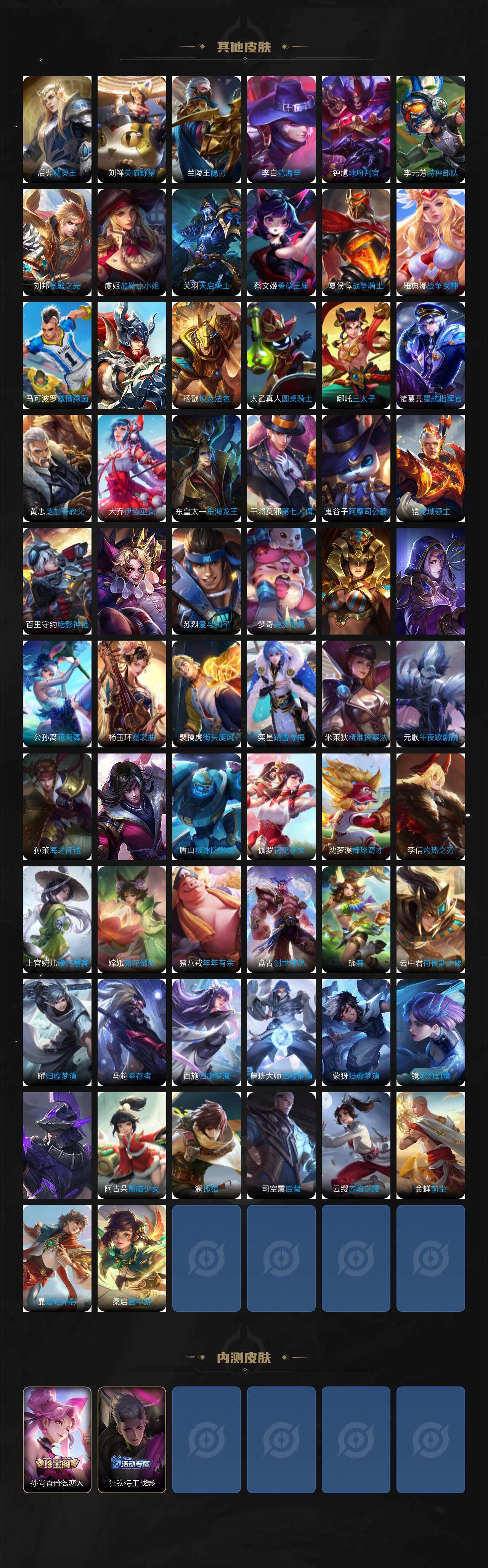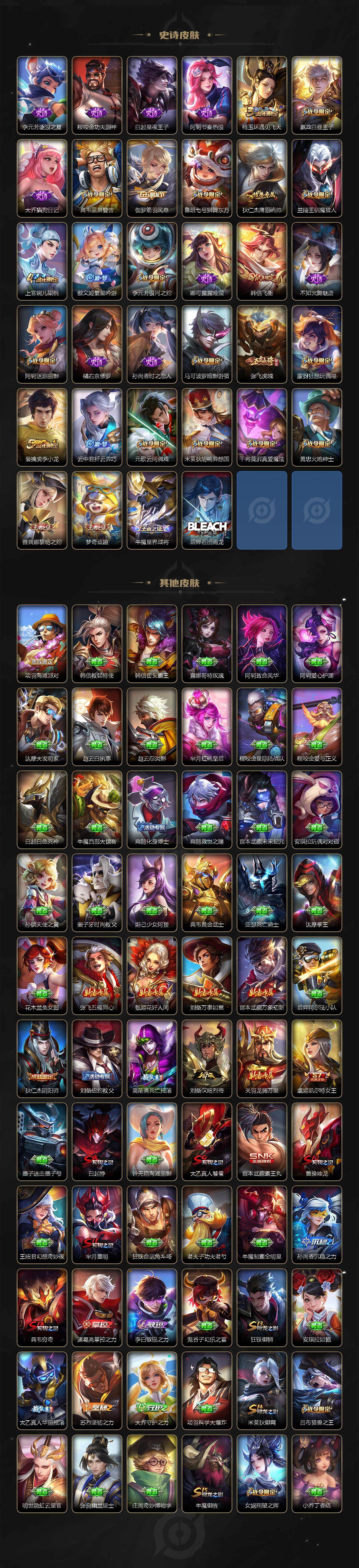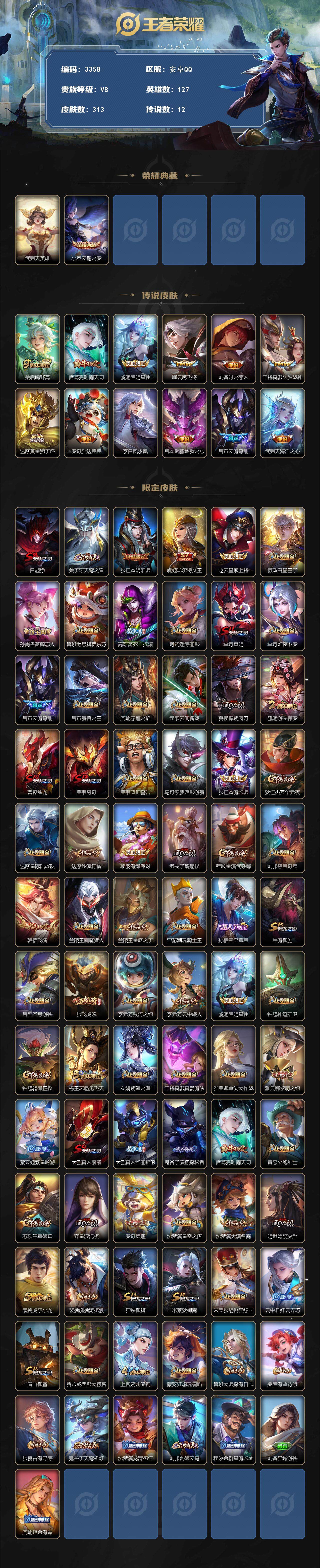 [14483683]安卓q-v8-至尊星耀iii段位-127英雄-313皮肤-1典藏皮肤-1典藏英雄-12传说-70史诗 【英雄全皮】:刘邦全皮,空空儿全皮 【荣耀典藏】:武则天英雄,小乔天鹅之梦 【传说皮肤】:桑启鸣野蒿,诸葛亮时雨天司,虞姬启明星使,曜云鹰飞将,刘备时之恋人,干将莫邪久胜战神,达摩黄金狮子座,梦奇胖达荣荣,李白凤求凰,宫本武藏地狱之眼,吕布天魔缭乱,武则天海洋之心 【限定皮肤】:白起狰,姜子牙天穹之誓,狄仁杰阴阳师,虞姬凯尔特女王,赵云皇家上将,嬴政白昼王子,孙尚香蔷薇恋人,鲁班七号狮舞东方,高渐离死亡摇滚,阿轲迷踪丽影,芈月重明,芈月幻夜卜梦,吕布天魔缭乱,吕布猎兽之王,周瑜赤莲之焰,元歌云间偶戏,夏侯惇朔风刀,甄姬游园惊梦,曹操烛龙,典韦穷奇,典韦蓝屏警告,马可波罗暗影游猎,狄仁杰魔术师,狄仁杰万华元夜,达摩星际陆战队,达摩沙漠行僧,项羽海滩派对,老夫子醍醐杖,程咬金演武夺筹,刘邦夺宝奇兵,韩信飞衡,兰陵王驯魔猎人,兰陵王金庭之子,亚瑟潮玩骑士王,孙悟空至尊宝,牛魔御旌,后羿圣弓游侠,张飞虎魄,李元芳银河之约,李元芳云中旅人,虞姬启明星使,钟馗神迹守卫,钟馗驱傩正仪,杨玉环遇见飞天,女娲朔望之晖,干将莫邪真爱魔法,雅典娜单词大作战,雅典娜黎明之约,蔡文姬繁星吟游,太乙真人饕餮,太乙真人华丽摇滚,鬼谷子原初探秘者,诸葛亮时雨天司,黄忠火炮绅士,苏烈千军破阵,弈星混沌棋,梦奇顽趣,沈梦溪星空之诺,沈梦溪大漠名商,明世隐疑决卦,裴擒虎李小龙,裴擒虎擒涛扼浪,狂铁御狮,米莱狄御霄,米莱狄胡桃异想国,云中君纤云弄巧,盾山御銮,猪八戒西部大镖客,上官婉儿梁祝,蒙犽狂想玩偶喵,鲁班大师探海日志,桑启海盐诗旅,张良古海寻踪,鬼谷子天穹祈灯,沈梦溪龙舞盛年,刘邦剑破天穹,程咬金群星魔术团,刘备异域游侠,周瑜熔金海岸 【年限皮肤】:李白凤求凰,诸葛亮时雨天司,韩信飞衡,张飞虎魄 【赛季限定】:白起狰,芈月重明,夏侯惇朔风刀,曹操烛龙,典韦穷奇,狄仁杰万华元夜,达摩沙漠行僧,老夫子醍醐杖,程咬金演武夺筹,兰陵王金庭之子,张良古海寻踪,牛魔御旌,李元芳云中旅人,虞姬凯尔特女王,钟馗驱傩正仪,雅典娜黎明之约,太乙真人饕餮,鬼谷子原初探秘者,苏烈千军破阵,弈星混沌棋,梦奇顽趣,沈梦溪大漠名商,明世隐疑决卦,裴擒虎擒涛扼浪,狂铁御狮,米莱狄御霄,盾山御銮,鲁班大师探海日志,桑启海盐诗旅,鬼