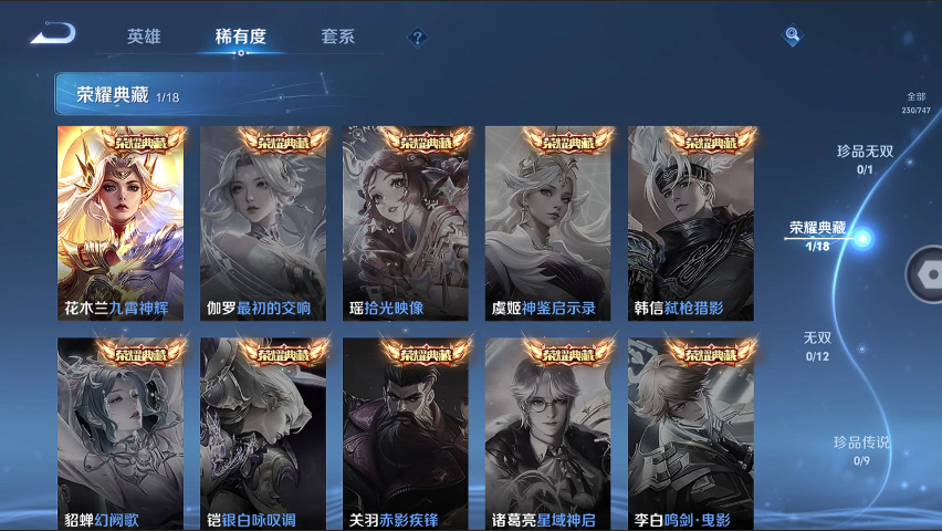 【王者荣耀】【lywz23105】珍品无双0 典藏1 无双0 珍品传说0 传说20 史诗72 英雄126 皮肤230 贵族8级 荣耀典藏:九霄神辉__传说皮肤:鸣野蒿|无双飞将|炽阳神光|启明星使|地狱之眼|孙策-末日机甲|云霓雀翎|久胜战神|刘备-时之恋人|一念神魔|云鹰飞将|炽翼辉光|绯月行|浮生妄|记忆之芯|诗剑行|小乔-音你心动|夜礼服假面|山海·炽霜斩|幻光神呛__稀有限定:李小龙|山海·玄木吟|神器·万象笔|百解令|冰霜神祇|大漠名商|电玩高手|古海寻踪|海滩派对|海盐诗旅|胡桃夹子|皇家上将|江河有灵|魔术师|奇幻香踪|擒涛扼浪|驱傩正仪|荣光圣徽|探海日志|天狼狩猎者|无心|五谷丰年|午后时光|星界游侠|演武夺筹|阴阳师|原初追逐者|云端筑梦师|暗夜贵公子|暗渊魔法|白龙吟|缤纷独角兽|冰冠公主|冰雪圆舞曲|乘风破浪|大乔-猫狗日记|德古拉伯爵|地狱岩魂|电玩·爆裂旋风|功夫厨神|鬼剑武藏|唤灵魅影|黄金分割率|箭羽风息|金属风暴|吕布-末日机甲|魅力维加斯|魅语|女仆咖啡|热力回旋|赏金猎手|圣诞狂欢|圣诞恋歌|水果甜心|水晶猎龙者|孙策-猫狗日记|滕王阁序|天秀·启明|晚萤|赵云-未来纪元|星夜王子|摇滚巨星|鹰眼统帅|永昼|幽灵船长|月团寄思|钟无艳-超时空战士|逐浪之夏|紫霞仙子|噬灭天穹|安琪拉-时之奇旅|修罗|曙光守护者|关羽-百相守梦|刘备-百相守梦|孙尚香-时之恋人|舞动绿茵|特工魅影|心灵骇客|谧流熔炉|化蝶舞|云中旅人|暖冬·兔眠|落雪兰心|藏狐·褐绒|龙之律动|虚灵犬护|逆浪荇歌|涂山容容|荣光之誓|万灵启世|鹤鸣心笺__优质皮肤:一千零一夜|埃及法老|孤猎|木偶奇遇记|午夜歌剧院|露花倒影|激情绿茵|海之征途|天启骑士|碧珀绯影|秩序猎龙将|森|超能战警|英喵野望|维京掠夺者|踏雪寻梅|启蛰|画中游|街头旋风|绝影神呛|荷鲁斯之眼|幸存者|赤焰之缨|隐刃|特种部队|精灵王|剑舞者|星航指挥官|龙域领主|爱与和平|占星师|魇语军师|东海龙王|灼热之刃|精准探案法|圣殿之光|帝国元帅|霓裳曲|加勒比小姐|异域舞娘|精灵公主|修竹墨客|万圣前夜|异域游侠|幻夜行动|聚星闪耀|潮玩探月行|秘密基地|次元突破|野性能量|丁香结|虹云星官|守护之力|坚韧之力|功夫老勺|命运角斗场|海滩丽影|阿尔法小队|兔女郎|死亡骑士|黄金武士|少女阿狸|宫本武藏-未来纪元|东方不败|红桃皇后|忍·炎影|街头霸王|教廷特使|破局者|王牌新星|零食大作战|西部游侠|太极少年|乐园追猎者|牛运亨通|幻泉雾影|潮玩造梦师|危途狂花|拳王|救世之瞳|白色死神|程咬金-星际陆战队|大发明家|哥特玫瑰|西施-雪境奇遇|景韶洛都|浪漫序章|缤纷绘卷|雾都夜雨|铁骨偃魂|纽约教父|龙腾万里|西施-归虚梦演|孙悟空-西部大镖客|热血海滩|乓乓大师|盾山-圆桌骑士|万事如意|曜-归虚梦演|沉稳之力|化身博士|花好人间|万象初新|潮玩骑兵|苍林狼骑|蔚蓝守将|劲辣红锅|特工战影|炽热元素使|妄想特派|灵野札记|玫蓝誓约|死霸装|踏浪烽翎|落日弦歌|克喵__贵族等级:贵族8级__王者段位:绝世王者高质量捡漏皮肤号多限定