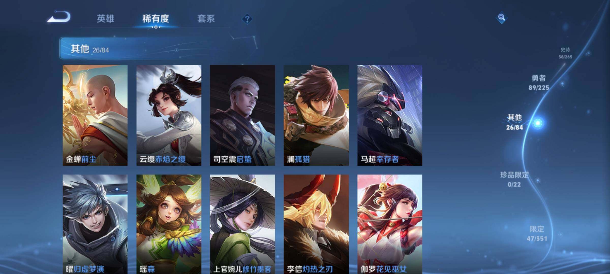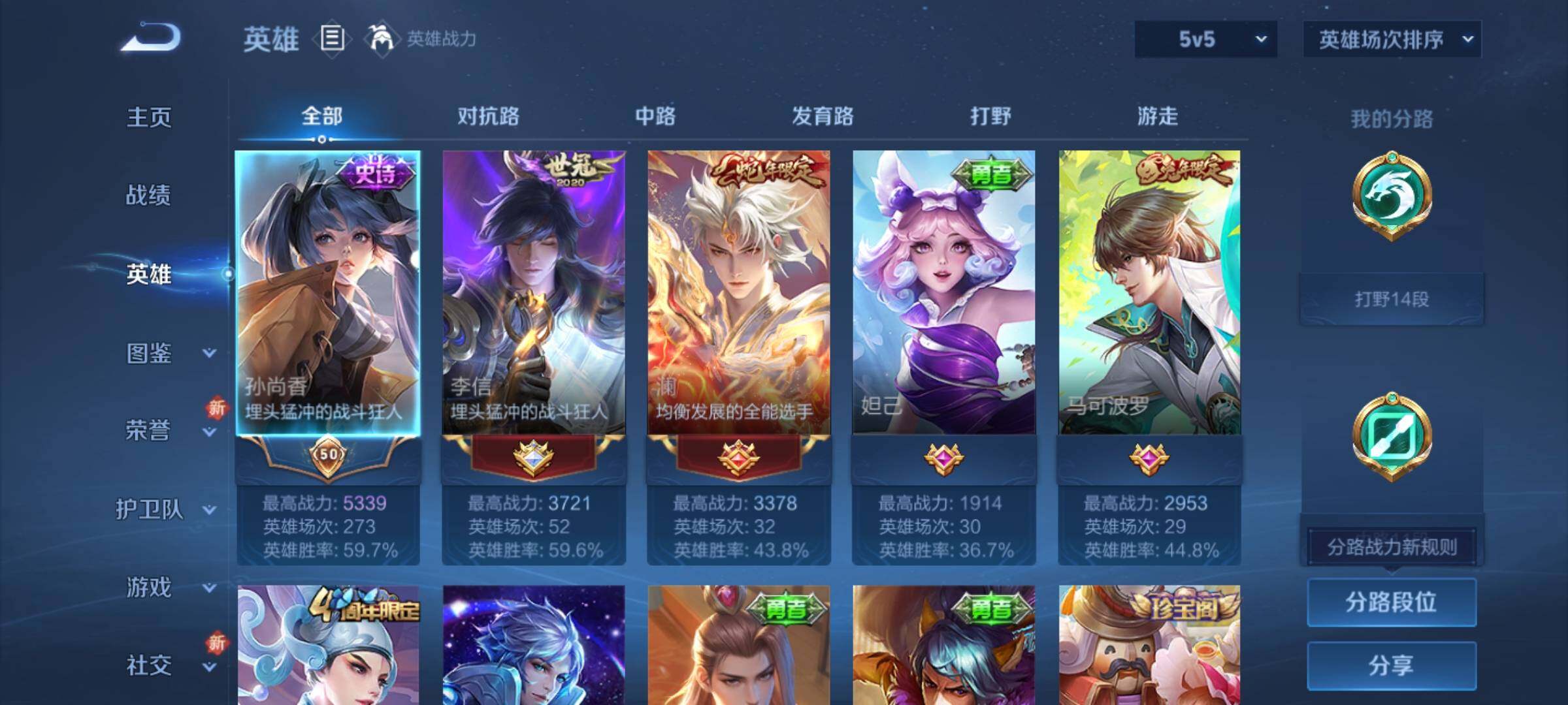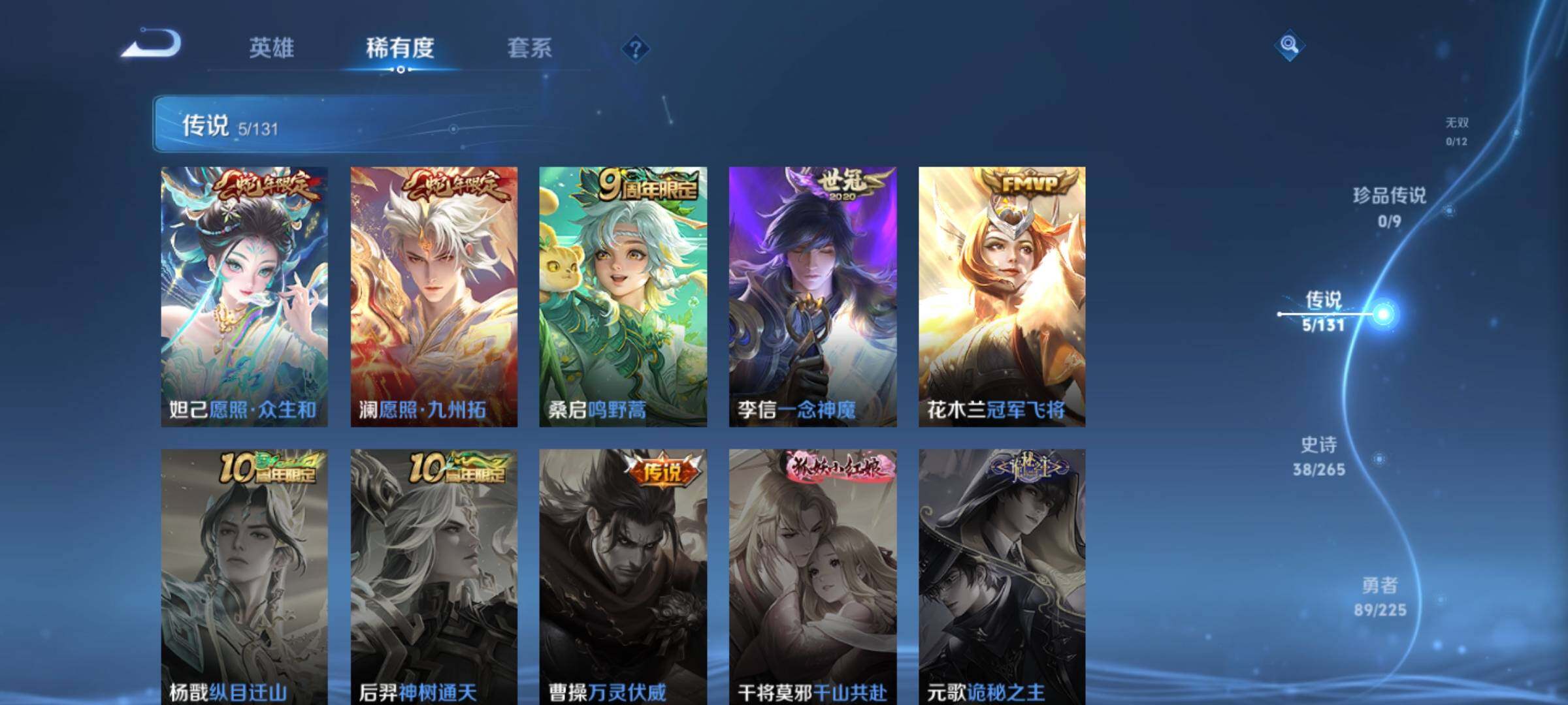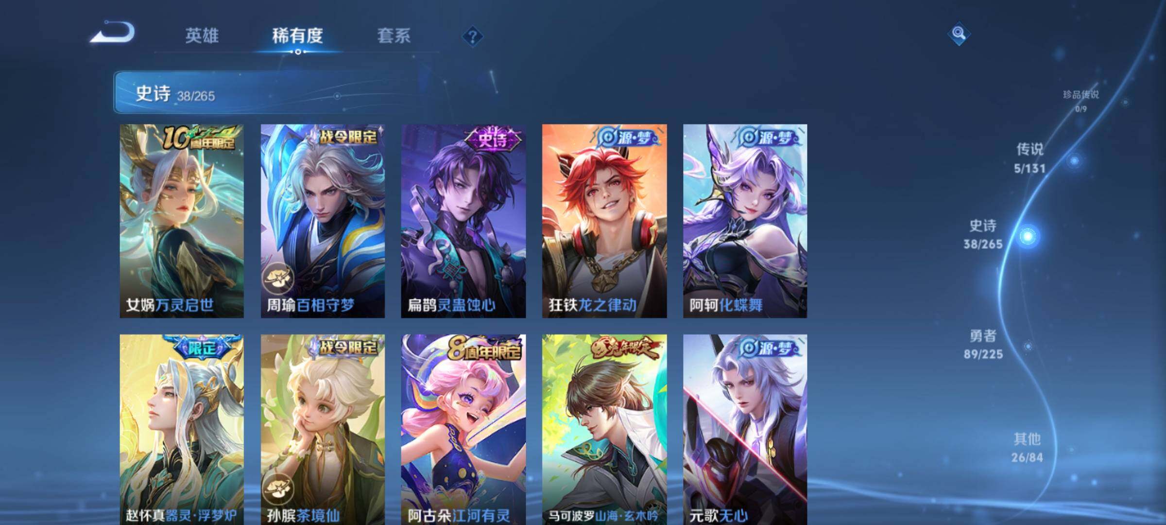 _2294966-q-v6-最强王者段位-124英雄-158皮肤5传说-38史诗 【传说皮肤】:妲己愿照众生和,澜愿照九州拓,桑启鸣野蒿,李信一念神魔,花木兰冠军飞将 【限定皮肤】:姜子牙天穹之誓,狄仁杰阴阳师,赵云皇家上将,元歌云间偶戏,元歌无心,马可波罗山海玄木吟,狄仁杰魔术师,达摩沙漠行僧,项羽海滩派对,兰陵王金庭之子,李元芳云中旅人,干将莫邪胡桃夹子,鬼谷子五谷丰年,沈梦溪大漠名商,裴擒虎擒涛扼浪,上官婉儿梁祝,鲁班大师探海日志,桑启海盐诗旅,阿古朵江河有灵,张良古海寻踪,鬼谷子天穹祈灯,沈梦溪龙舞盛年,刘邦剑破天穹,程咬金群星魔术团,项羽苍威无极,周瑜熔金海岸 【年限皮肤】:马可波罗山海玄木吟 【赛季限定】:达摩沙漠行僧,兰陵王金庭之子,张良古海寻踪,李元芳云中旅人,沈梦溪大漠名商,裴擒虎擒涛扼浪,鲁班大师探海日志,桑启海盐诗旅,鬼谷子天穹祈灯,刘邦剑破天穹,姜子牙天穹之誓 【战令限定】:元歌云间偶戏,项羽苍威无极 【史诗皮肤】:赵云皇家上将,赵云未来纪元,貂蝉圣诞恋歌,甄姬冰雪圆舞曲,王昭君偶像歌手,狄仁杰魔术师,宫本武藏鬼剑武藏,孙尚香水果甜心,妲己魅力维加斯,妲己女仆咖啡,墨子金属风暴,刘禅绅士熊喵,吕布末日机甲,小乔缤纷独角兽,兰陵王暗隐猎兽者,亚瑟心灵战警,安琪拉心灵骇客,百里守约特工魅影,李元芳逐浪之夏,白起星夜王子,阿轲节奏热浪,孙策猫狗日记,狄仁杰鹰眼统帅,上官婉儿梁祝,橘右京修罗,孙尚香时之恋人,元歌云间偶戏,鬼谷子五谷丰年,元歌无心,马可波罗山海玄木吟,阿古朵江河有灵,孙膑茶境仙,赵怀真器灵浮梦炉,阿轲化蝶舞,狂铁龙之律动,扁鹊灵蛊蚀心,周瑜百相守梦,女娲万灵启世 【其他皮肤】:项羽海滩派对,韩信教廷特使,韩信街头霸王,露娜哥特玫瑰,赵云白执事,赵云忍炎影,程咬金星际陆战队,武则天东方不败,扁鹊化身博士,宫本武藏未来纪元,安琪拉玩偶对对碰,妲己少女阿狸,典韦黄金武士,亚瑟死亡骑士,花木兰兔女郎,张飞五福同心,甄姬花好人间,刘备万事如意,狄仁杰阴阳师,刘备纽约教父,刘备汉昭烈帝,关羽龙腾万里,钟无艳海滩丽影,老夫子功夫老勺,孙尚香沉稳之力,诸葛亮掌控之力,大乔守护之力,明世隐虹云星官,吕布野性能量,孙膑归虚梦演,哪吒次元突破,狂铁特工战影,刘禅秘密基地,杨戬次元傲视,鲁班大师乓乓大师,妲己紫罗兰之誓,干将莫邪胡桃夹子,达摩沙漠行僧,兰陵王金庭之子